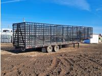 96 inch wide deck, 120 inch upper deck, wood deck, stake pockets, 84 inch removeable cage walls, rear opening lockable barn doors, electric brakes, dual wheels, spring suspension, 235/85R16 tires