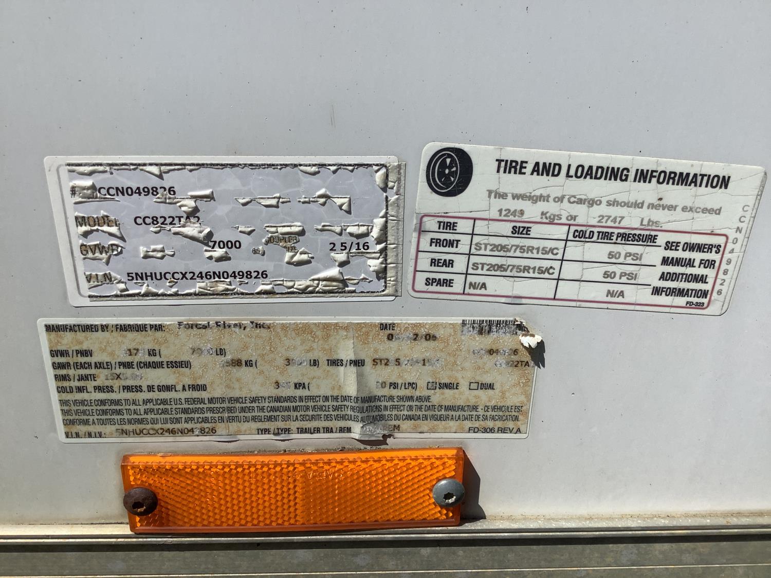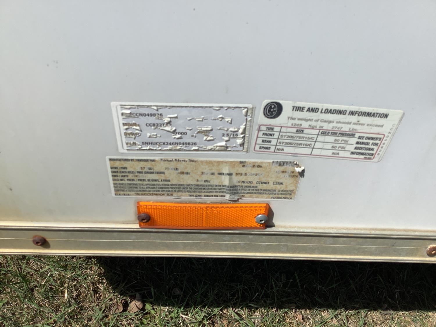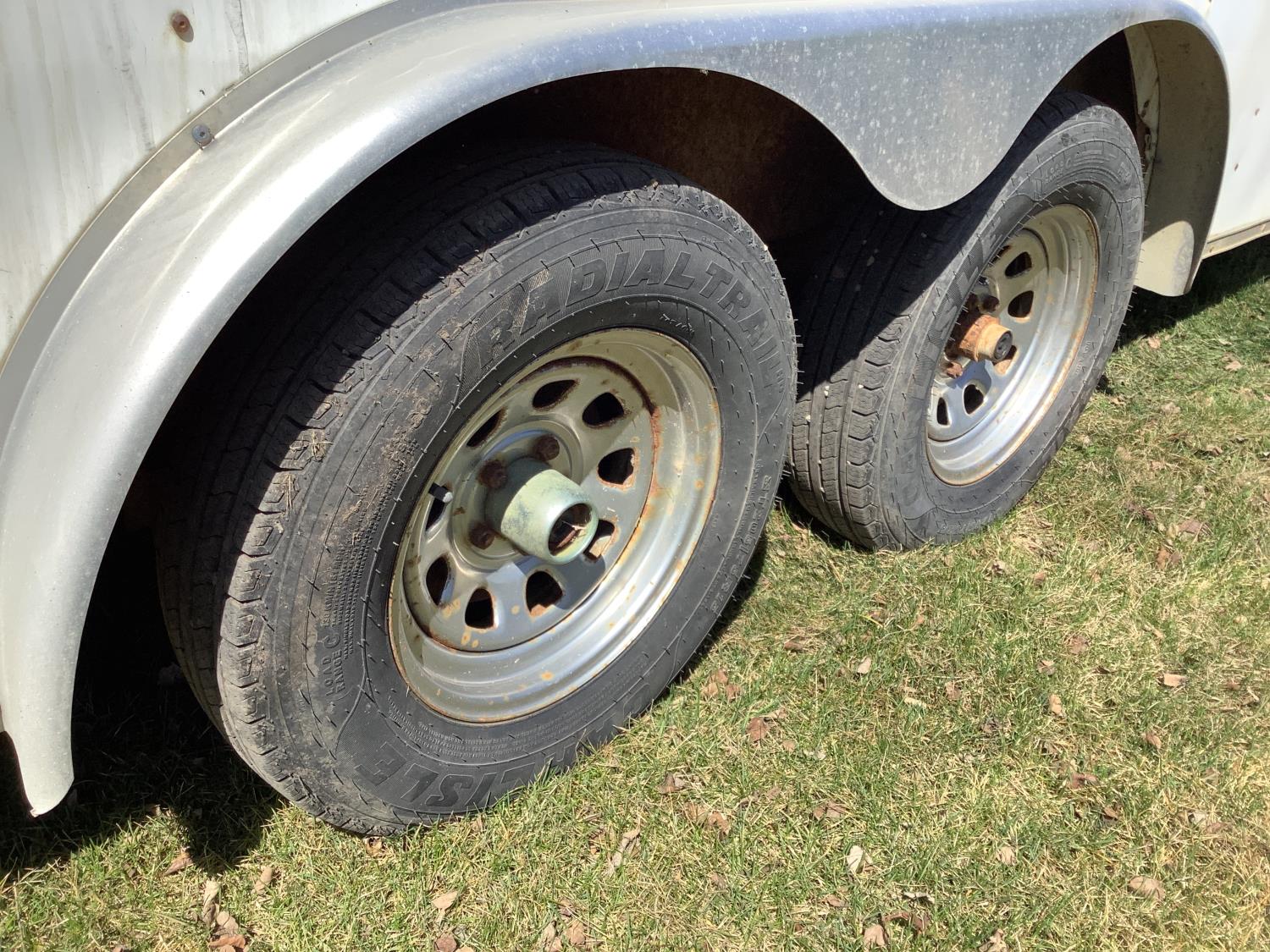 89 inch interior width, 78 inch interior height, fold down door, electric brakes, torsion suspension, side windows, AC, propane heater, 50 amp electrical panel, light package with a few shelves, 3500 lb axles, 205/75R15 tires