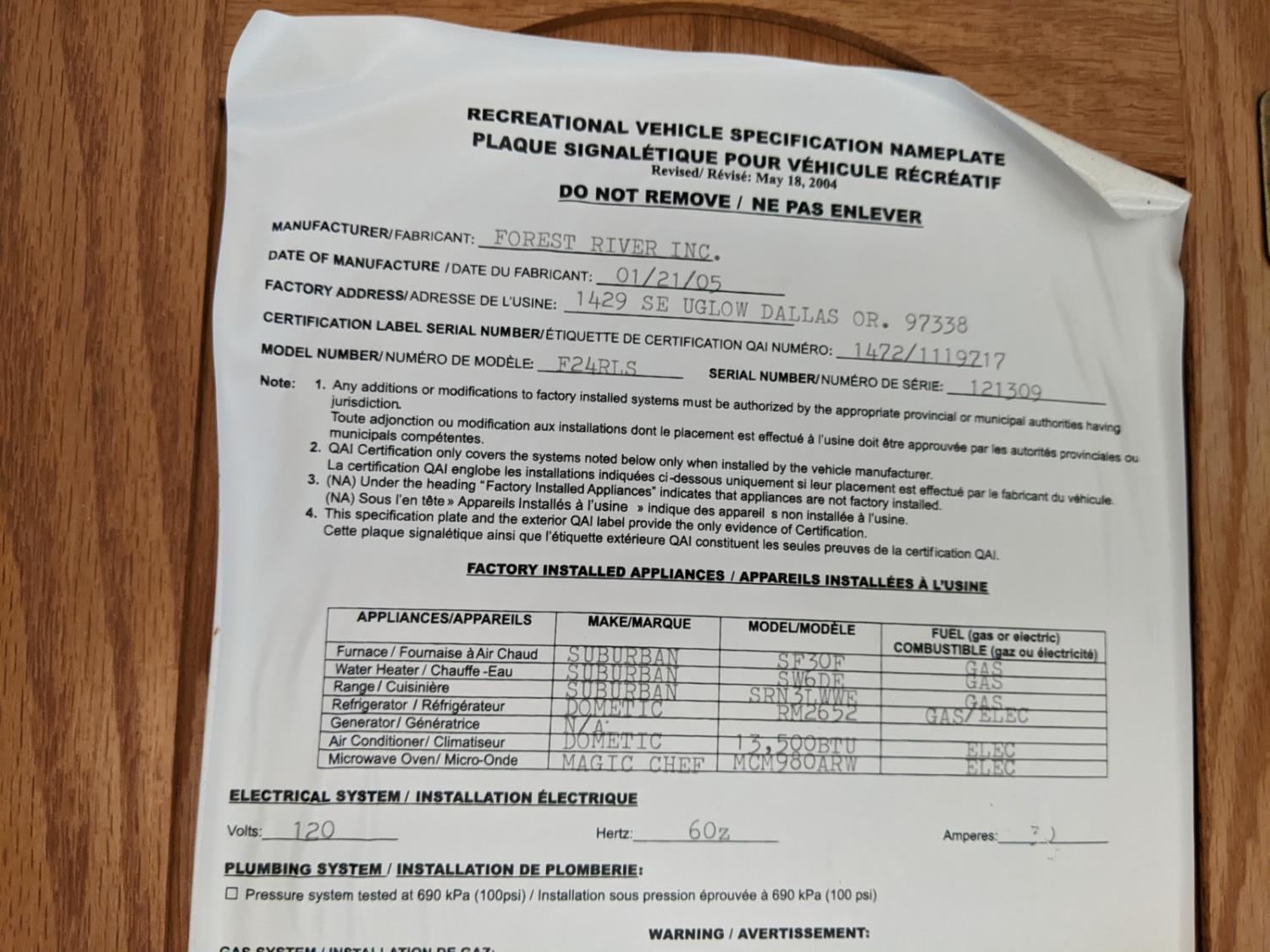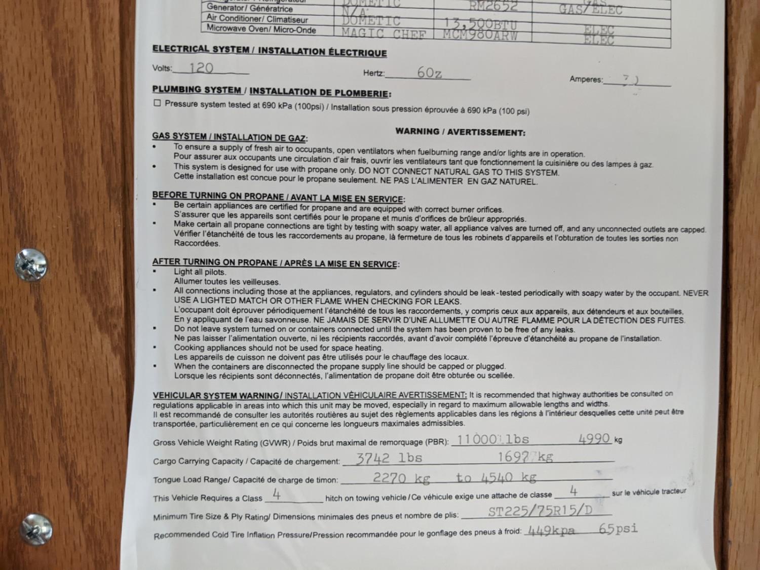Sleeps 6, stove, fridge, microwave, full bath, master bedroom, A/C, outdoor shower, 1 slide, manual awning, spring suspension, electric brakes, never smoked in, no pets, newer propane tanks, tow hitch, 225/75R15 tires