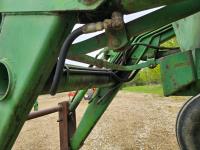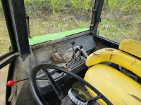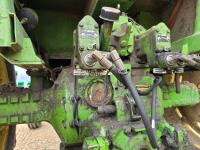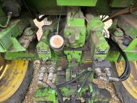 John Deere 158 loader, bucket, grapple, bale forks, 6.6 L 6 cylinder diesel engine, 125 PTO HP, 8 speed Syncro Range partial power shift transmission, 540/1000 PTO, 2 rear hydraulic outlets,