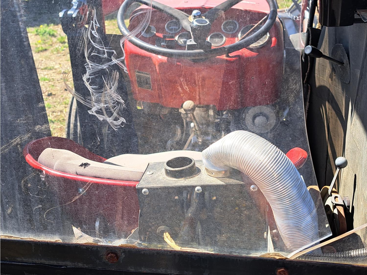 Loader, 60 inch bucket, Perkins AG3.152 3 cylinder 45.5 HP, gas engine, 38 PTO HP, 8 speed manual transmission, cab, extra 51 inch bucket , 540 PTO, 3 point hitch, 2 rear hydraulic outlets, rear wheel weights, 6.00X16 front tires, 14.9X24 rear tires, calcium filled rear tires, 2 bottom plow, 14 inch bottoms, 1 coulter