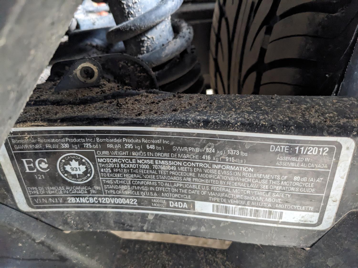 219 2013 Can-Am Spyder ST 3 Wheeled Motorcycle