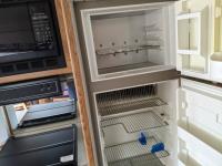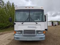 This motorhome has a Ford 460 Gas engine, automatic transmission, air conditioning, furnace, back up camera, microwave, oven, range, TV, full fridge with top freezer, full bathroom, full size rear bedroom, one slide, sleeps 4, Onan Emerald Plus generator, comes with cords, tools and camping equipment, kitchen supplies, rear duals,