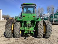 John Deere 7.6 6 cylinder engine, 175 PTO HP, 16 speed Quad Range partial power shift transmission, cab, A/C, 1000 PTO, 3 rear hydraulic outlets, 18.4X38 tires, factory duals, 300 hours on new tires