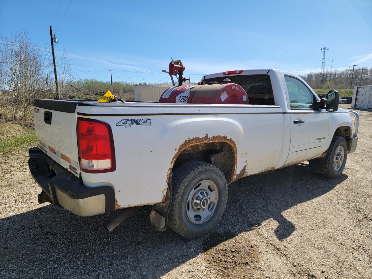 6.0 L, V8, gas, automatic transmission, P/W, P/L, A/C, 8 ft box, comes with Tidy Tanks fuel tank with Fill-rite 20GPM 12v pump and wooden tool box , 265/70R17 tires