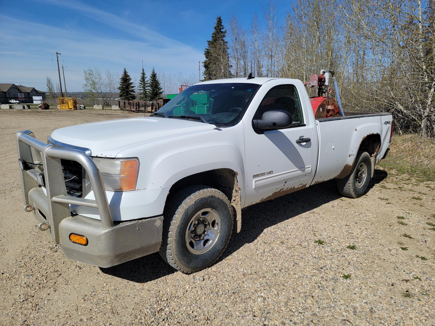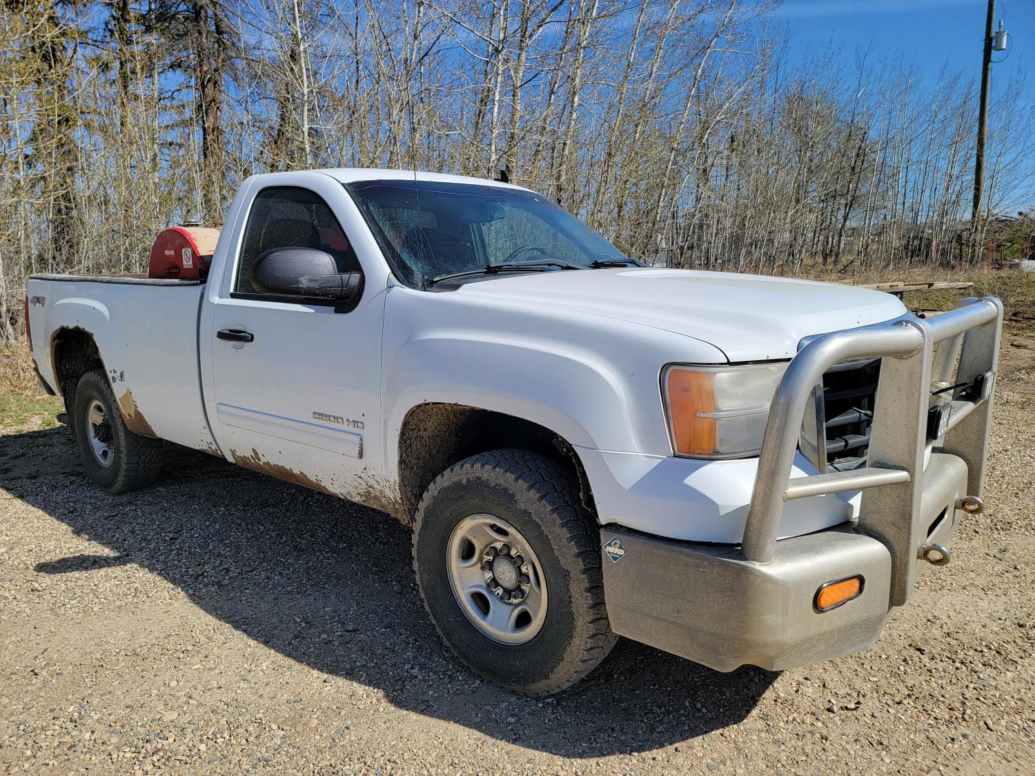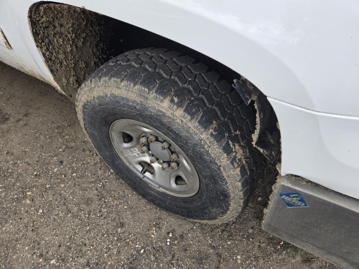6.0 L, V8, gas, automatic transmission, P/W, P/L, A/C, 8 ft box, aluminum font bumper, Westeel 450 L fuel tank with Fill-rite 20gpm 12v fuel pump, and wooden tool box, HERD aluminum bumper , 265/75R16 tires