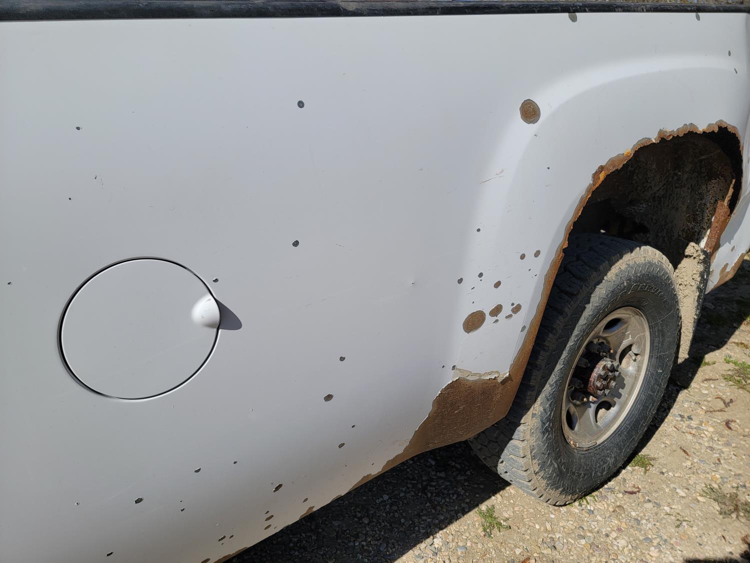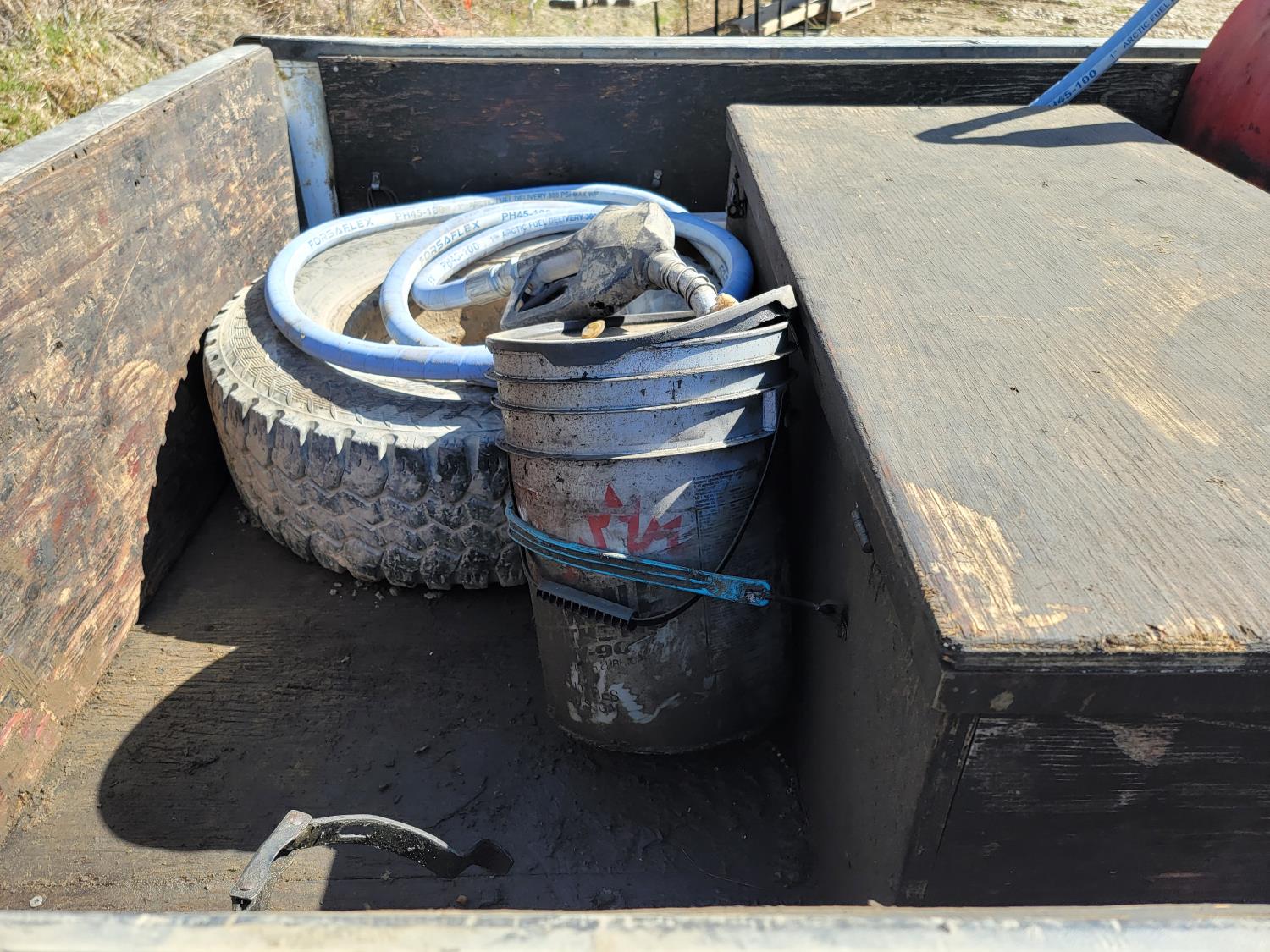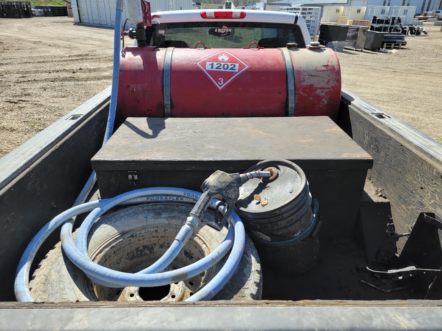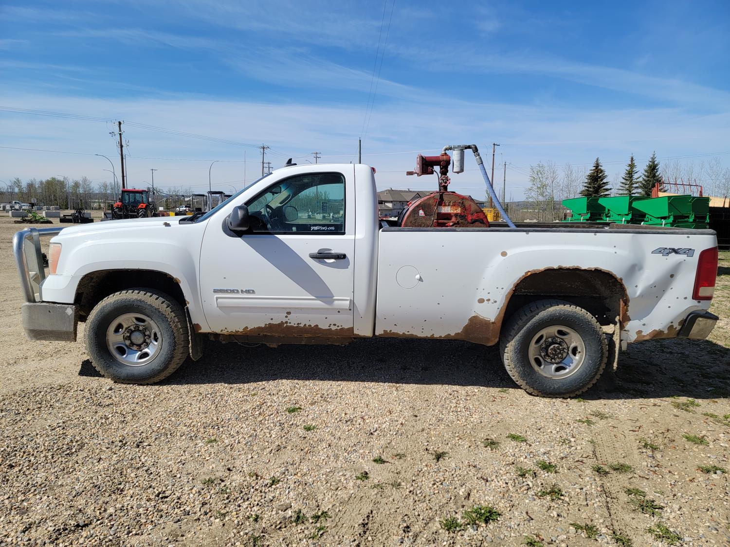 6.0 L, V8, gas, automatic transmission, P/W, P/L, A/C, 8 ft box, aluminum font bumper, Westeel 450 L fuel tank with Fill-rite 20gpm 12v fuel pump, and wooden tool box, HERD aluminum bumper , 265/75R16 tires