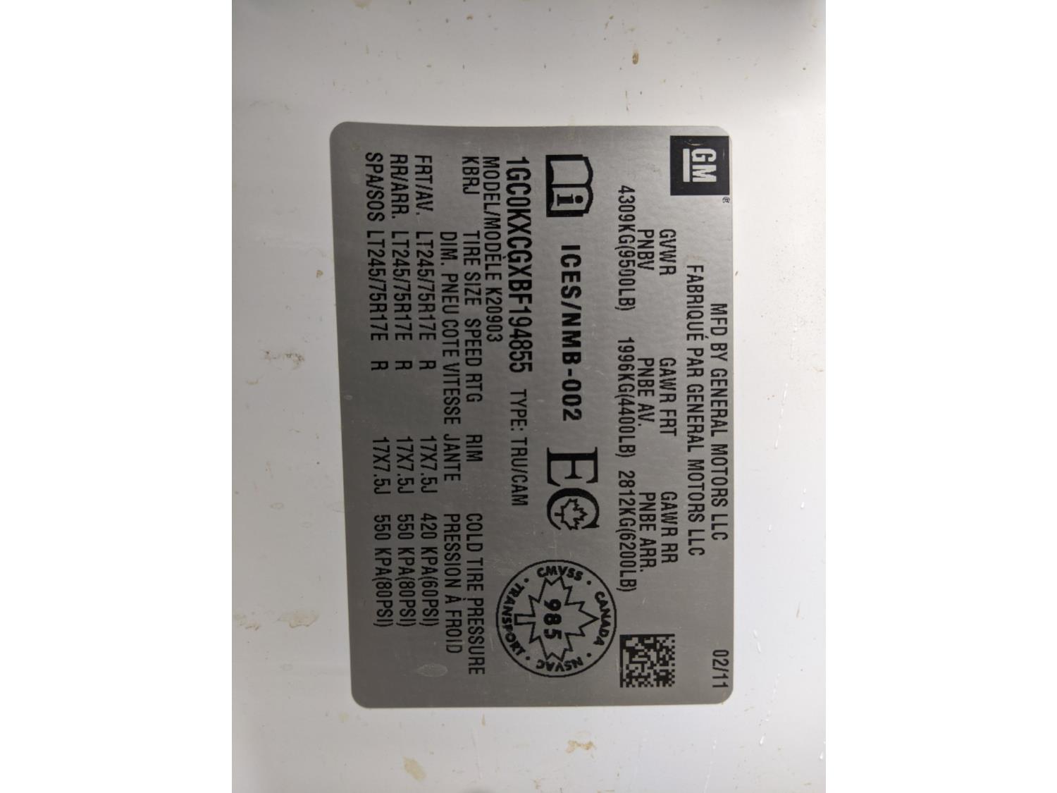 - 1GC0KXCGXBF194855