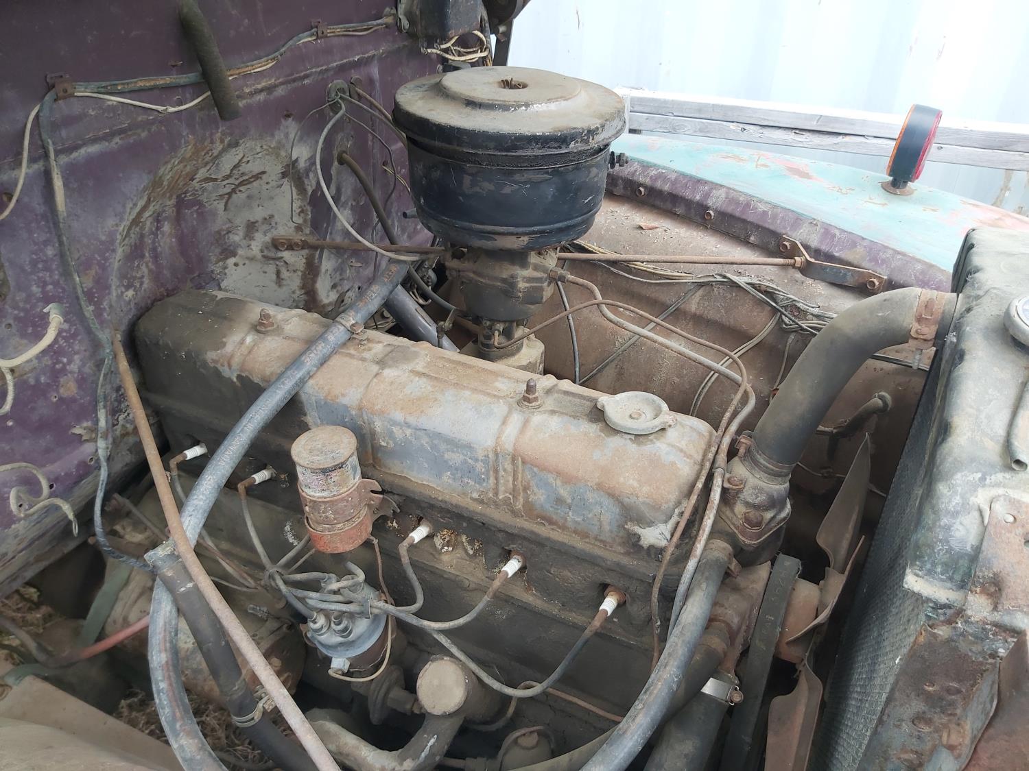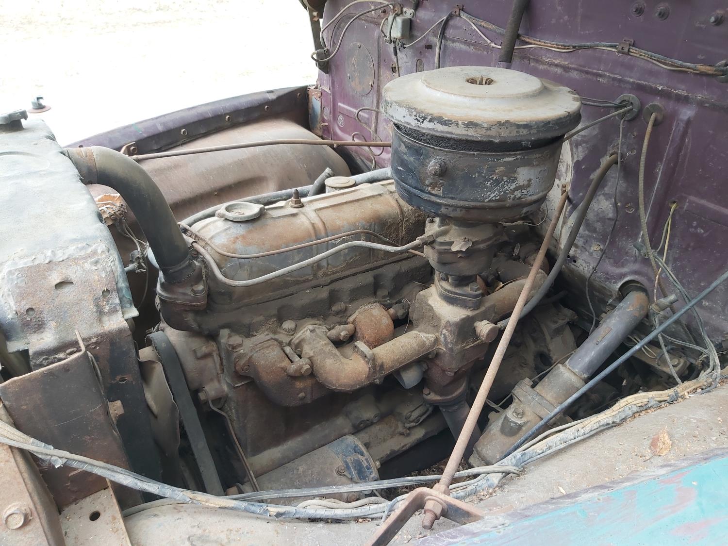 6 cylinder, 4 speed manual transmission, original engine, 7.50-17 tires
