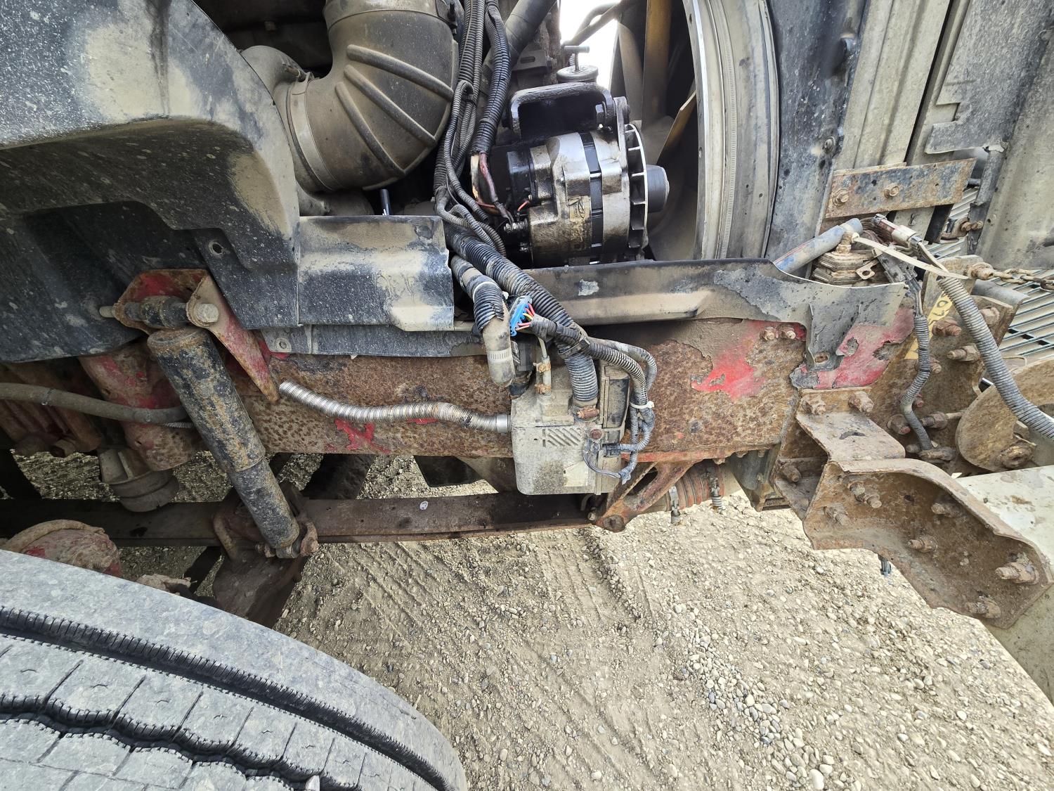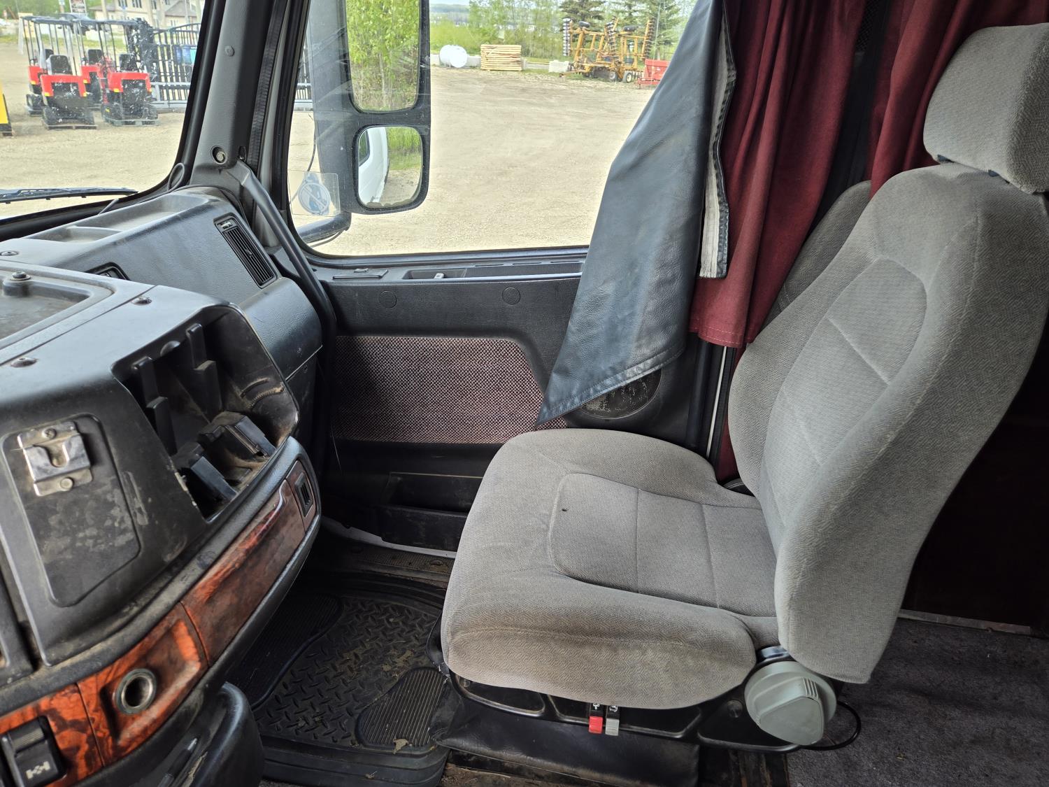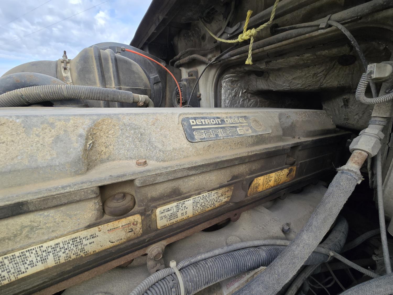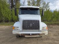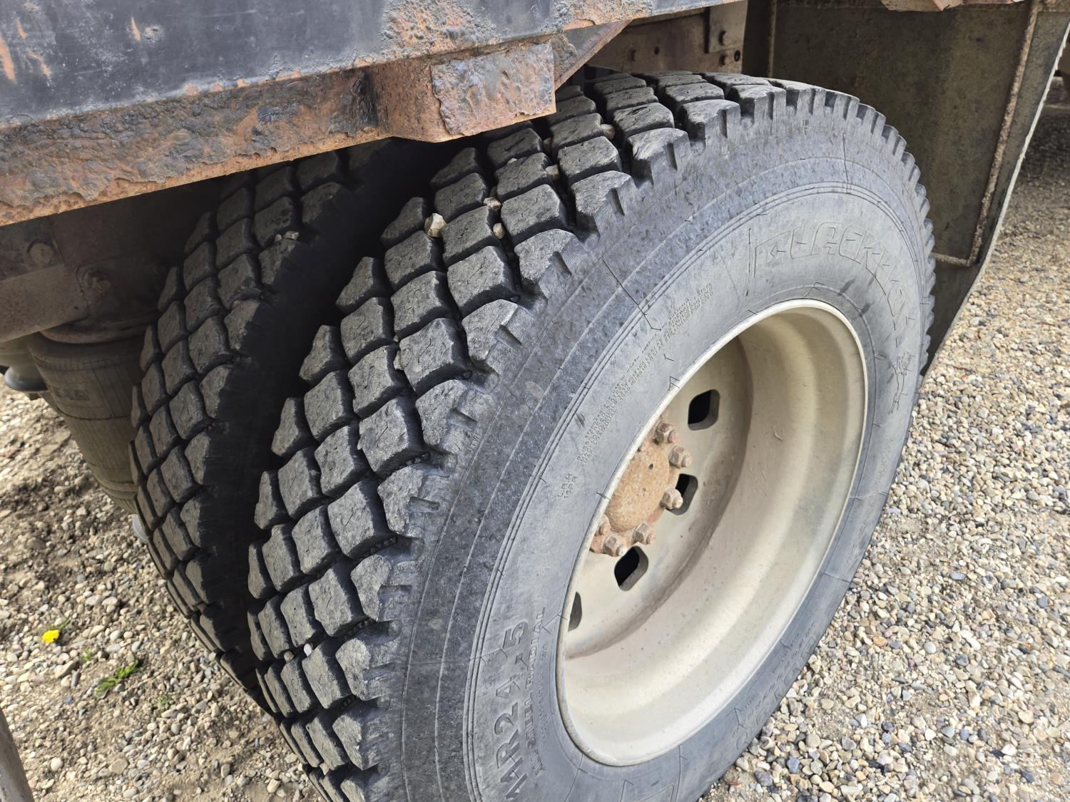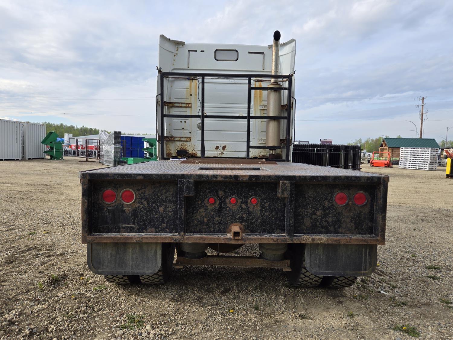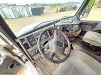 Detroit 60 SERIES 14 L 6 cylinder 430 HP engine, engine heater, Fuller 13 speed manual transmission, integral 54 inch sleeper, bunk beds, A/C, air ride seats, radio, 102" X 11' steel deck, ball 5th wheel, air ride suspension, 12,000 lb front axle, 20,000 lb rear axles, diff lock, 228 inch WB, all aluminum wheels, 11R24.5 tires
