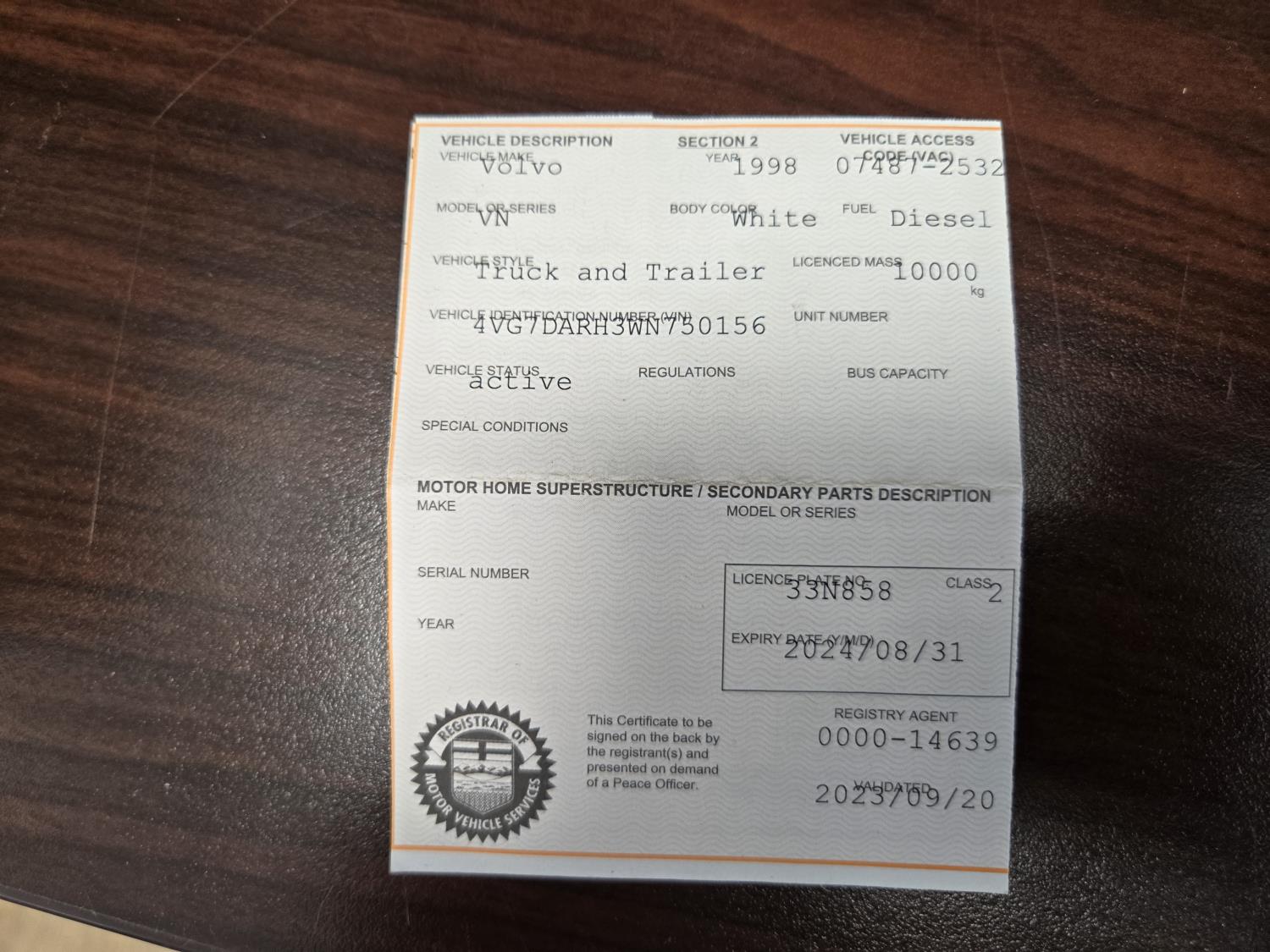 159 1998 Volvo S/A Flat Deck Truck