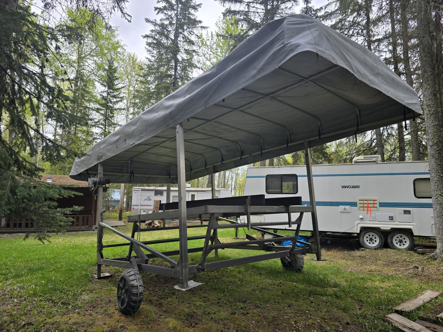 215 Shoremaster Aluminum Boat Lift with Canopy and Wheels