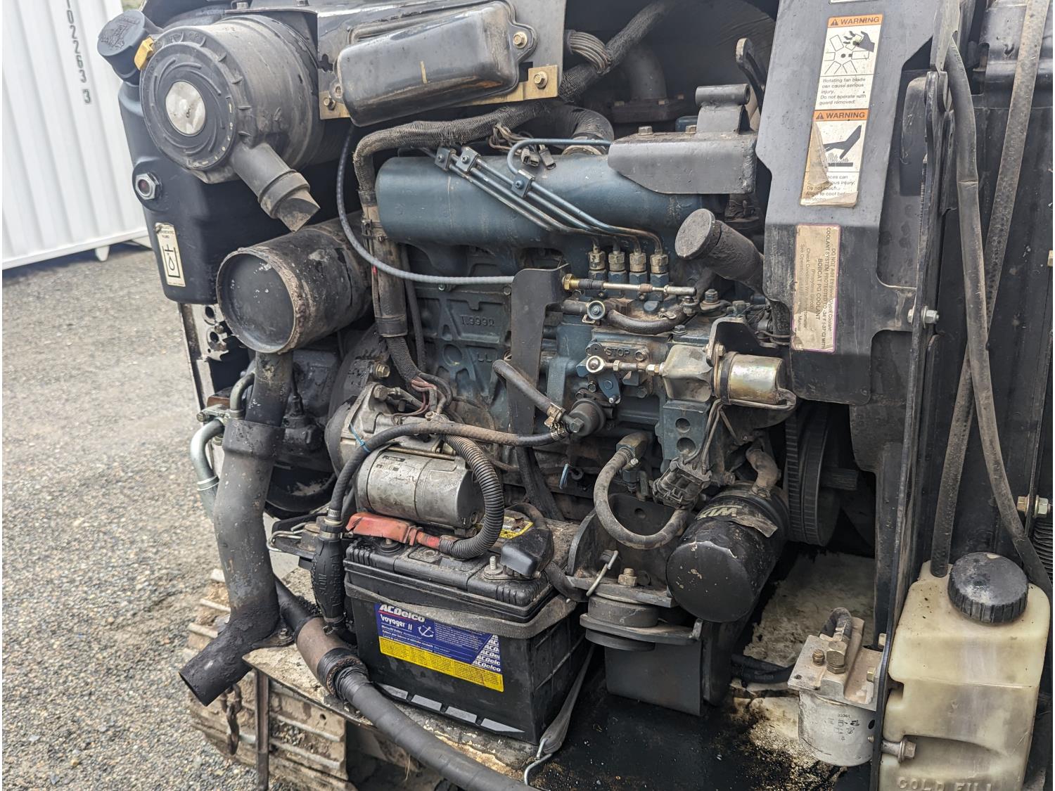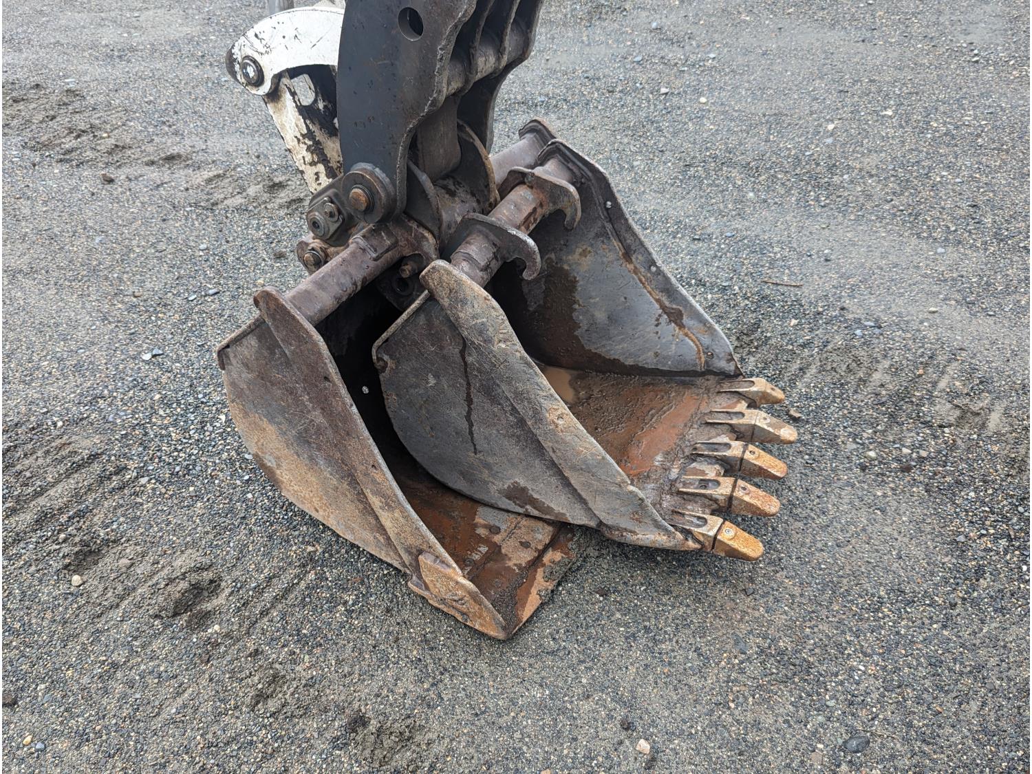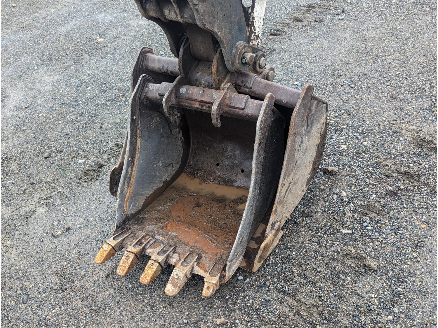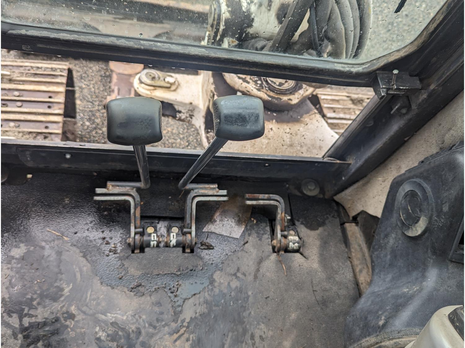 Enclosed cab, A/C, 4 cylinder turbo diesel, 24 inch digging bucket, 36 inch cleanup bucket, manual coupler, hydraulic thumb, 1 auxiliary hydraulics, 5 Ft 7 inch stick, swing boom, backfill blade, single grousers