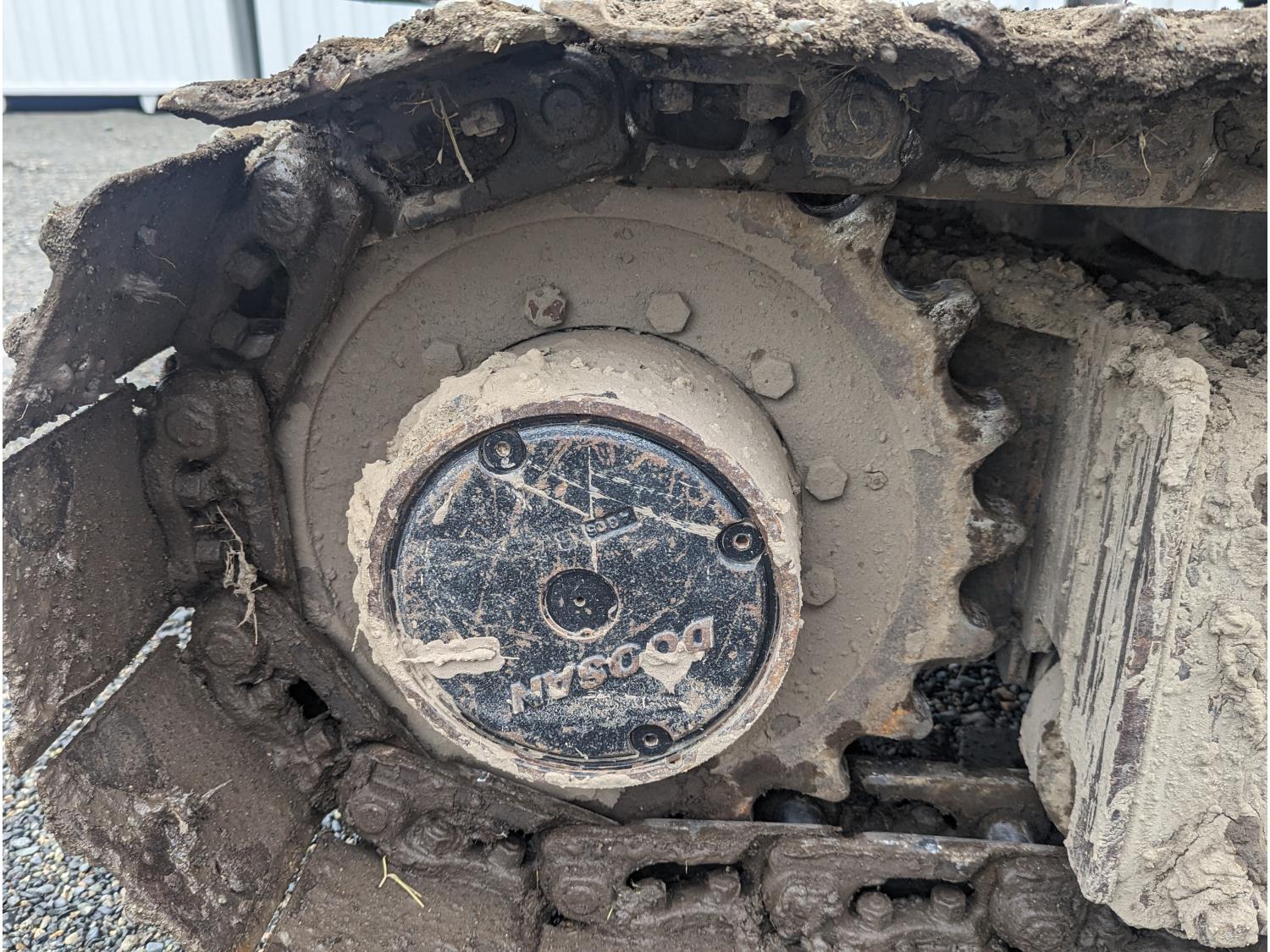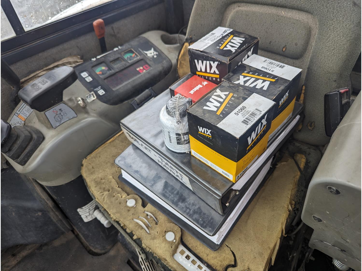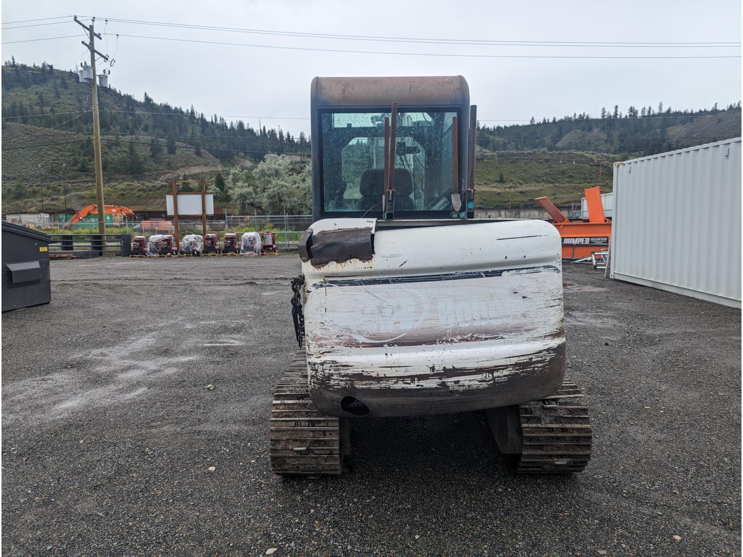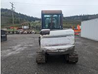 Enclosed cab, A/C, 4 cylinder turbo diesel, 24 inch digging bucket, 36 inch cleanup bucket, manual coupler, hydraulic thumb, 1 auxiliary hydraulics, 5 Ft 7 inch stick, swing boom, backfill blade, single grousers