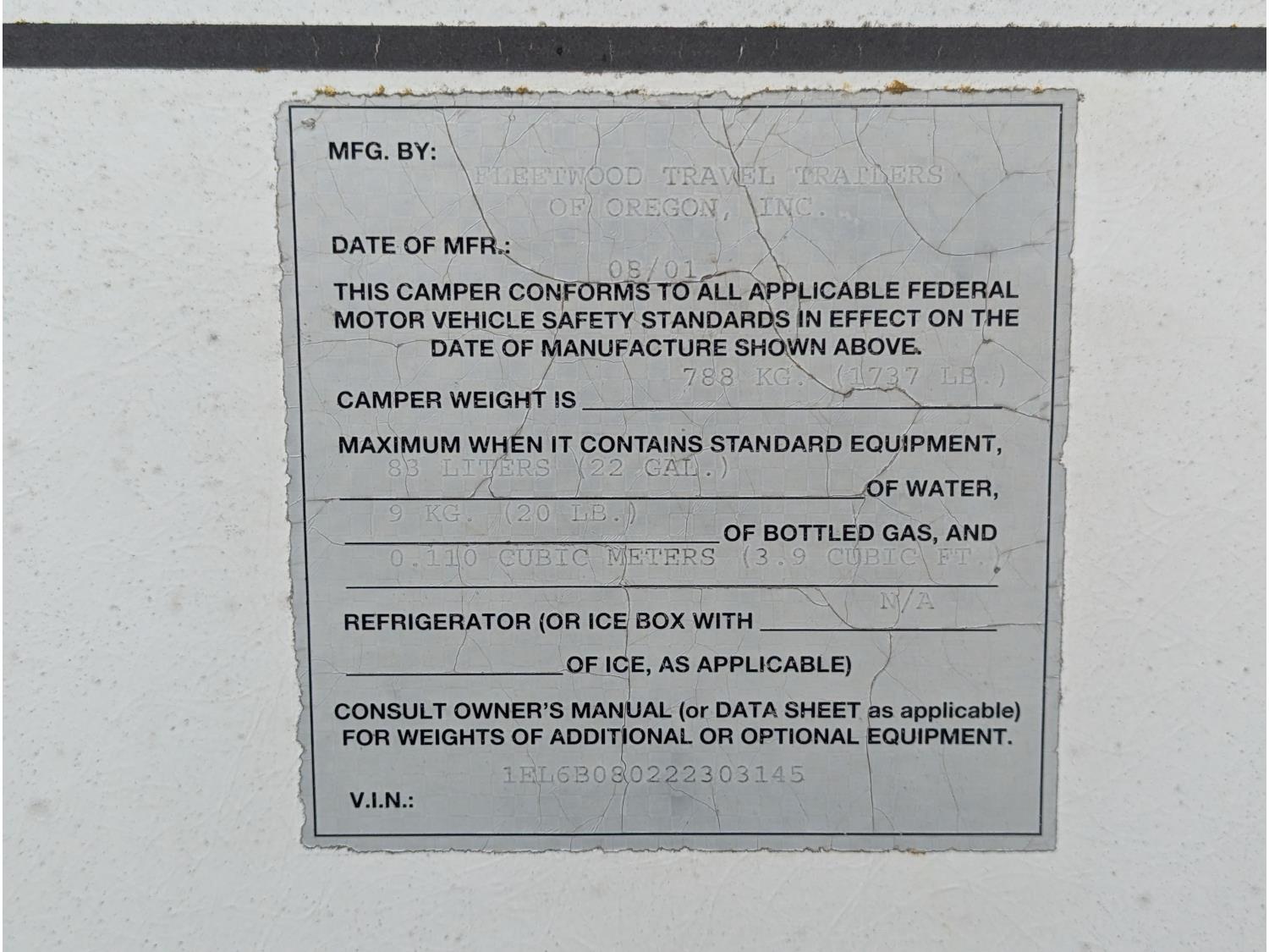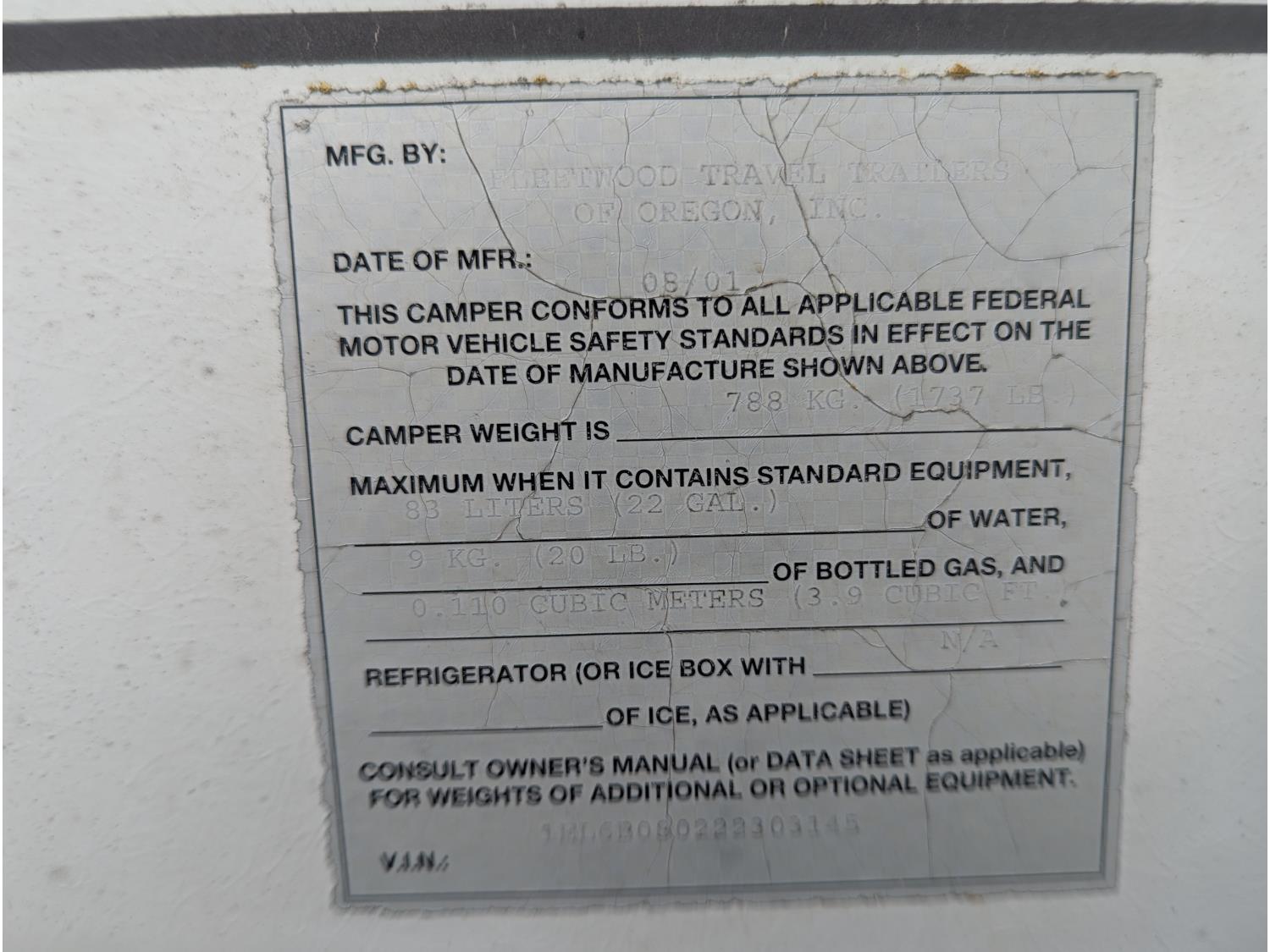 287 2002 Fleetwood Angler 9 Ft Truck Camper