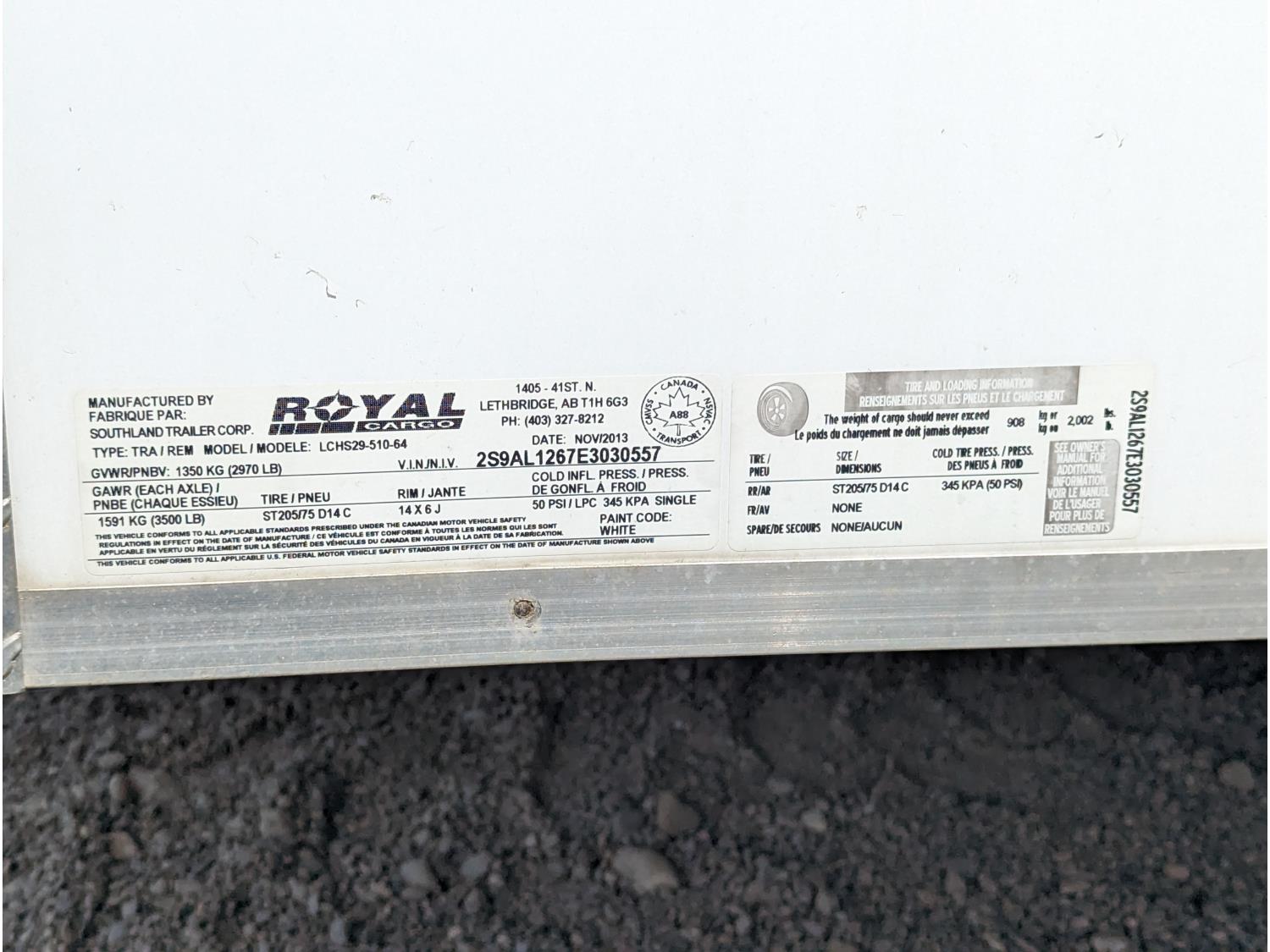 57 inch interior width, barn doors, electric brakes, spring suspension, 3500 lb axles, ST205/75R14 tires
