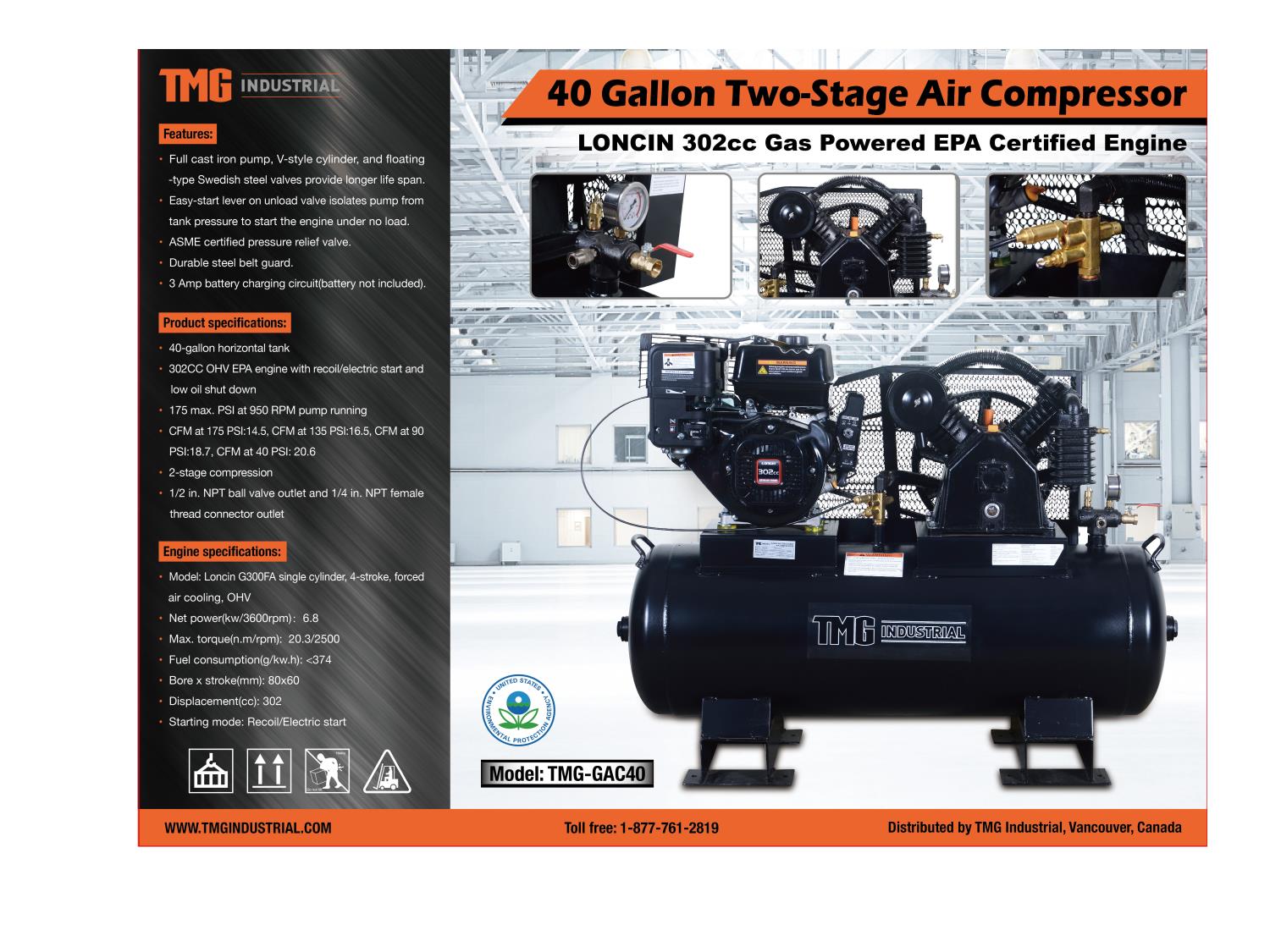 141 TMG Industrial TMG-GAC40 40 Gallon Gasoline Air Compressor (Unused)