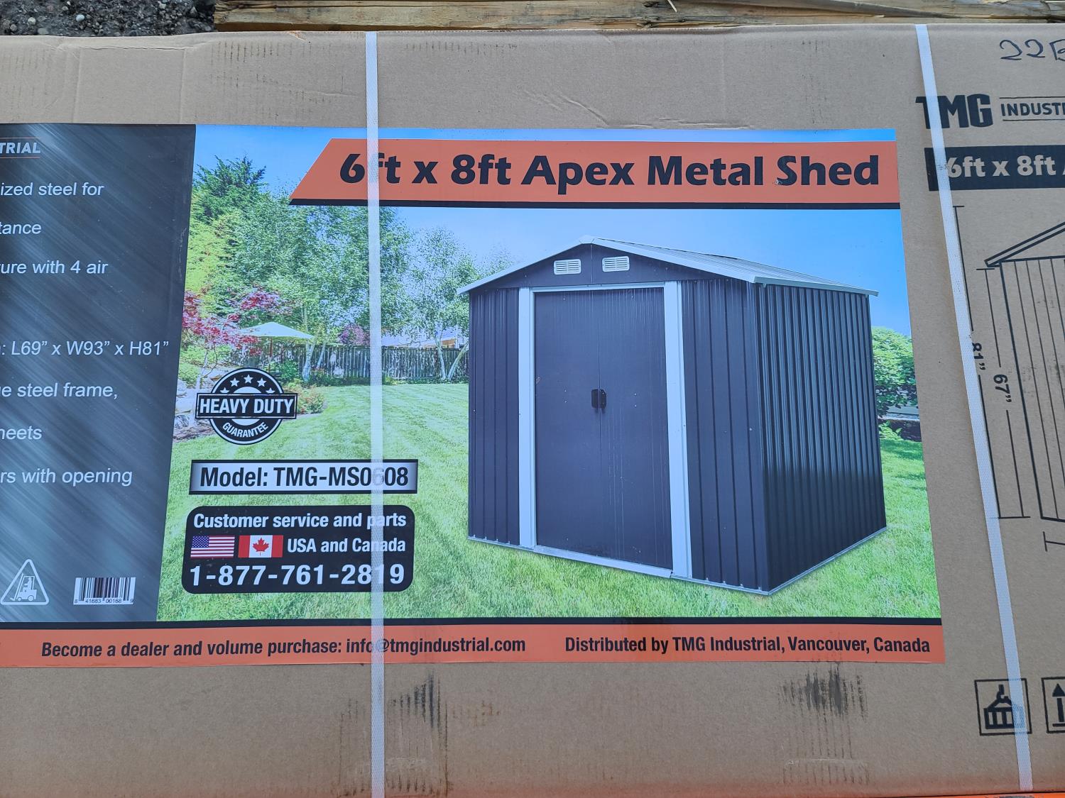 153 TMG Industrial TMG-MS0608 6 X 8 Ft Metal Shed (Unused)