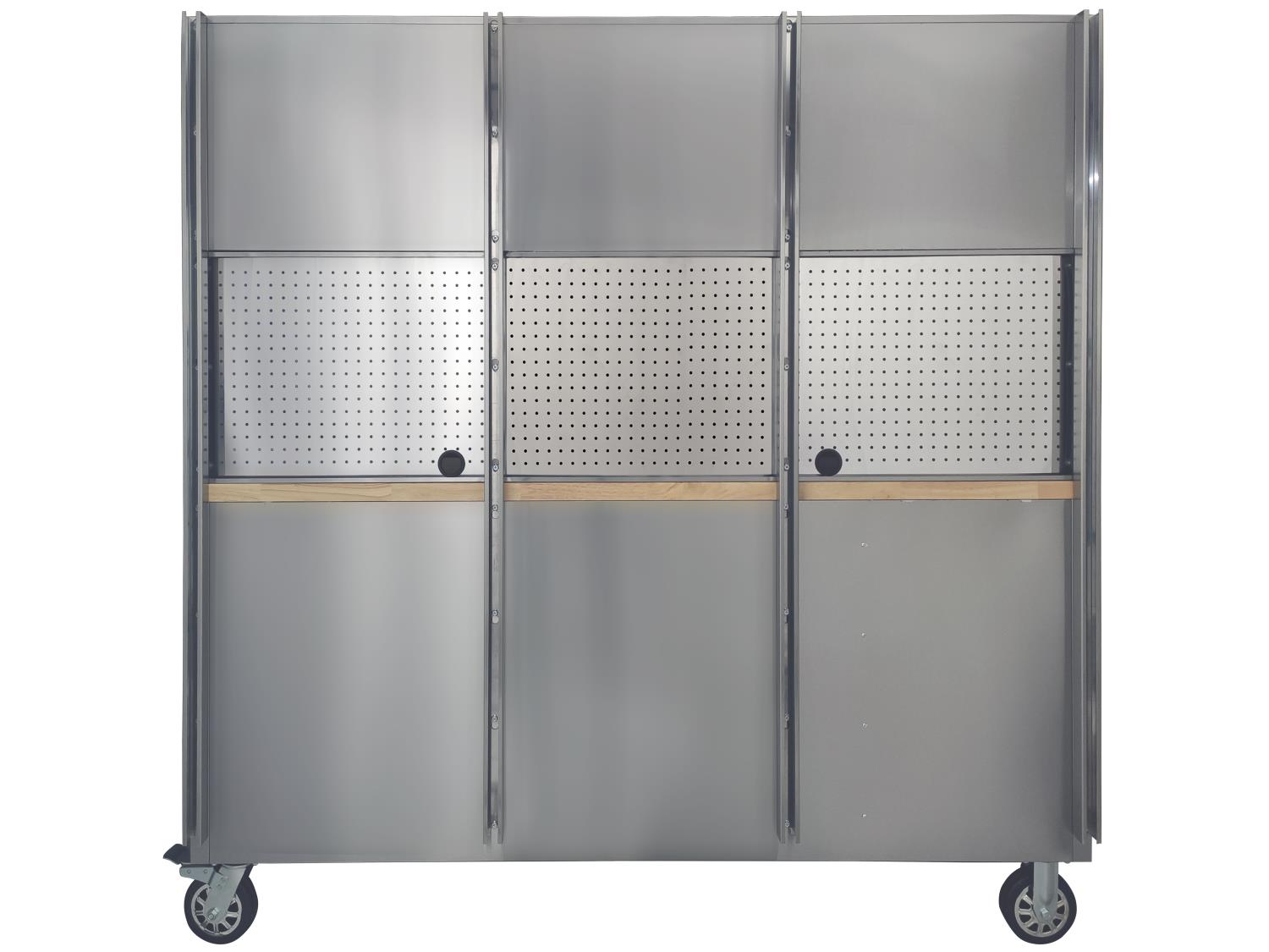 15 Lockable drawers, wall-mounted cabinets, pegboard, adjustable shelving