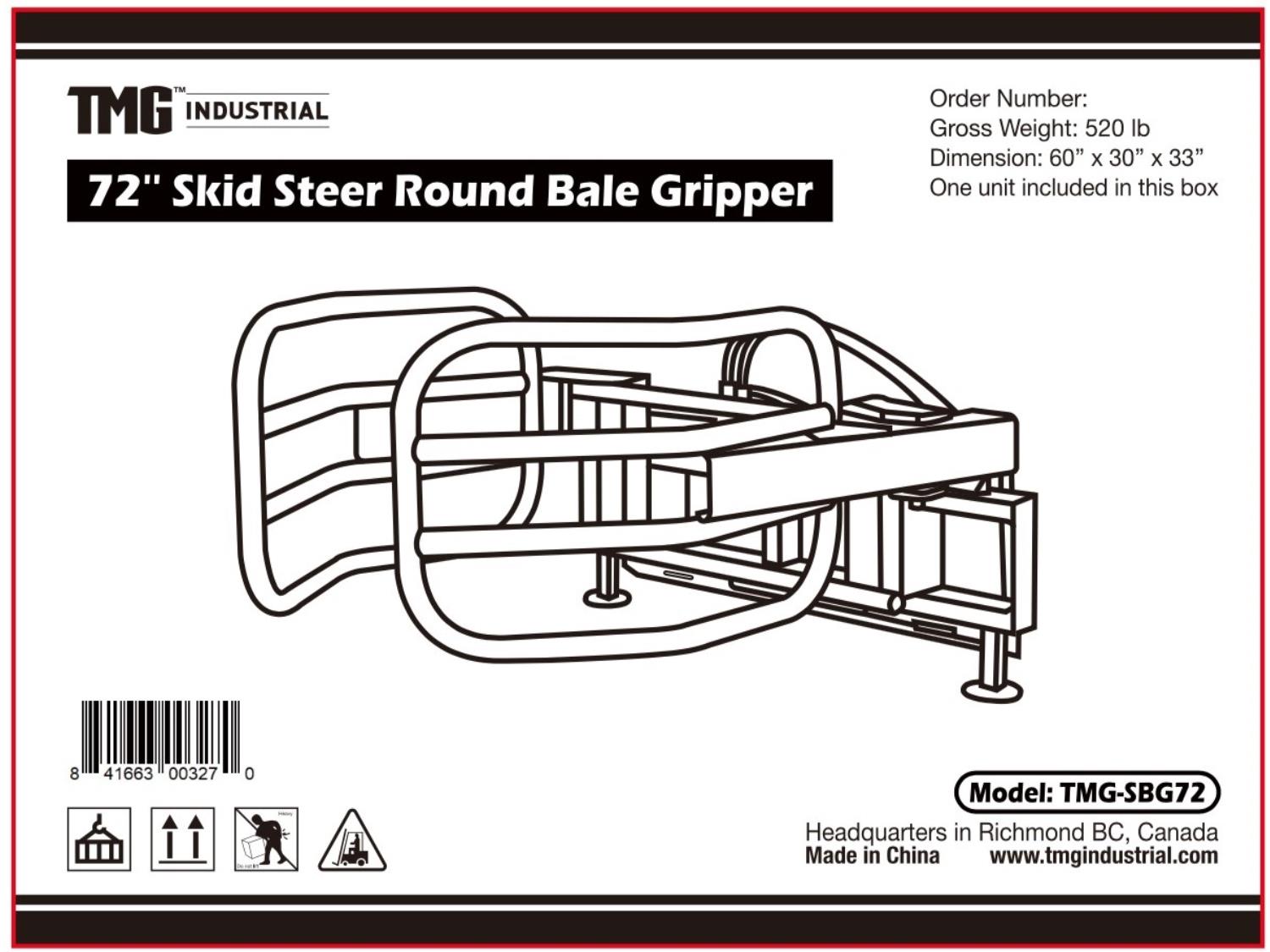 297 TMG Industrial TMG-SBG72 72 Inch Hydraulic Round Bale Gripper - Skid Steer Attachment (Unused)