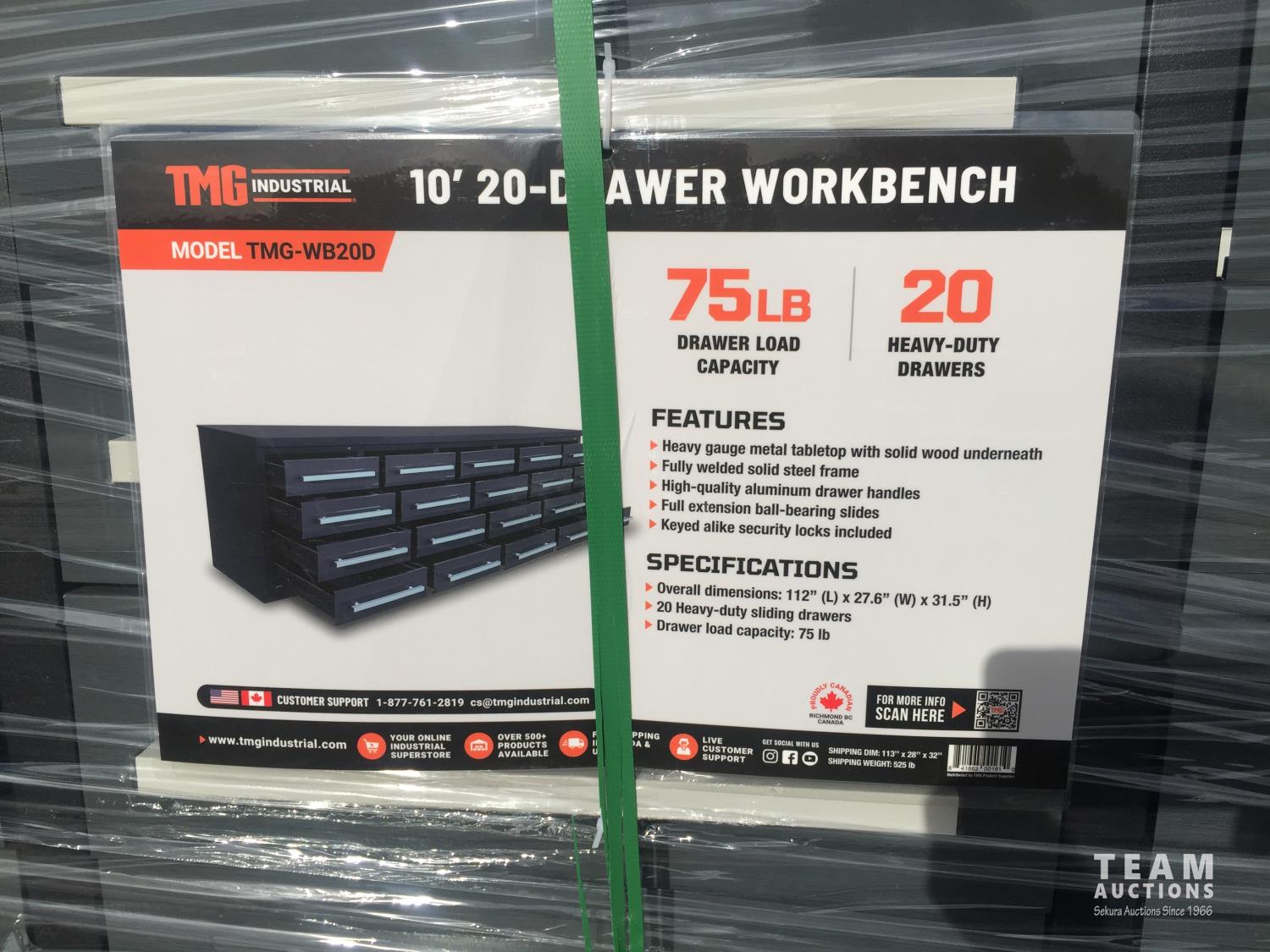 197 TMG Industrial TMG-WB20D 112 Inch 20 Drawer Workbench (Unused)