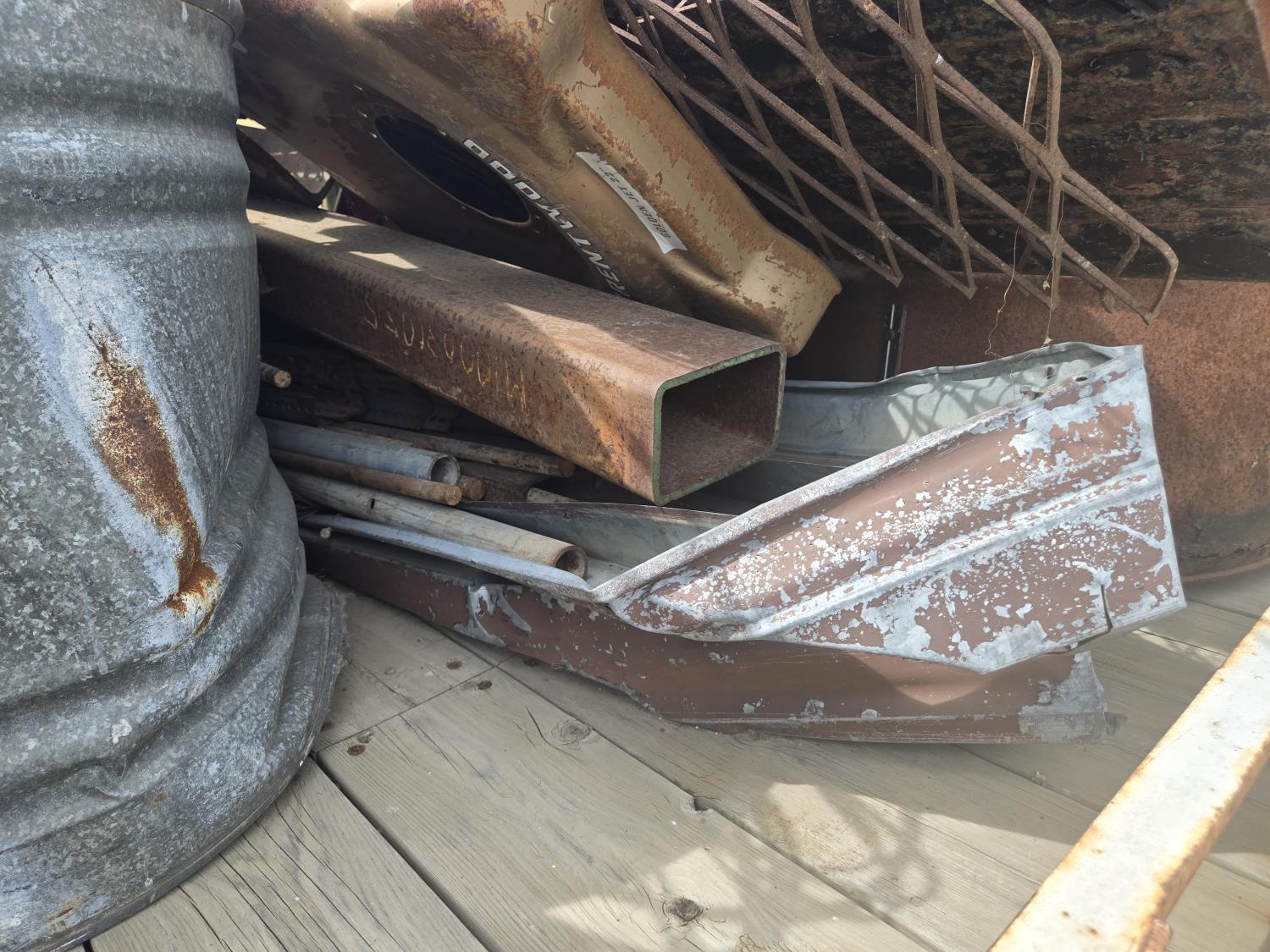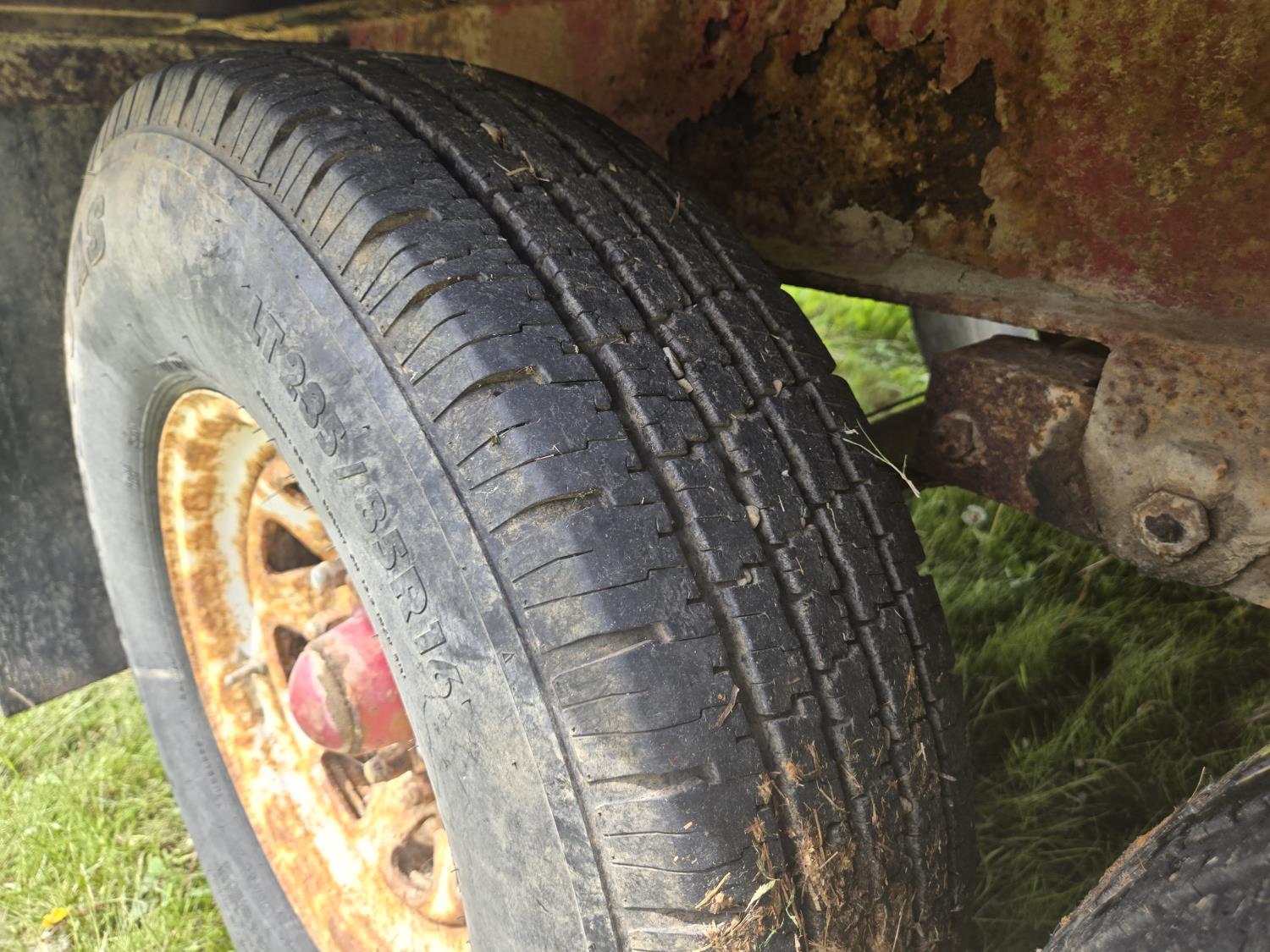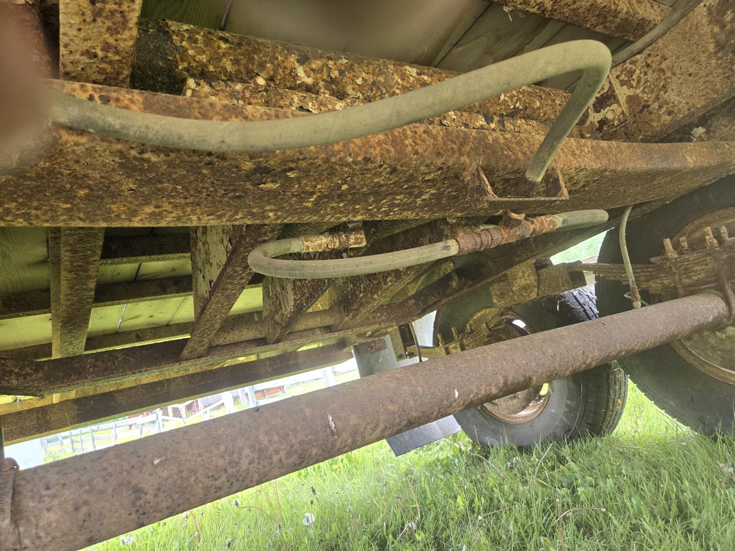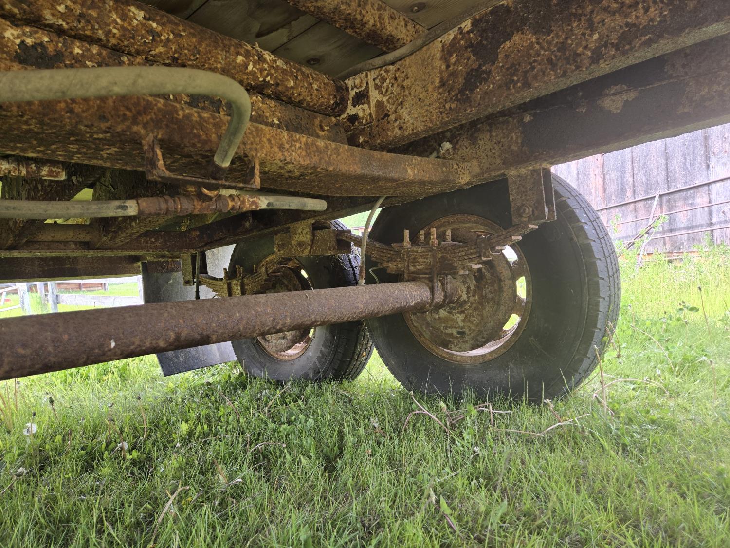 7000 lb axles, pintle hitch, hoist requires external hydraulics, hydraulic brakes, spring suspension, 235/85R16 tires, includes sucker rod and scrap metal