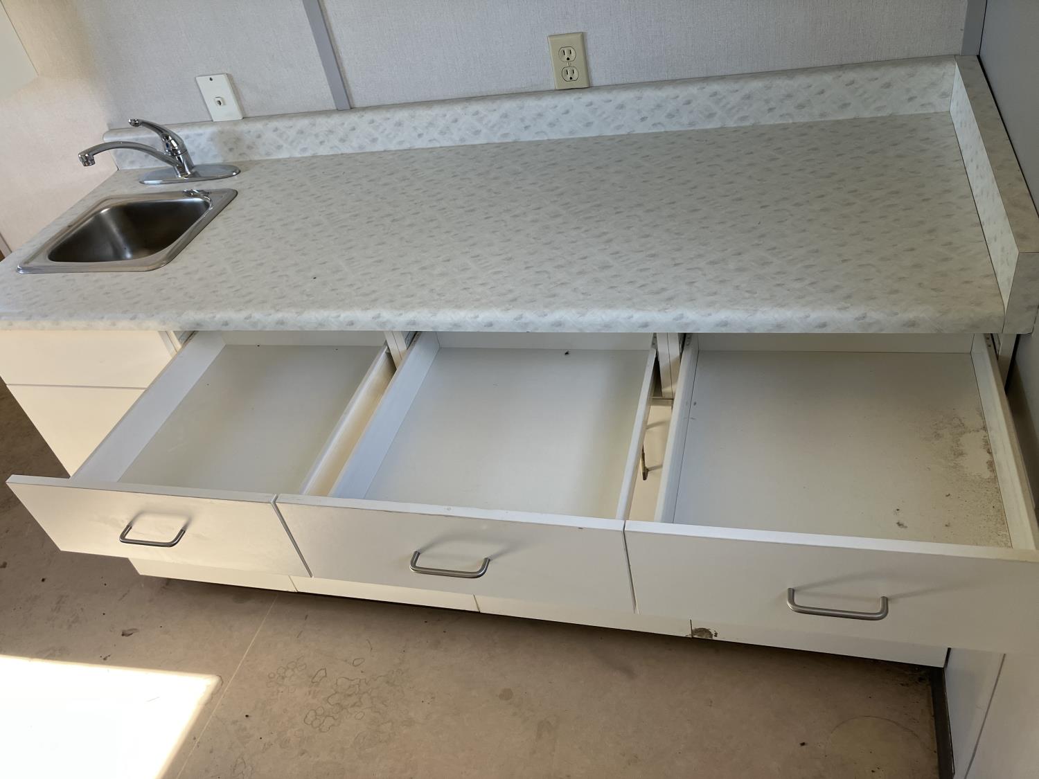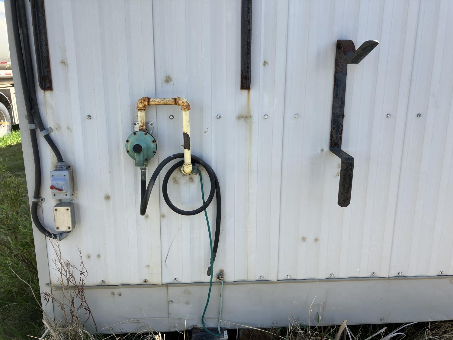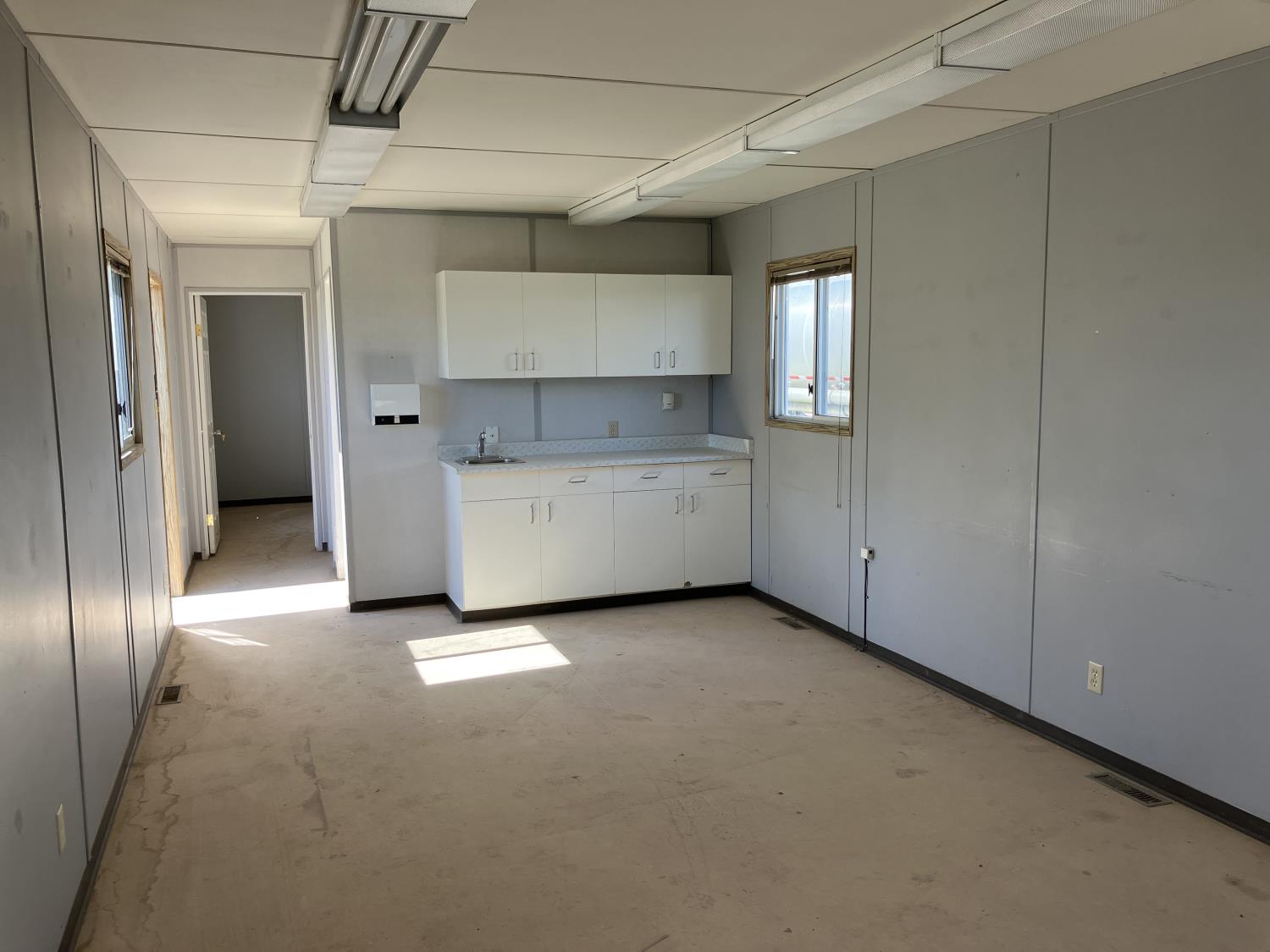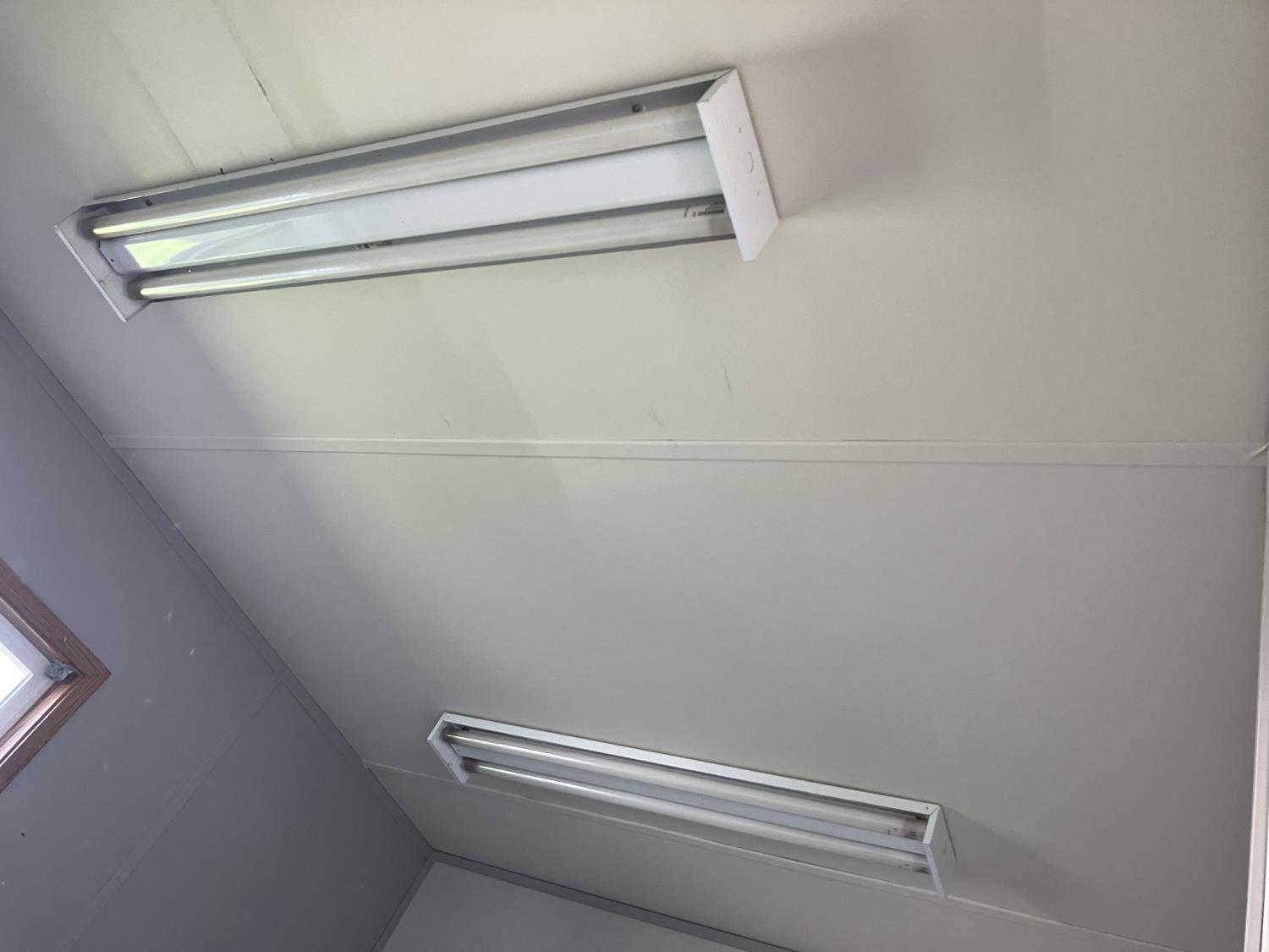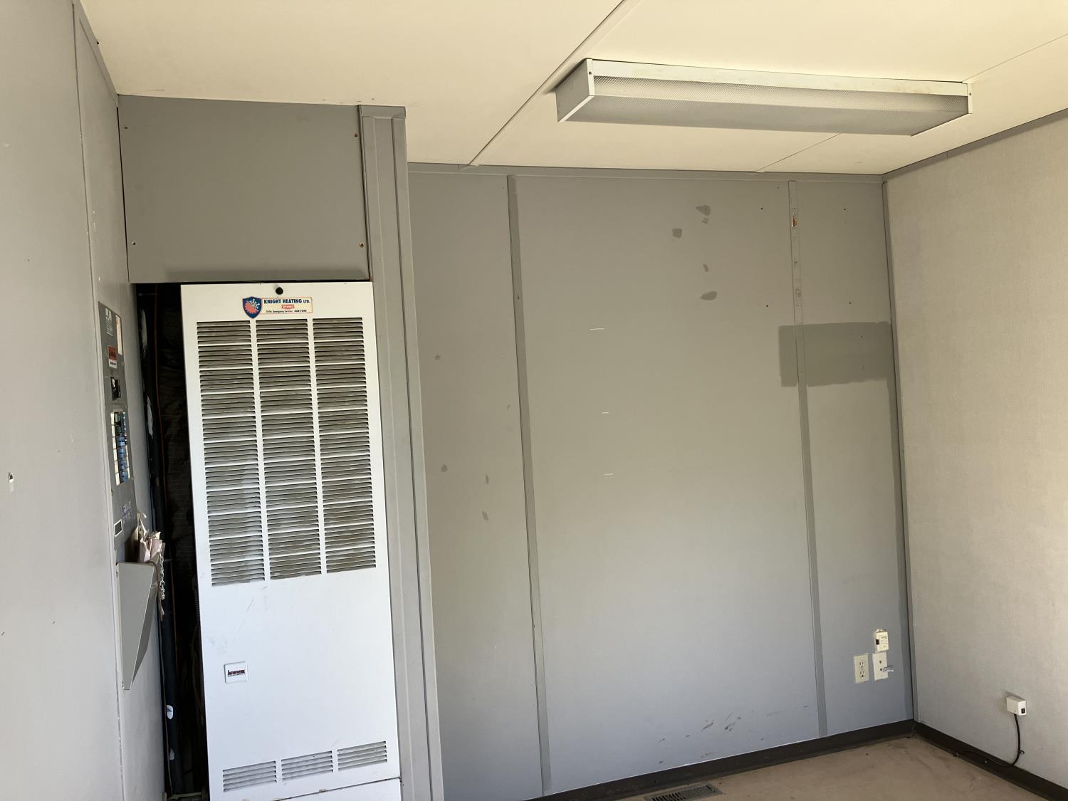30AMp, 120/240 single phase power, Intertherm furnace on propane, outside AC heating and cooling, Space saver on demand hot water, full kitchen unit, (2) washrooms, (2) small private offices, fully wired with numerous outlets and network jacks