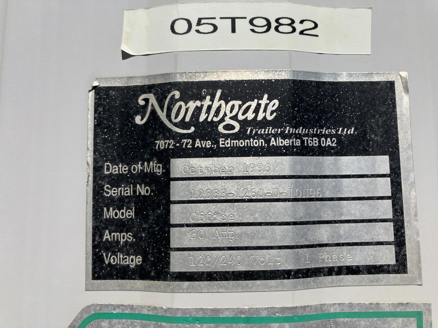 262 1996 Northgate Trailer 12 Ft X 60 Inch Skid Mounted Office