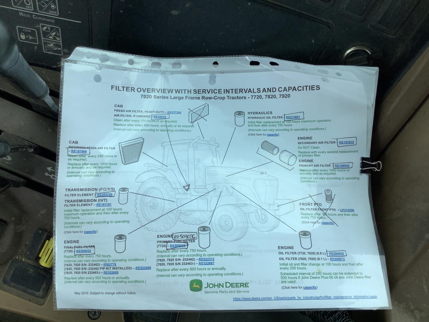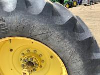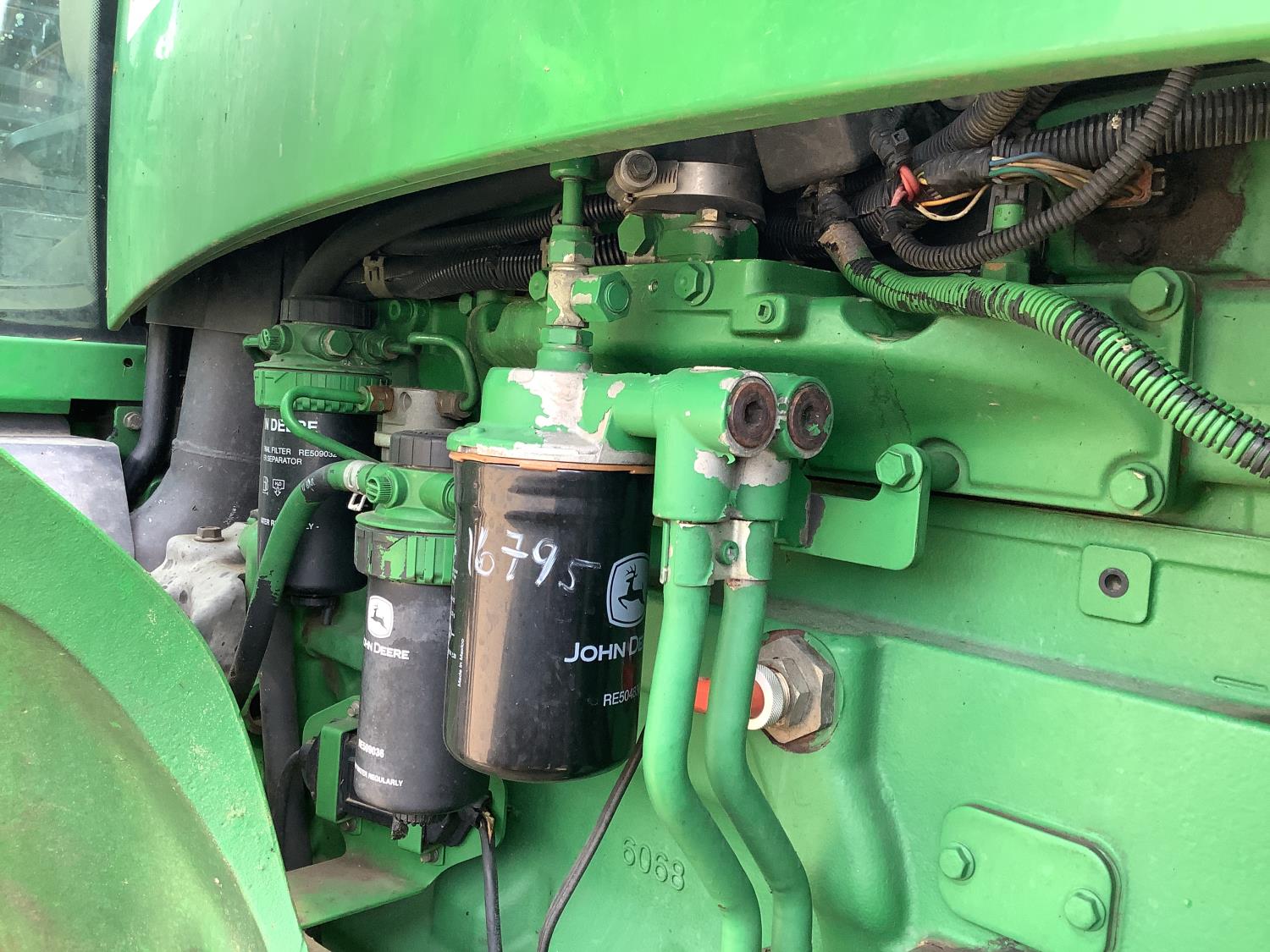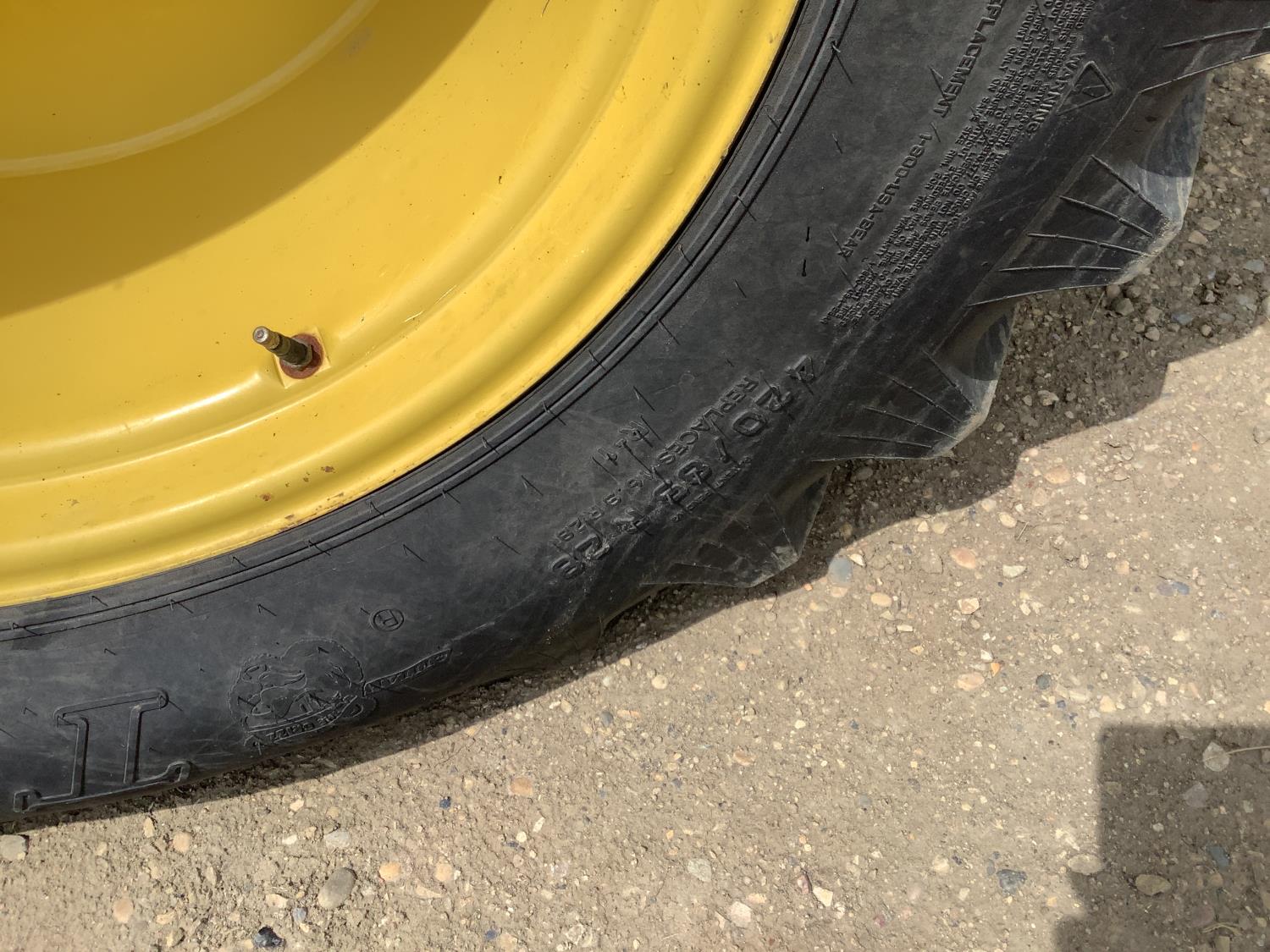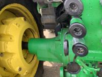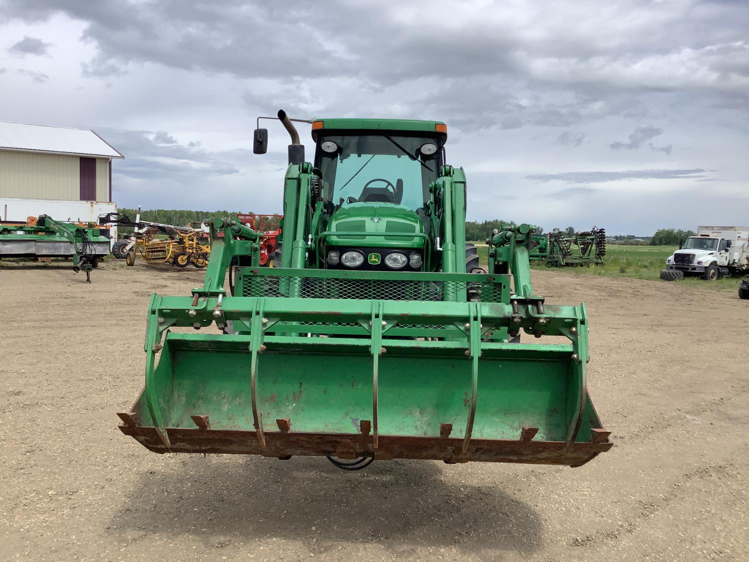 John Deere 746 loader, Q/A, bucket, bale forks, mid mount hydraulic connection, John Deere 6.8 L 6 cylinder 167 HP, engine, 140 PTO HP, 16 speed PowrQuad partial power shift transmission, joystick, A/C, radio, 540/1000 PTO, 3 rear hydraulic outlets, 420/65R28 front tires, 520/85R38 rear tires, 4 prong bale forks, pallet forks