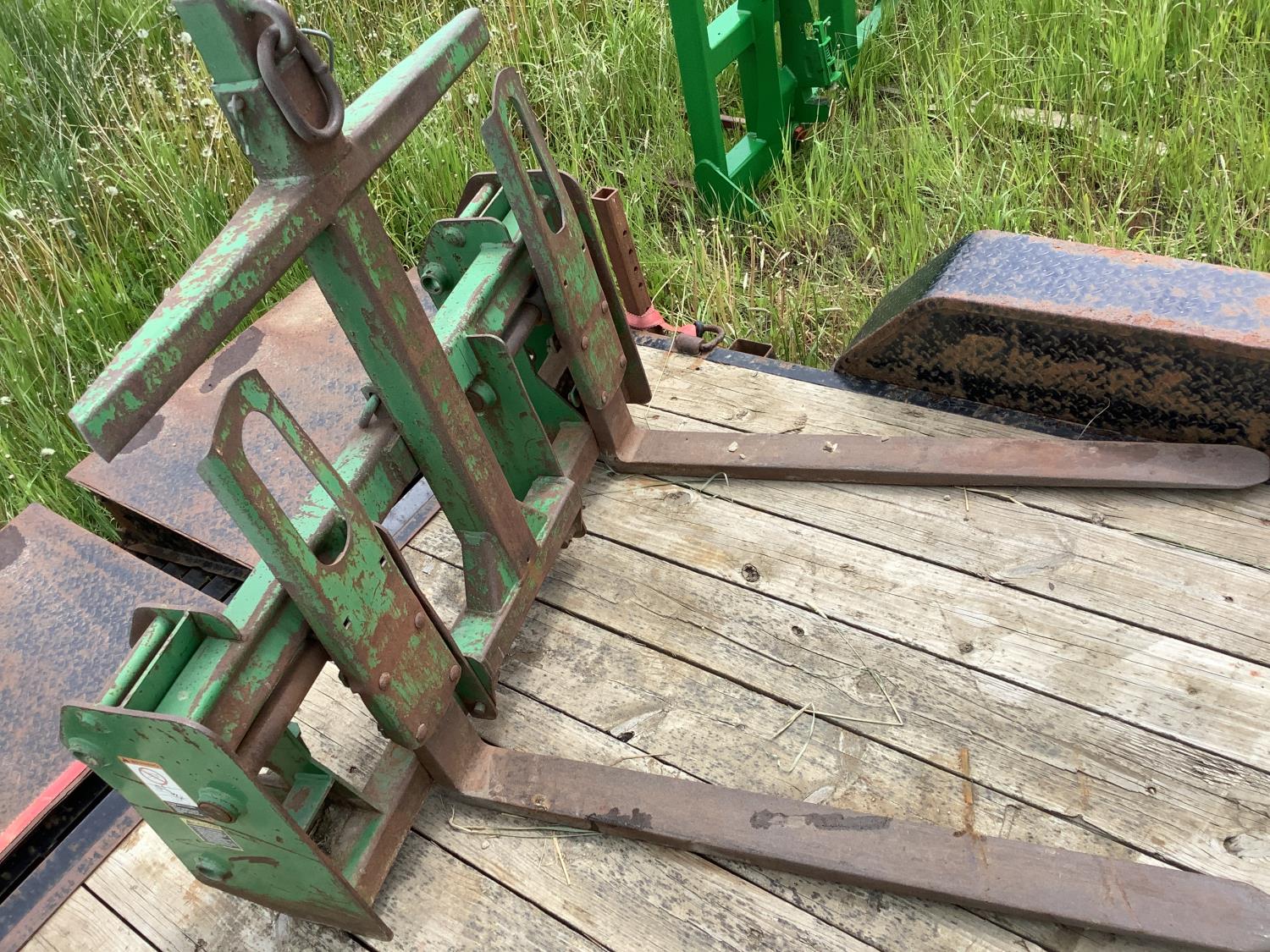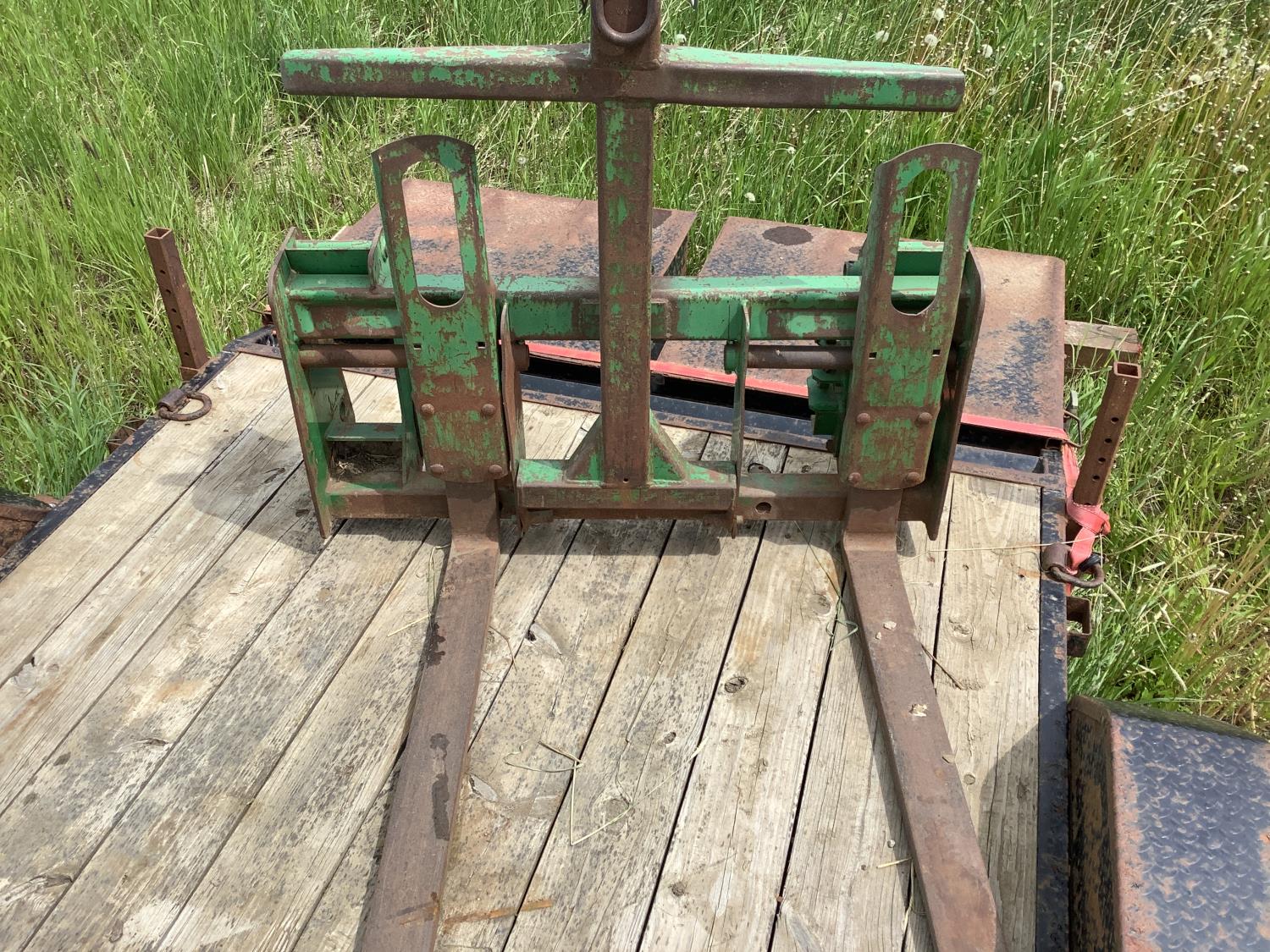 This tractor just in May 2024 has had a rebuilt transmission done at Martin Deerline in Edmonton, AB. The bill was $35,729.00. Parts were $20,135.00 and the labor was $14,343.00. We have the work order on hand. This tractor comes with (2) bale forks and (1) set of pallet forks included.