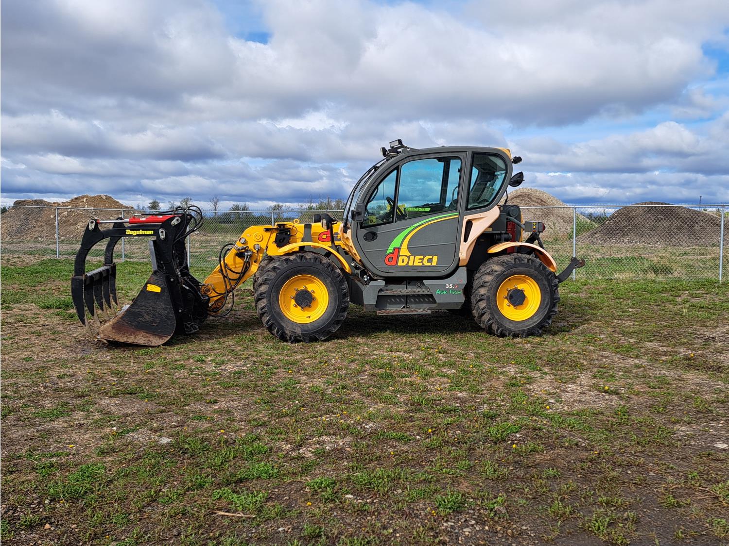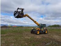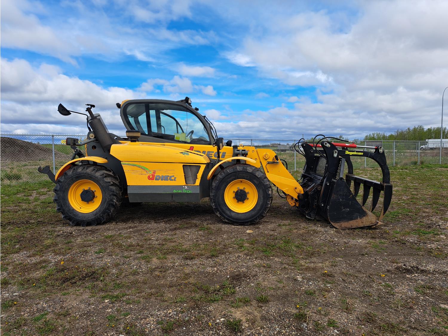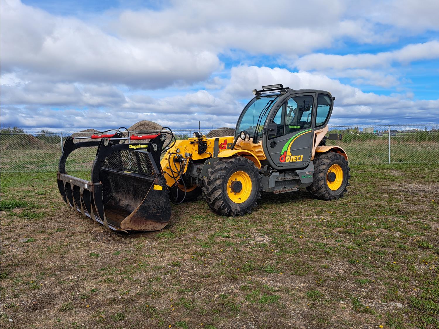 141 horsepower FPT (Fiat Power Train) diesel engine, 1000 PTO with rear remote controls, 3 point hitch, 445/65R22.5 MPT steel belted radial tires, Degelman 8FT smooth bucket with 5 claw grapple, 2 rear aux hydraulics