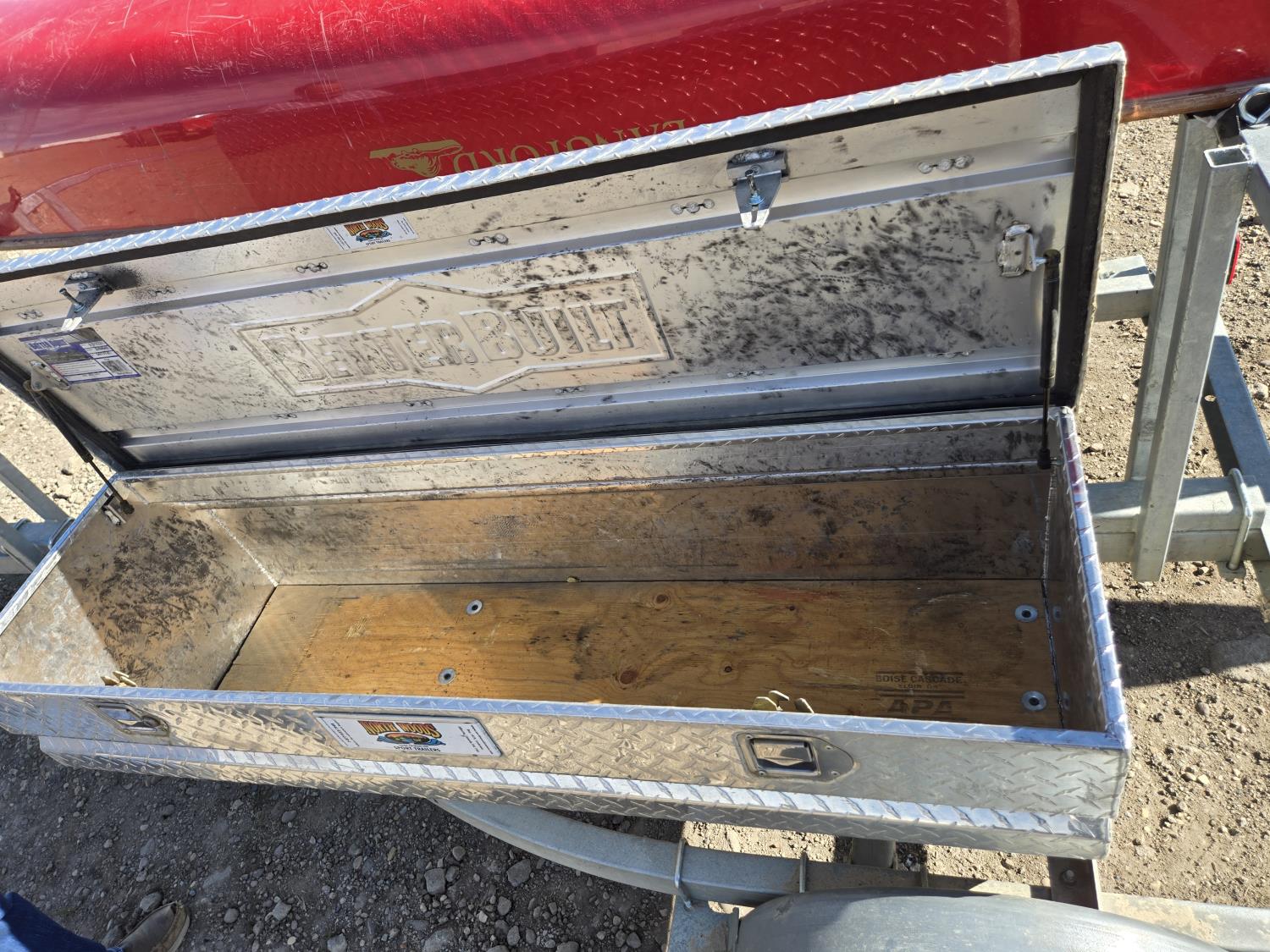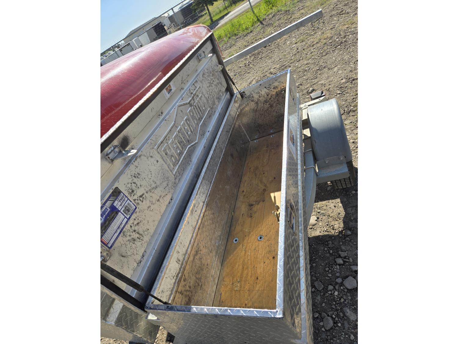 trailer has (2) aluminum checker plate toolboxes with locks, 60 inch long X 17 inch wide X 18 inch deep