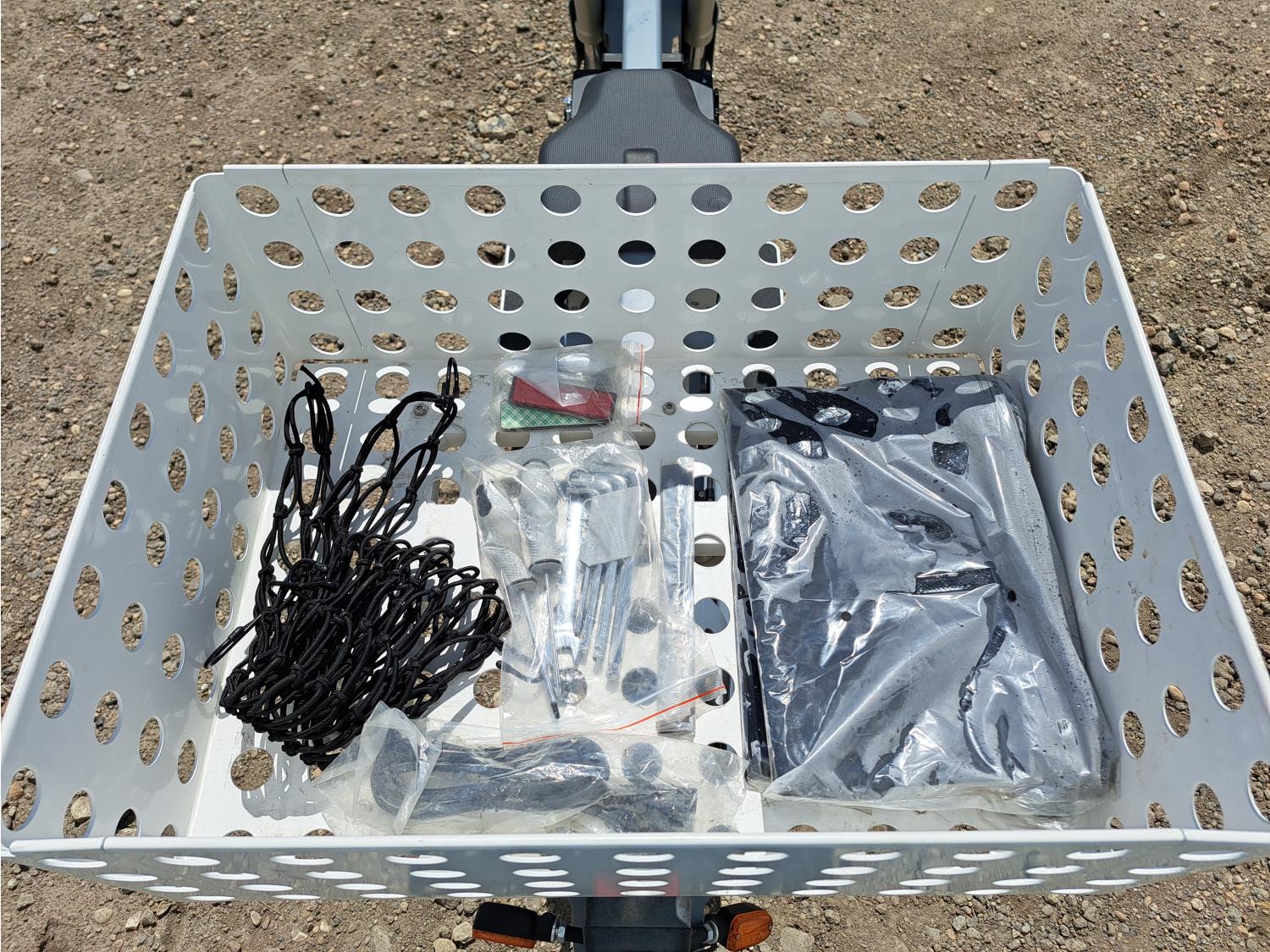 Dana CLASS H electric motor, 03XL battery 3.5 kWh, LED screen, disk brakes, chain drive, full suspension, headlights, tail light, turn signals, kickstand, front and rear basket, Kenda 100/90-14 off road tires,