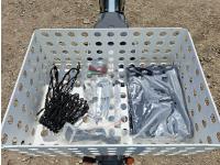 This unit has NO charging unit, has broken rear signal light, comes with keys, power cord for charger, dry bag, tool kit and cargo net