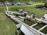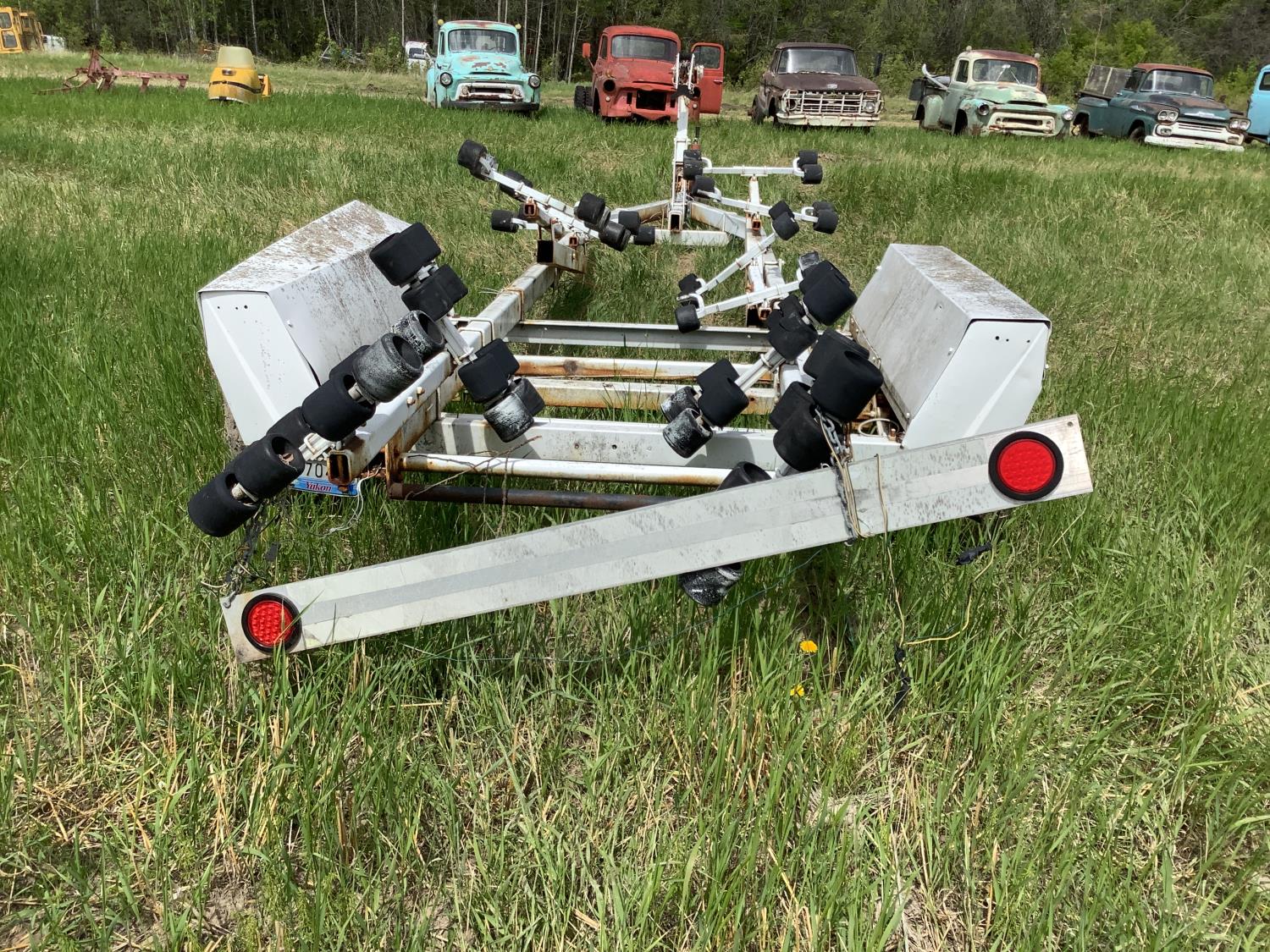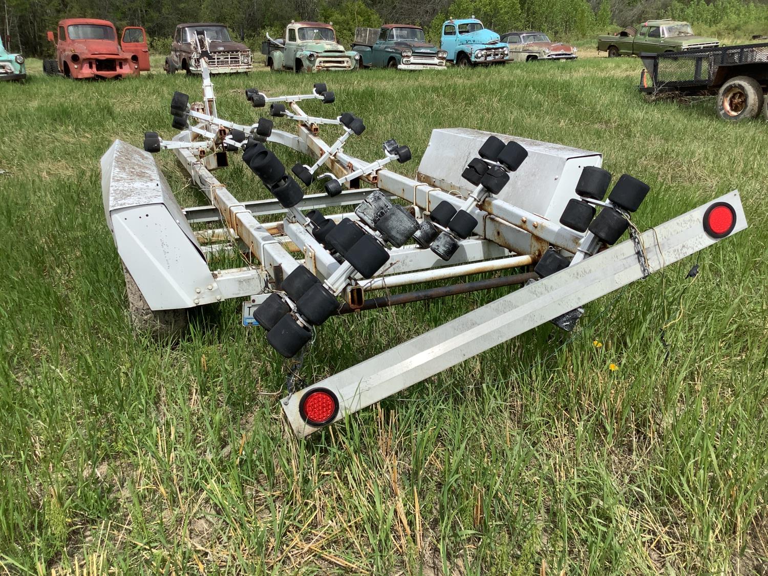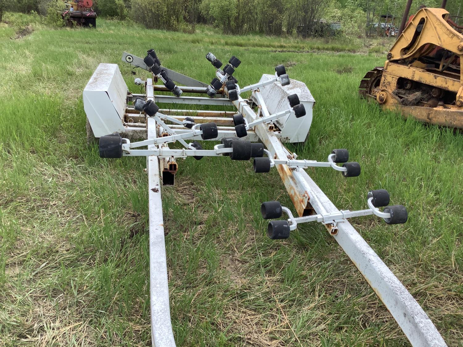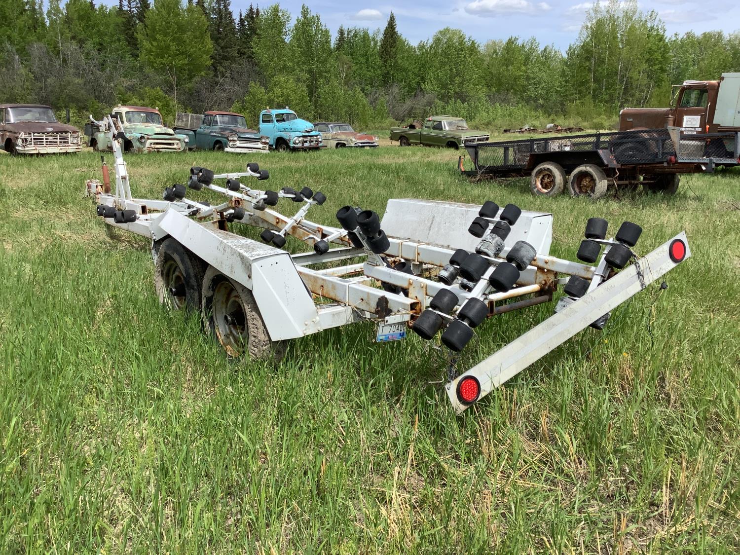 This trailer had a 32 FT boat on it. This is a big trailer tires will need attention before towing it away. Seller can load on trailer for buyer. No Vin Plate or SR# visible. Last registered in the Yukon.