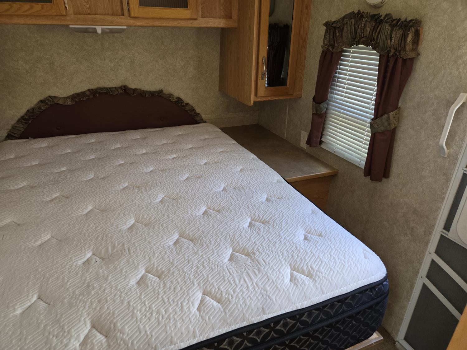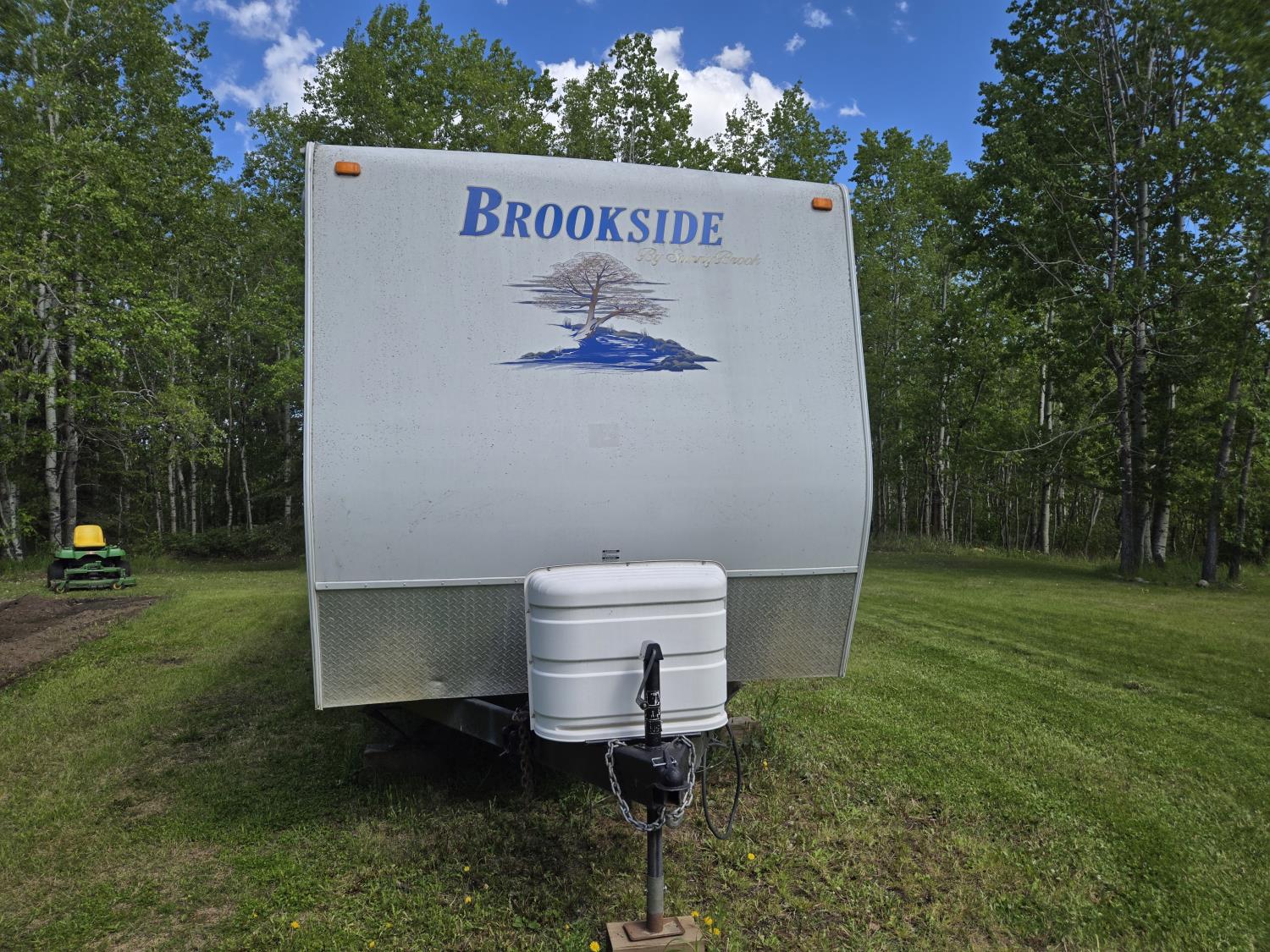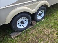 This trailer is very light for its size because of the aluminum frame, Recent new master bedroom mattress, new battery, new awning (just installed), new AC and new tires and rims. Trailer is in overall good condition with the only exception is the lino is starting to crack.