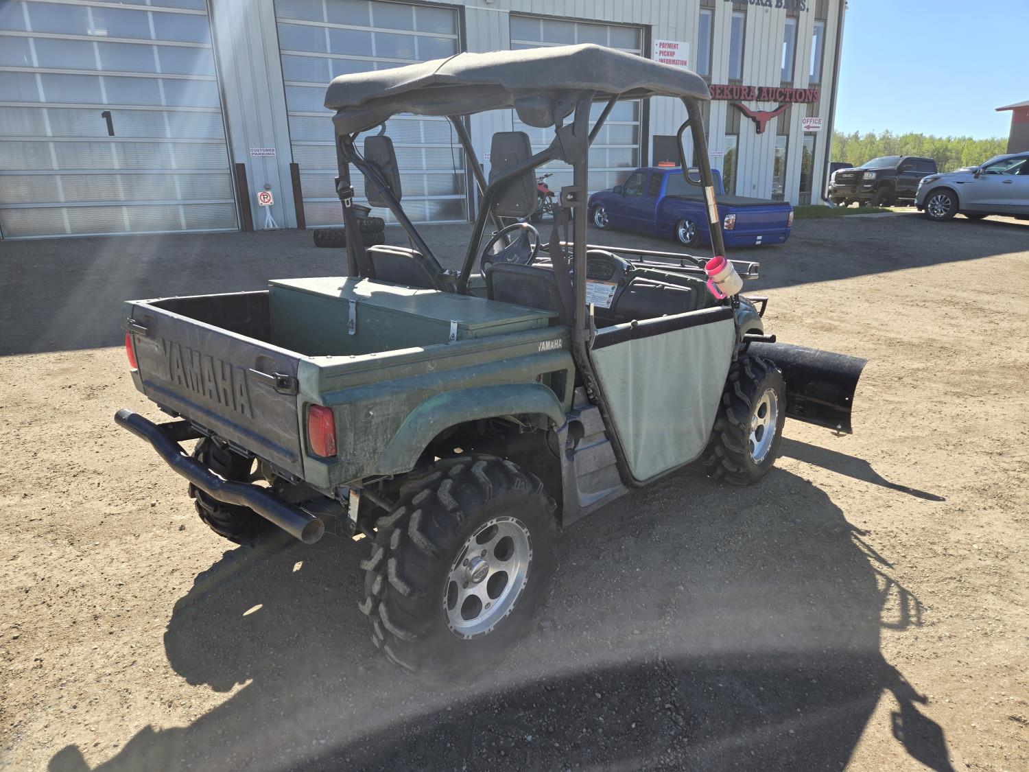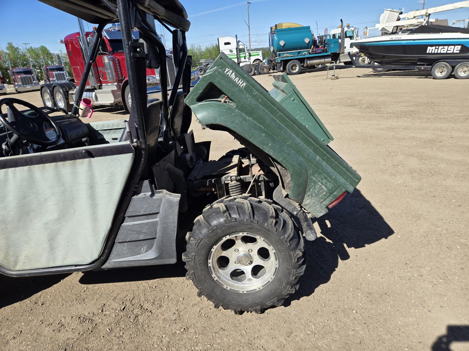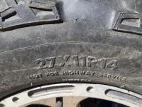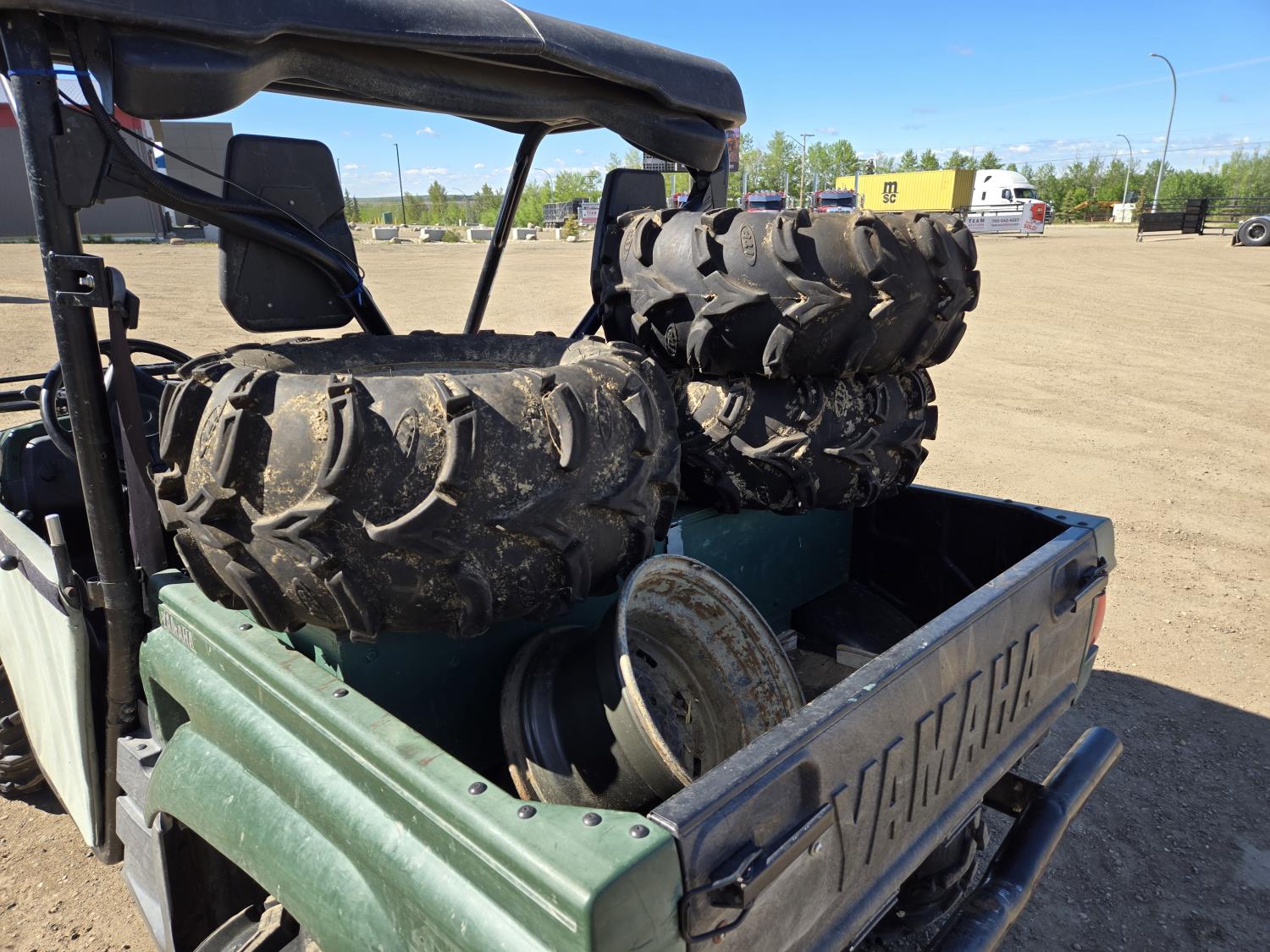 660 cc engine, CVT transmission, Hi/Lo range, electric shift, reverse, 72 inch front blade, receiver hitch, manual dump box, front winch, independent suspension, comes with (2) 26X10.0-12 on rims, (1) 26X12-12 on rim (1) extra 12" rim, 27X9R14 front tires, 27X11R14 rear tires