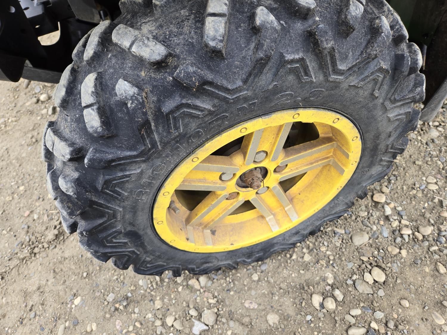 engine, CVT transmission, Hi/Lo range, reverse, power steering, manual dump box, 3 Cylinder water cooled gas engine, 27X9R14 front tires, 27X11R14 rear tires