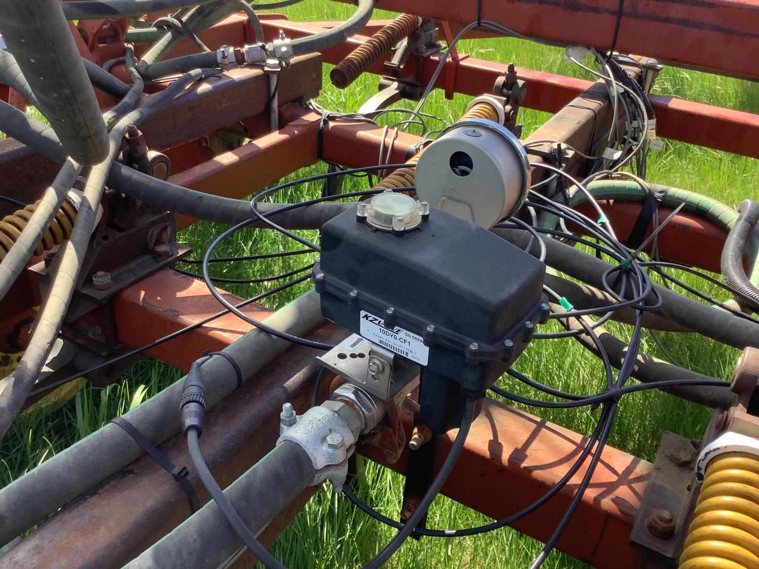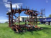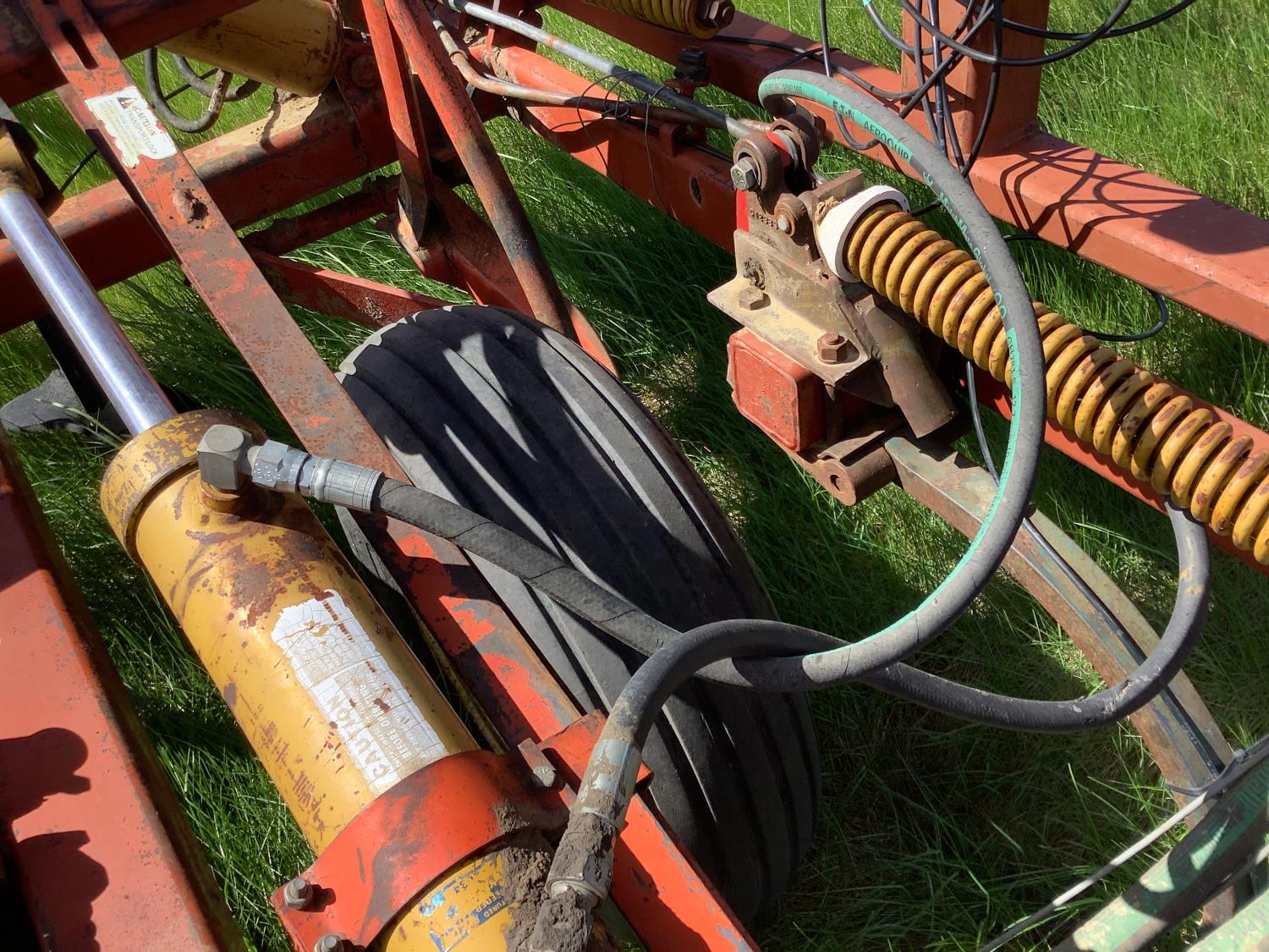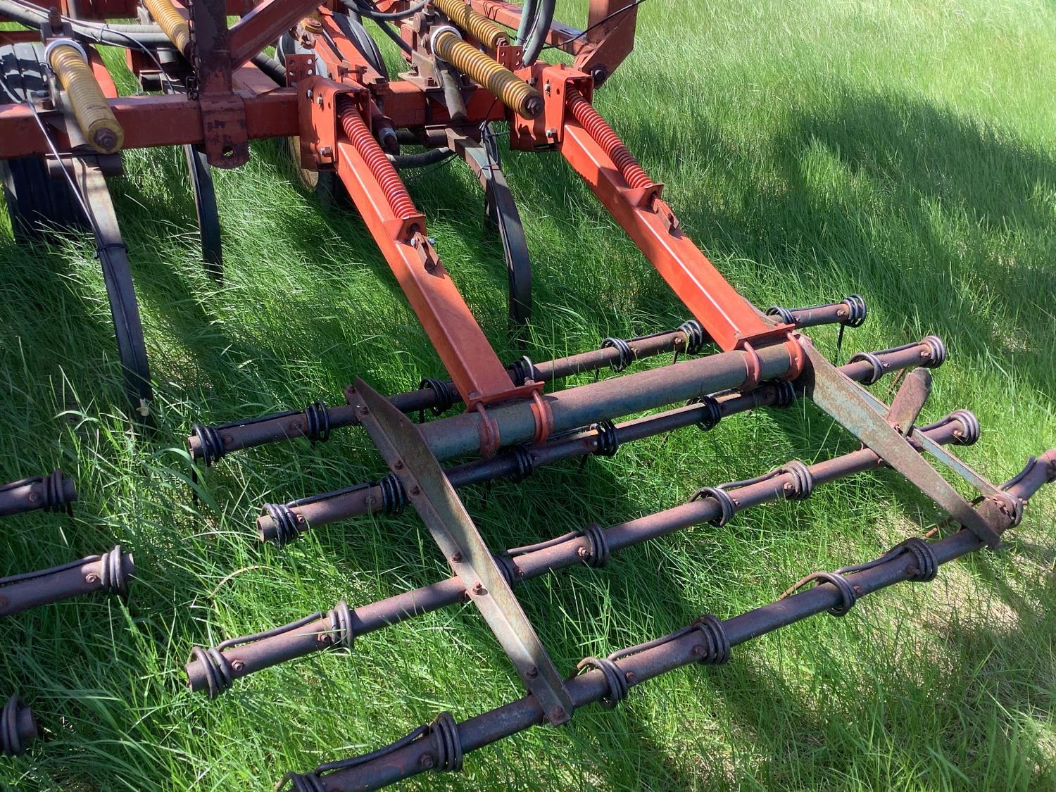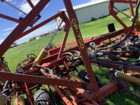 12 inch spacing, spring tooth harrows, dual arm 6 ft sections, Max Flow anhydrous ammonia applicator, rear tyow hitch