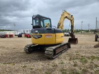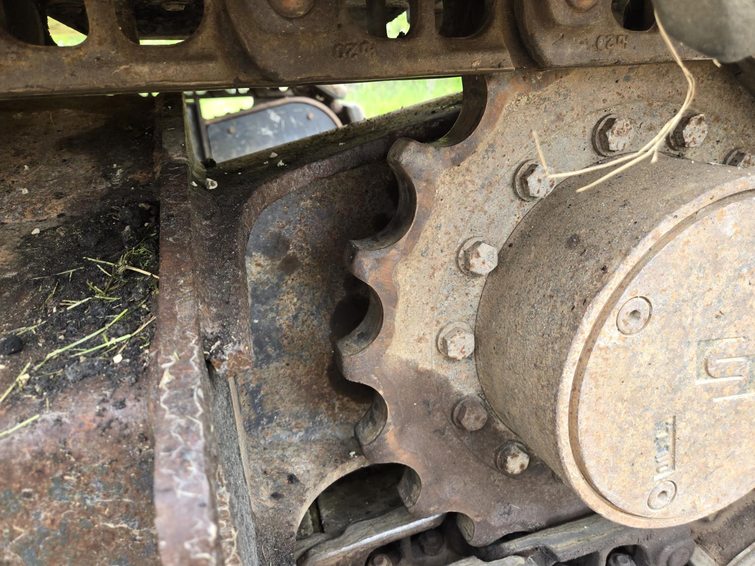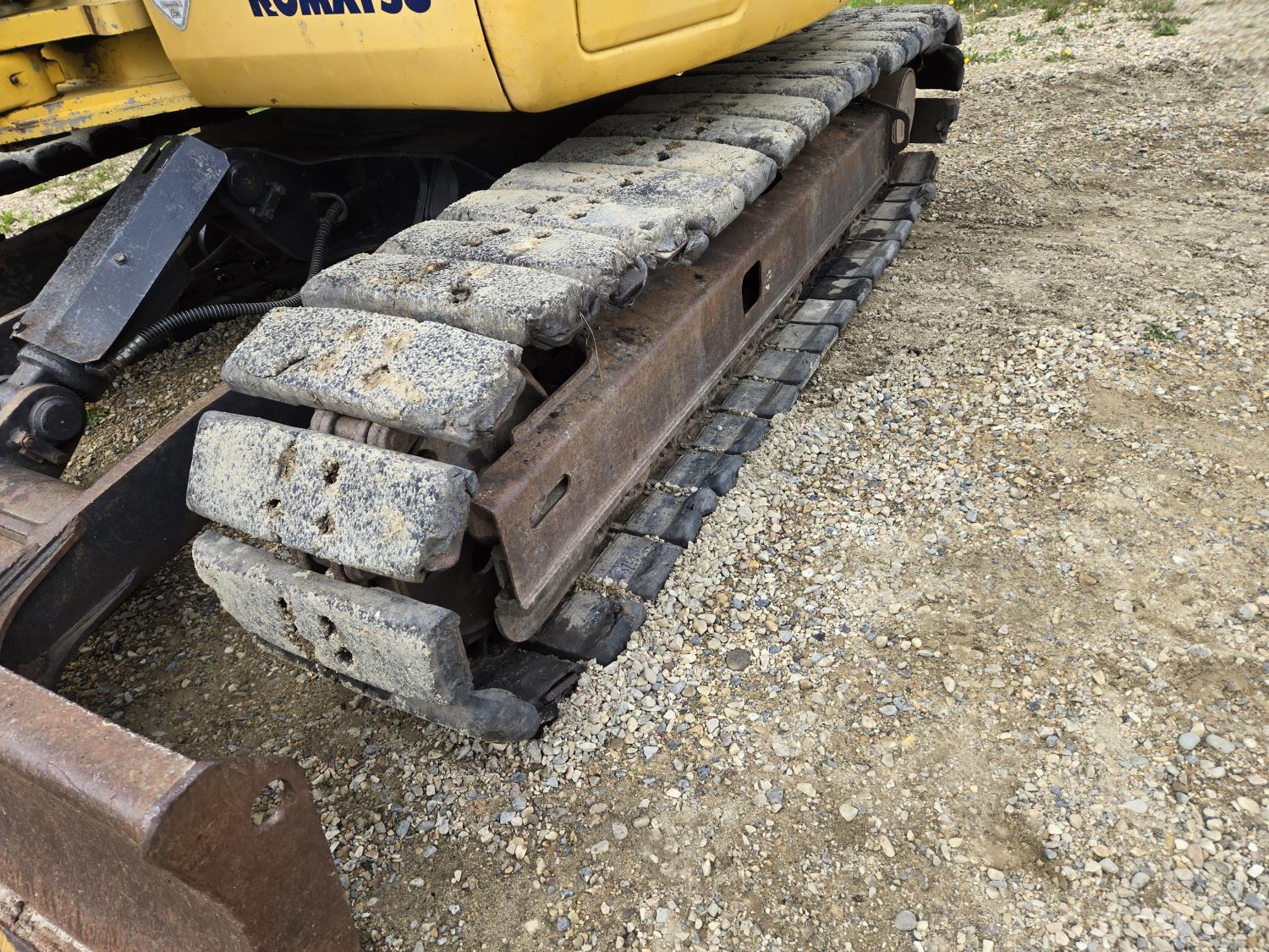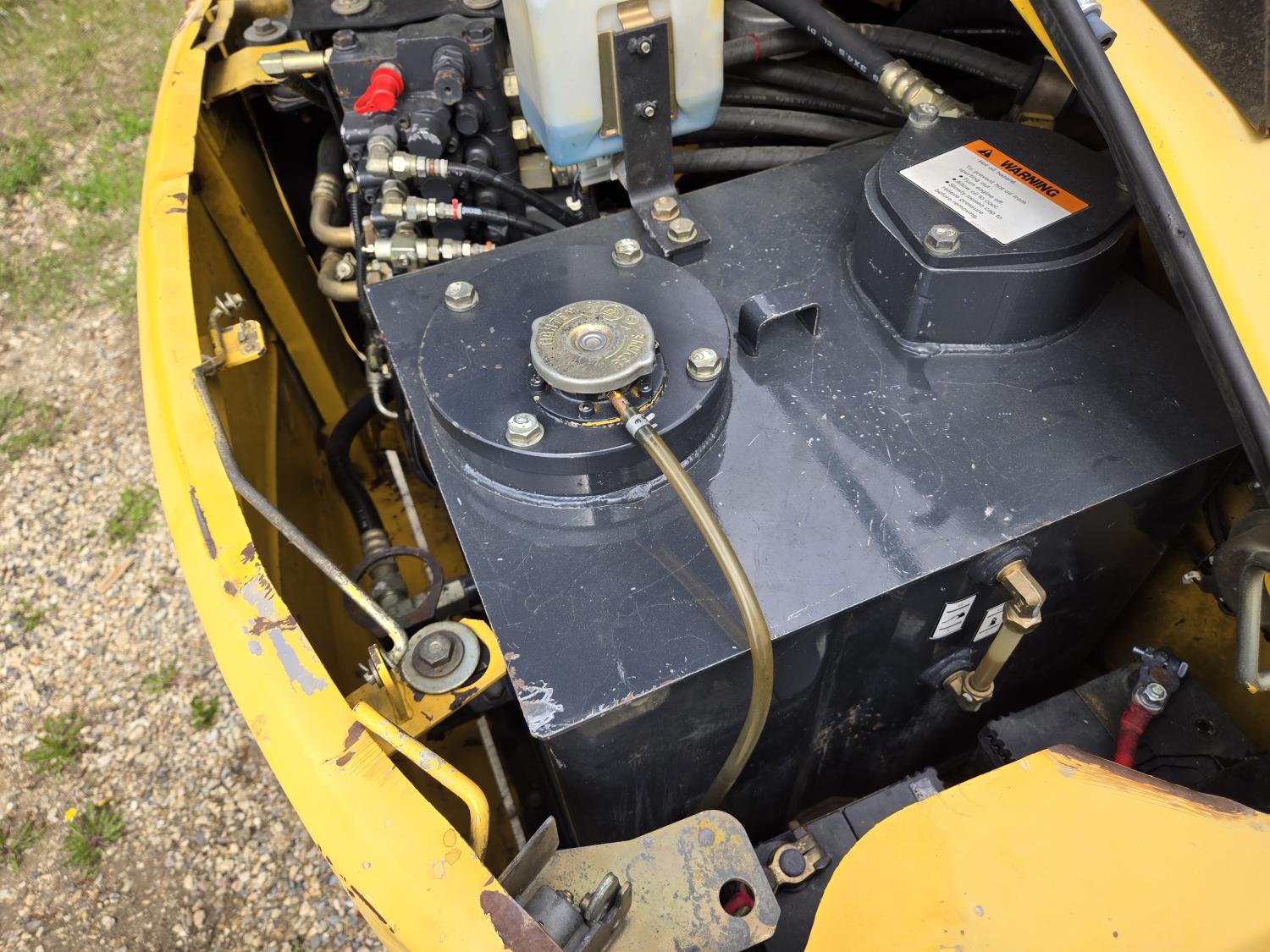 Enclosed cab, A/C, 42 inch cleanup bucket, manual coupler, hydraulic thumb, 1 auxiliary hydraulics, 89 inch stick, backfill blade, 18 inch track pads