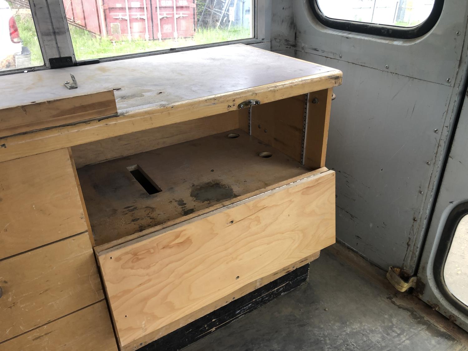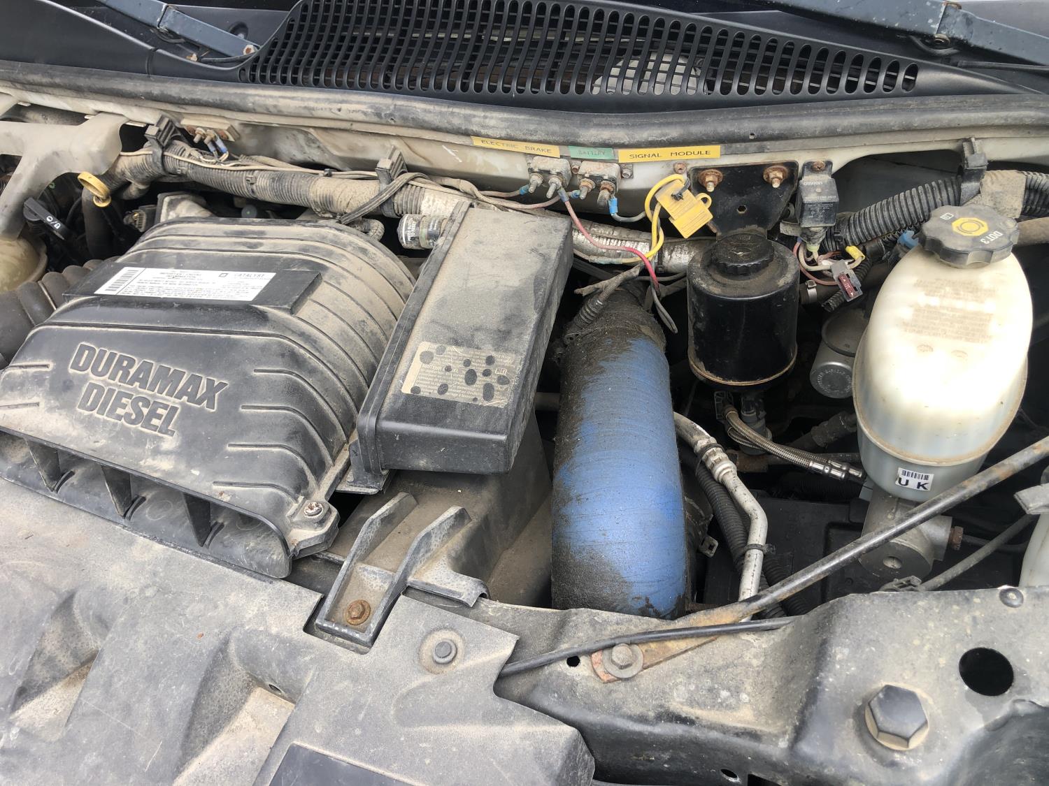 6.6L Duramax diesel, automatic transmission, mid camper conversion, has cabinets, rear duals 225/75R16 tires