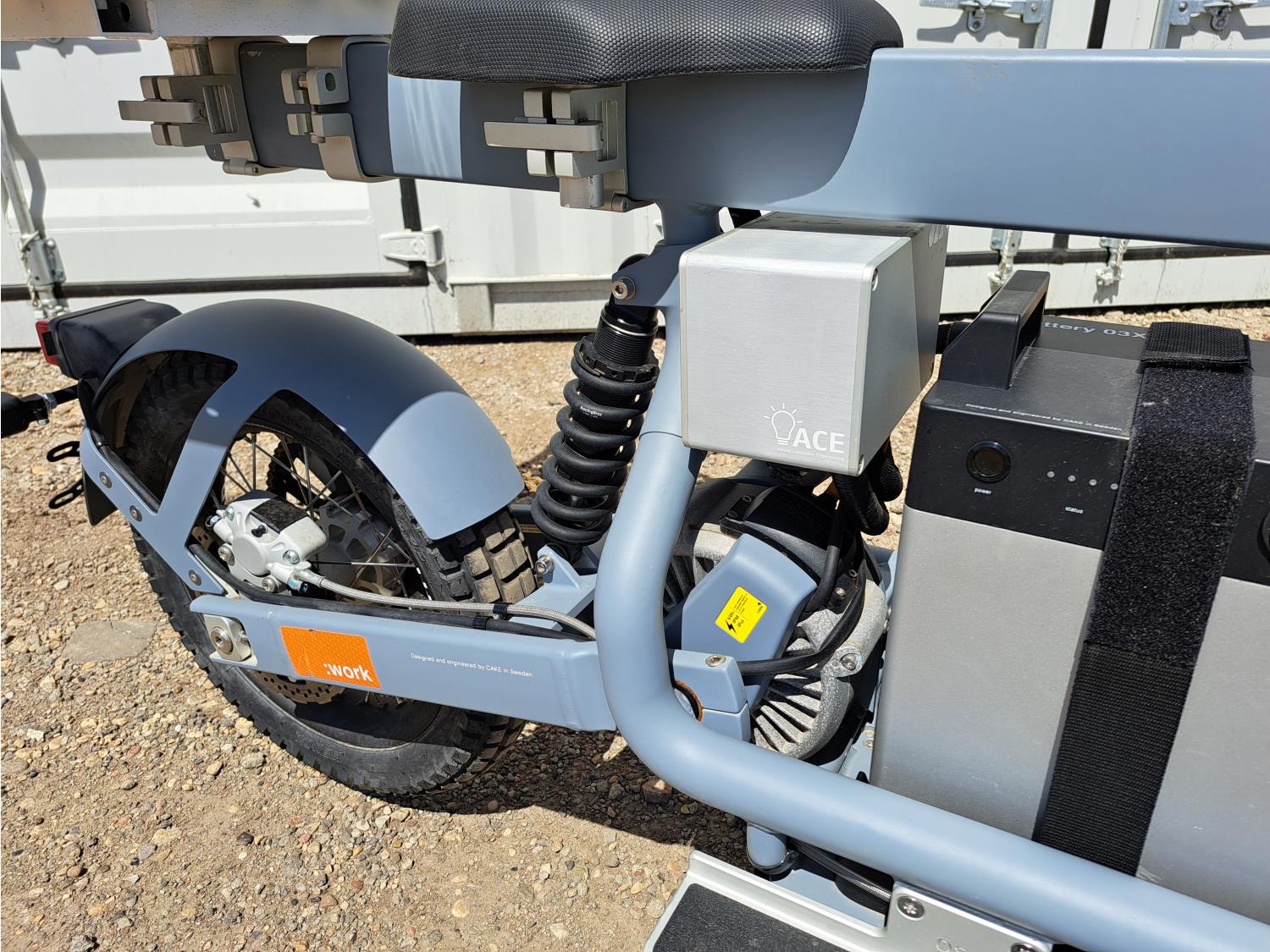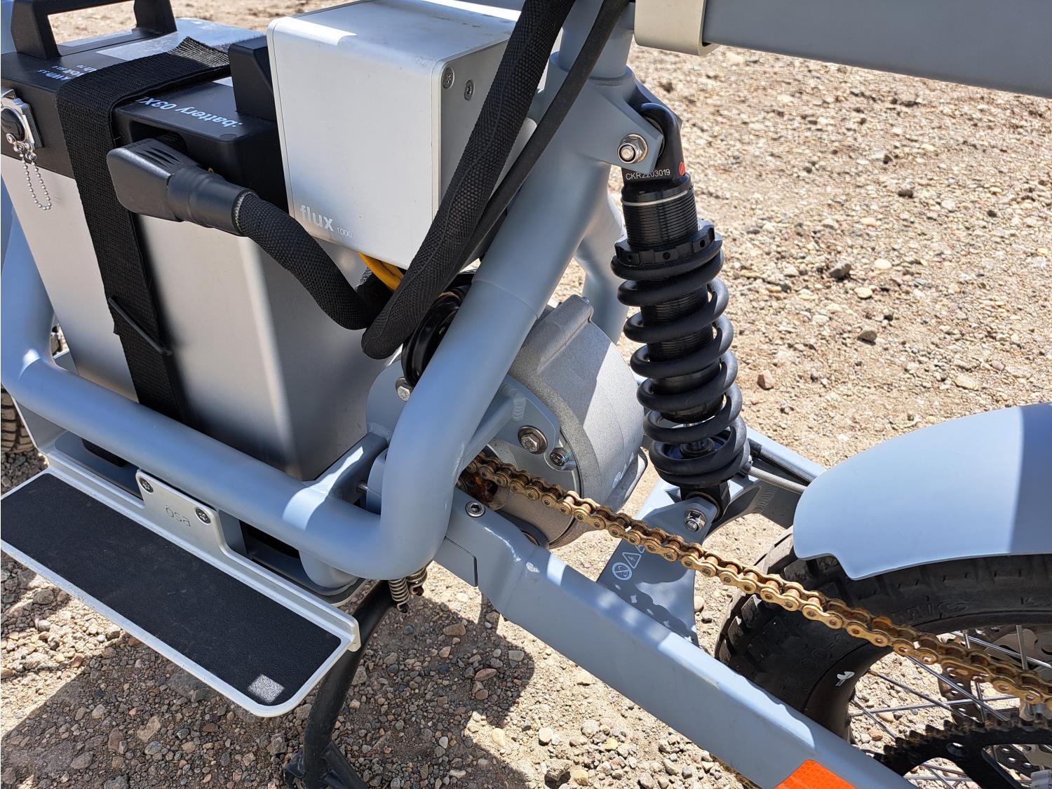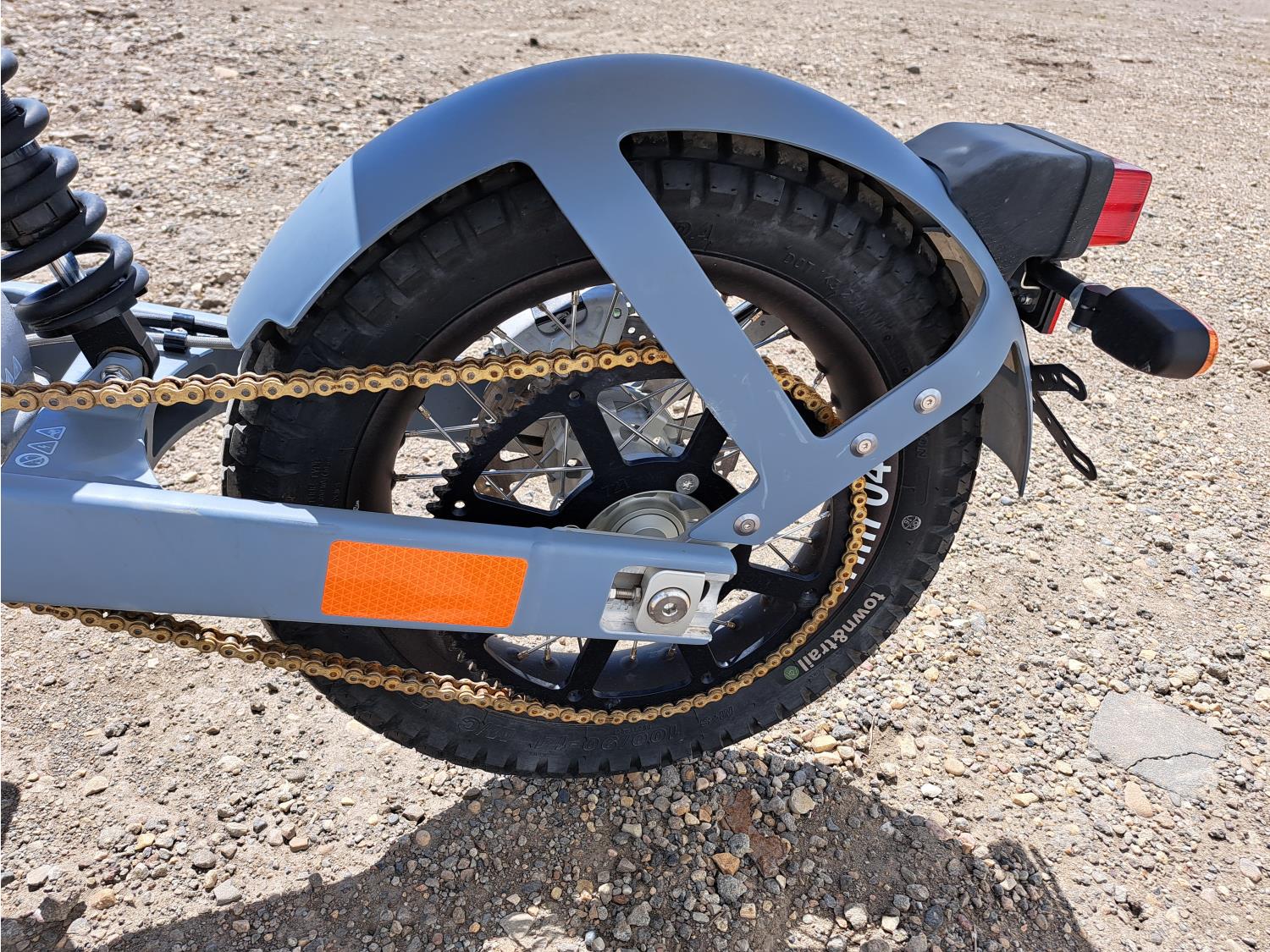 Dana CLASS H electric motor, 03XL battery 3.5 kWh, LED screen, disk brakes, chain drive, full suspension, headlights, tail light, turn signals, kickstand, front and rear basket, Kenda 100/90-14 off road tires,