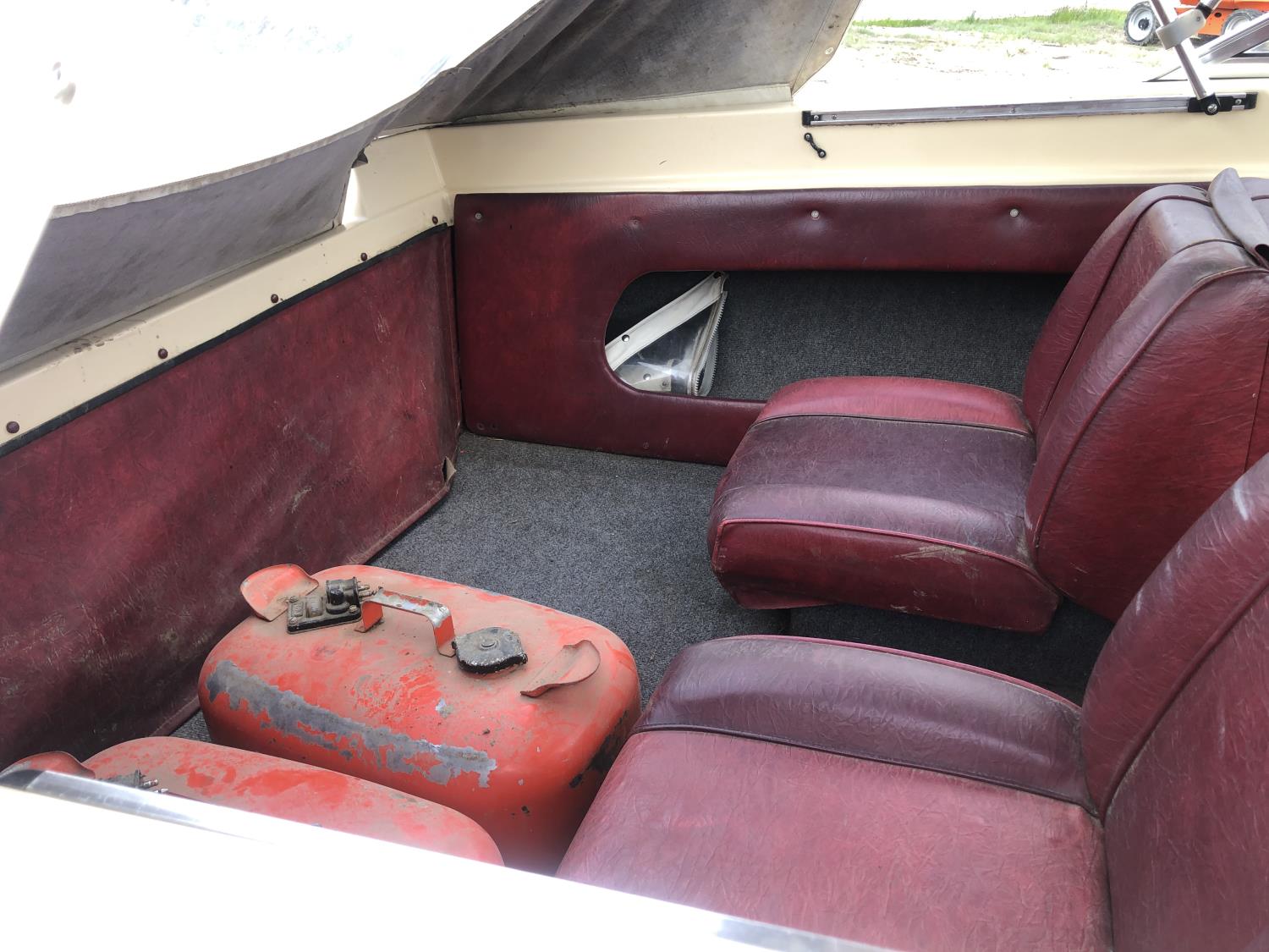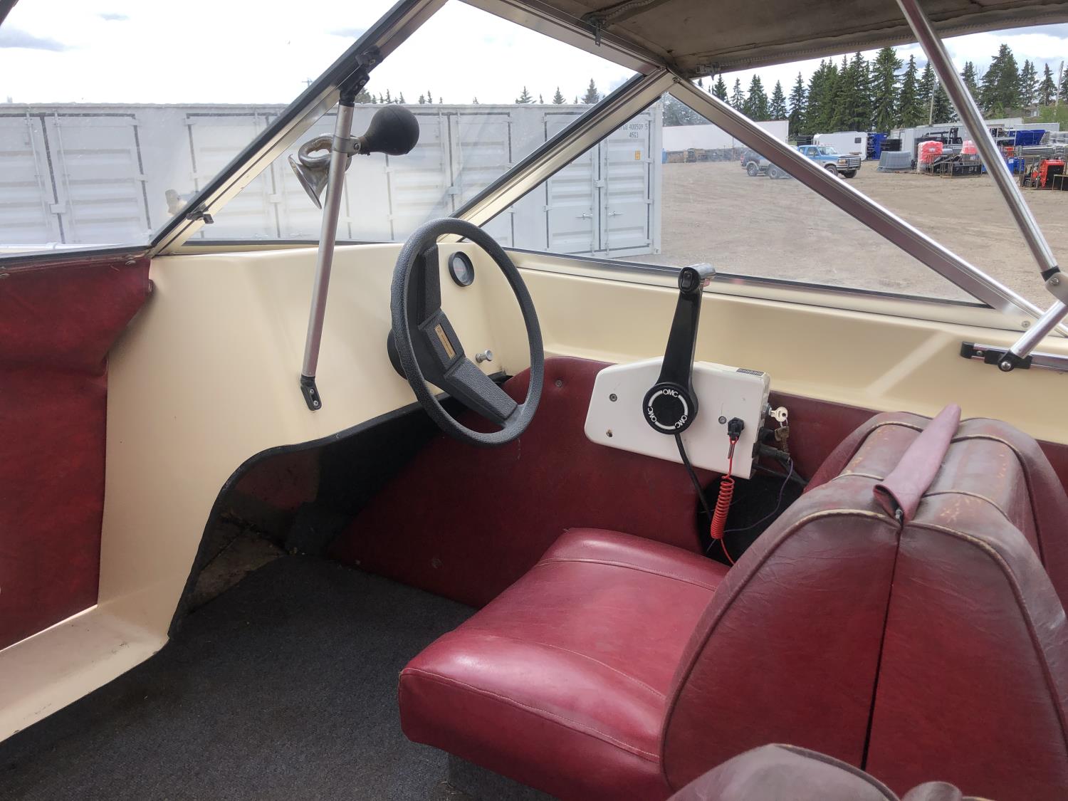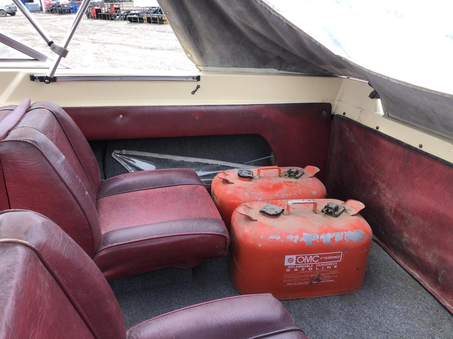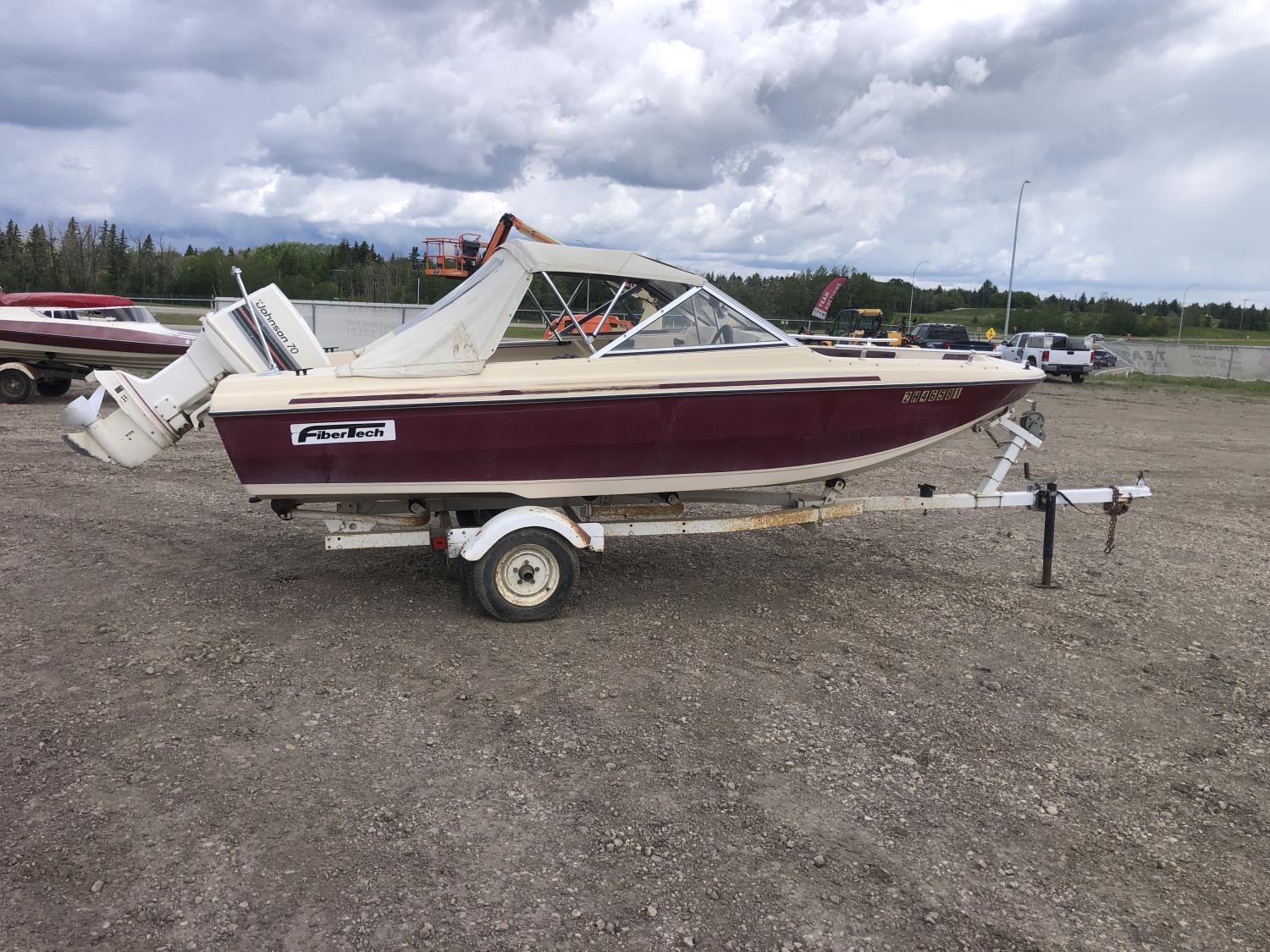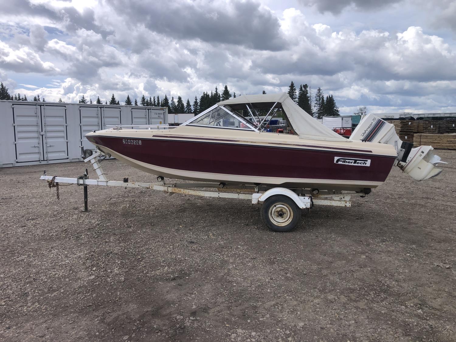 open bow, double hull, soft cover, (2) fuel tanks, 70 Johnson outboard engine, 5.30-12 tires