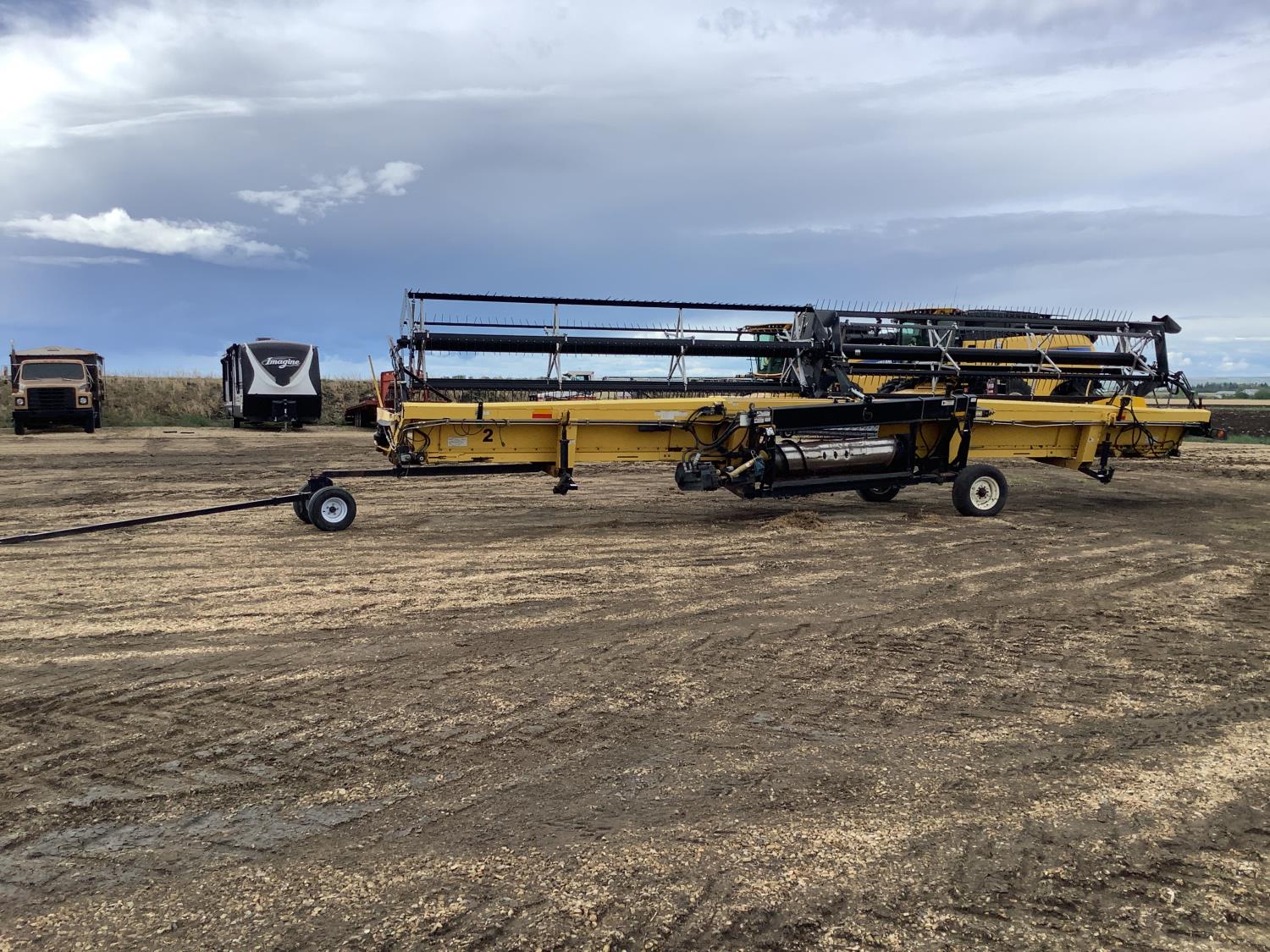 Was on the new Holland 8080 combine, good knife and canvases, custom built long tow hitch for behind the combine.