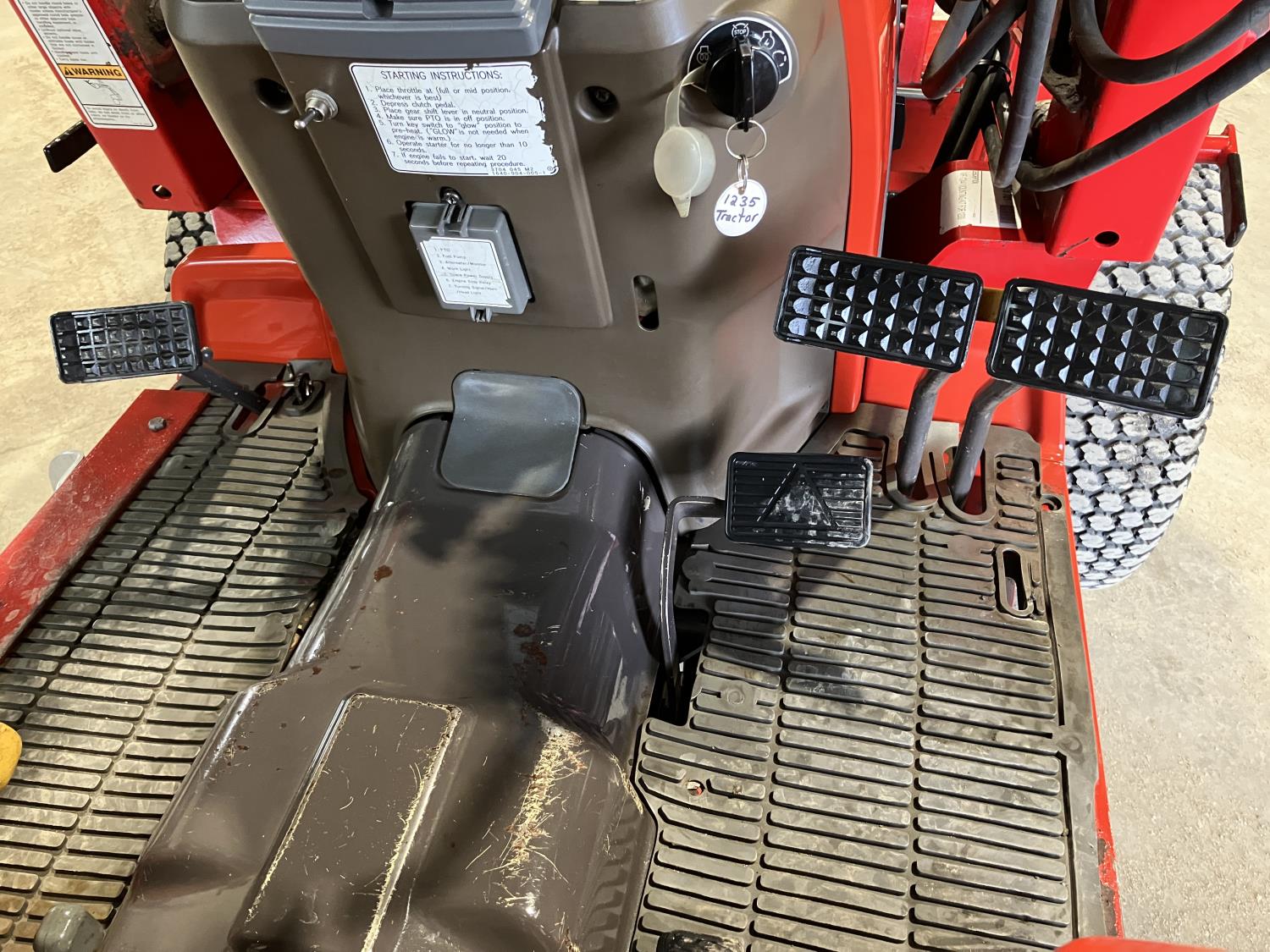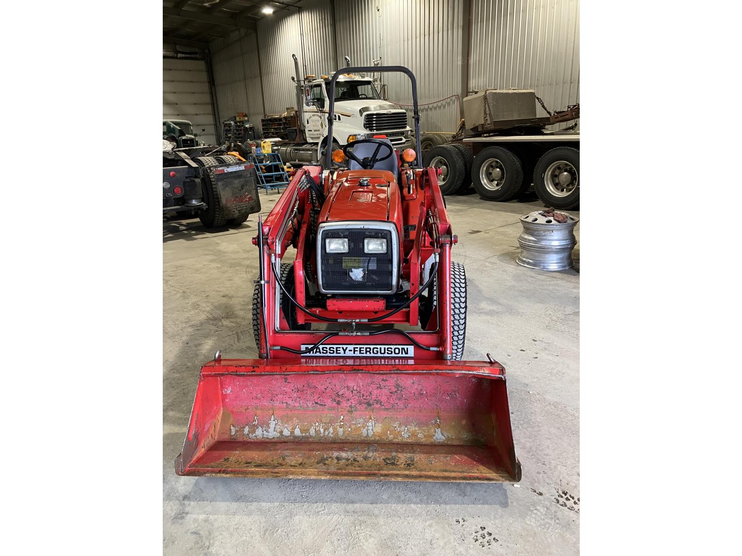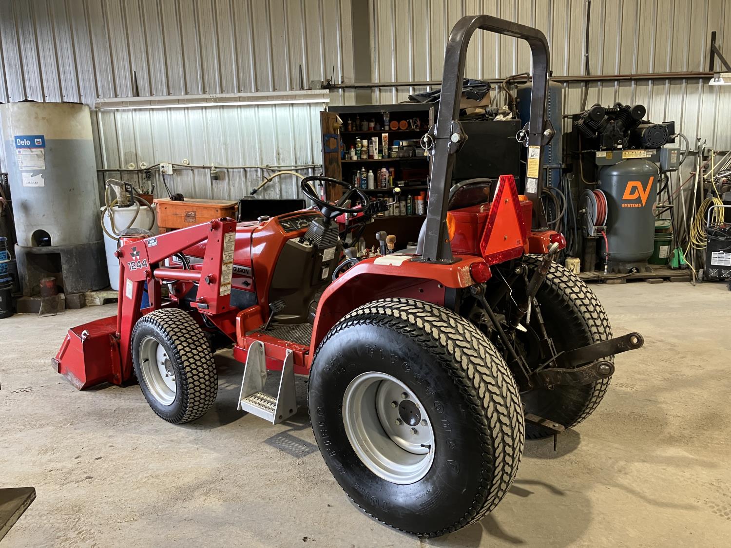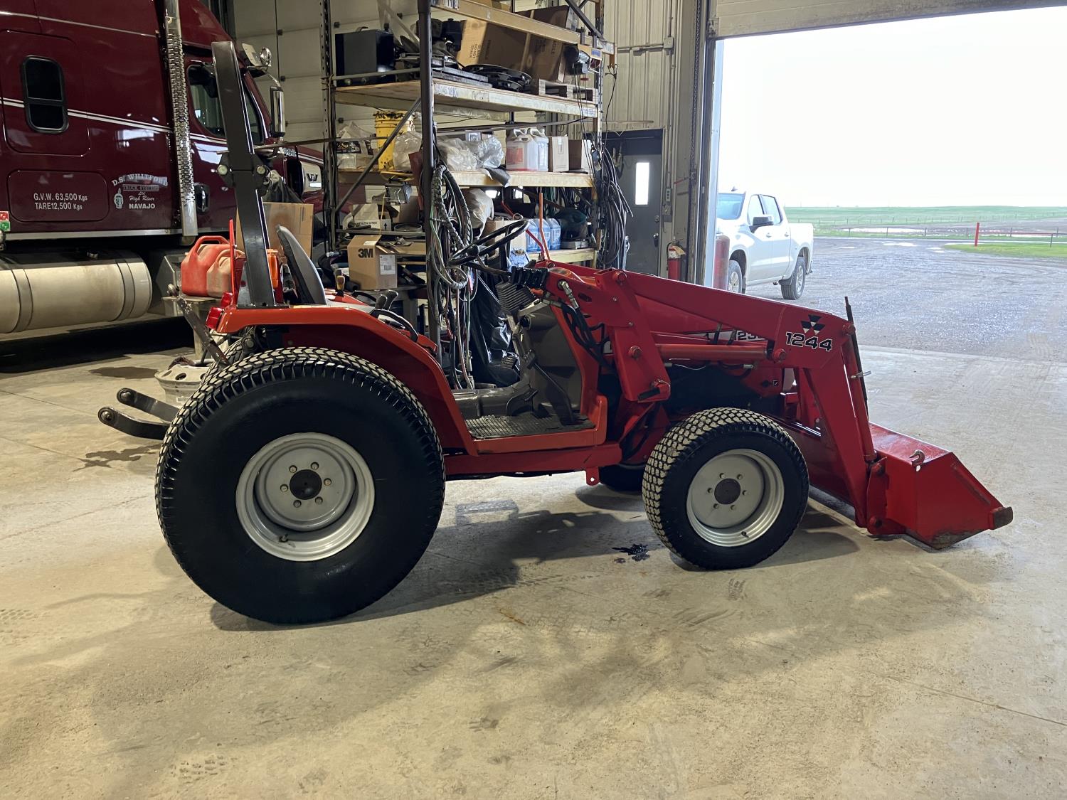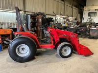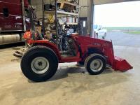 Massey Ferguson 1244 loader, 54 inch bucket, Iseki 1.5 L 3 cylinder 32 HP, diesel engine, 25.5 PTO HP, hydro 3 range transmission, open station platform, new seat cover, 540 PTO, 3 point hitch, 27X8.50-15 front tires, 13.6-16 rear tires