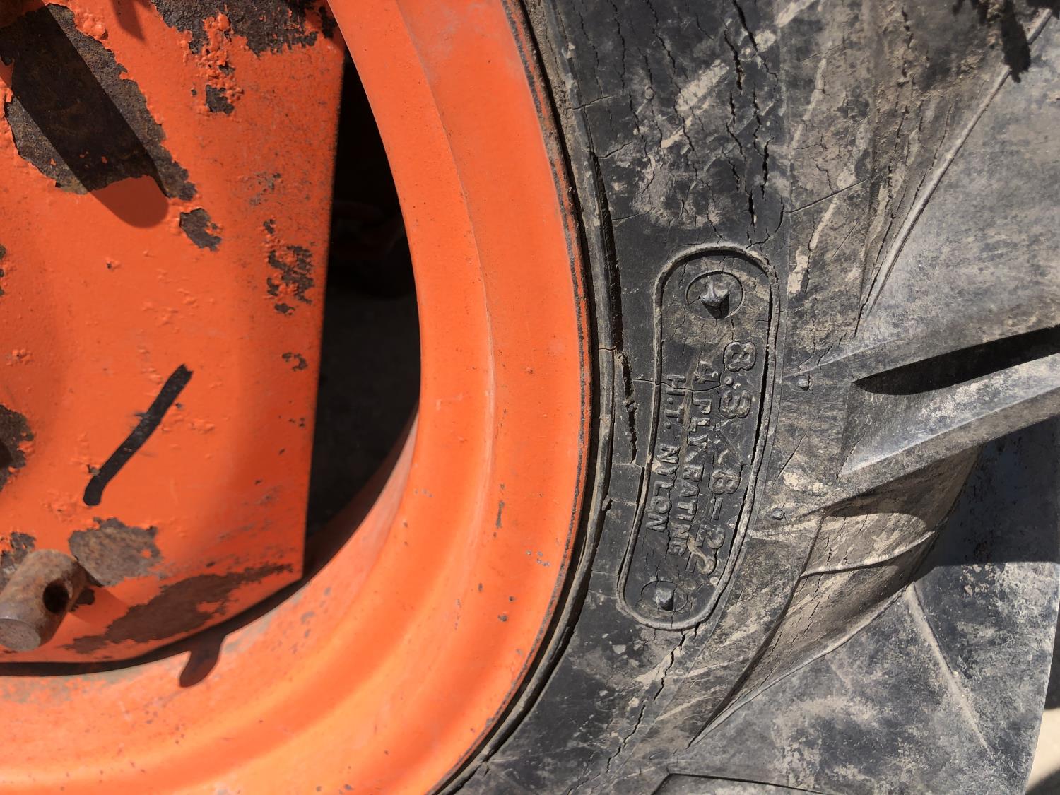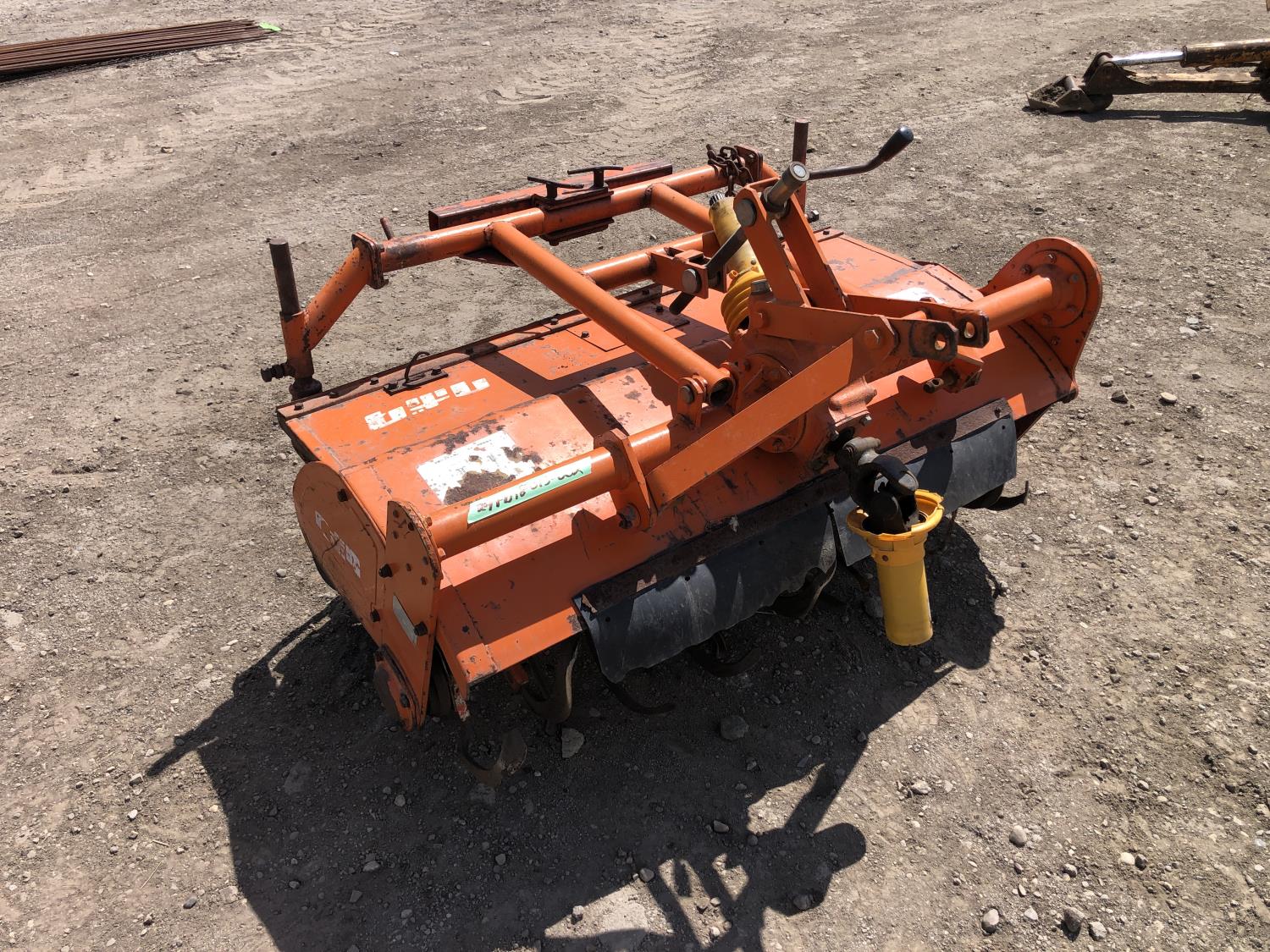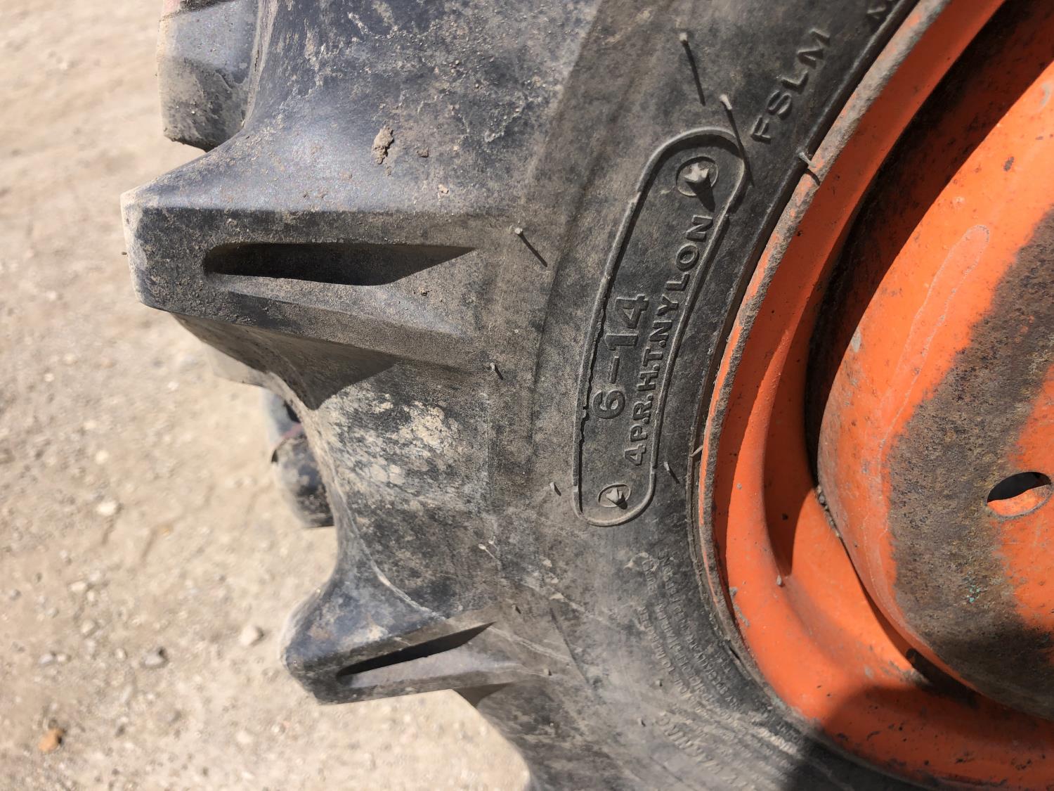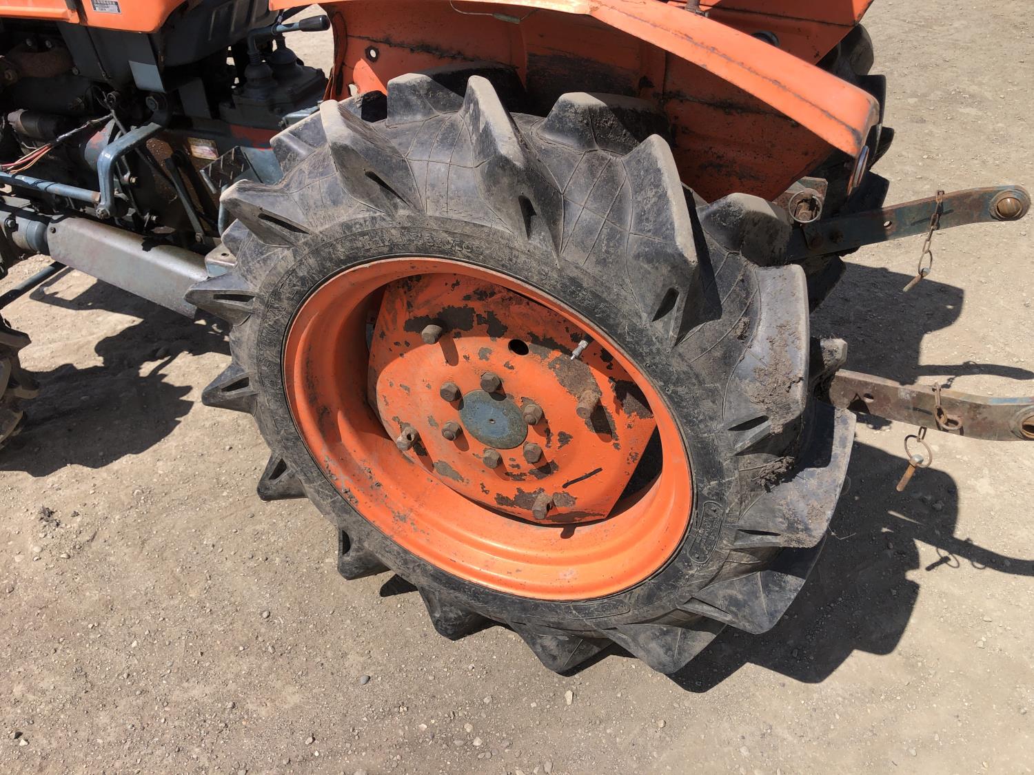 2 cylinder diesel engine, 6 speed manual transmission, 540 PTO, 3 point hitch, 6-14 front tires, 8-24 rear tires, 48" 3 Pt hitch rototiller with depth gauge wheels