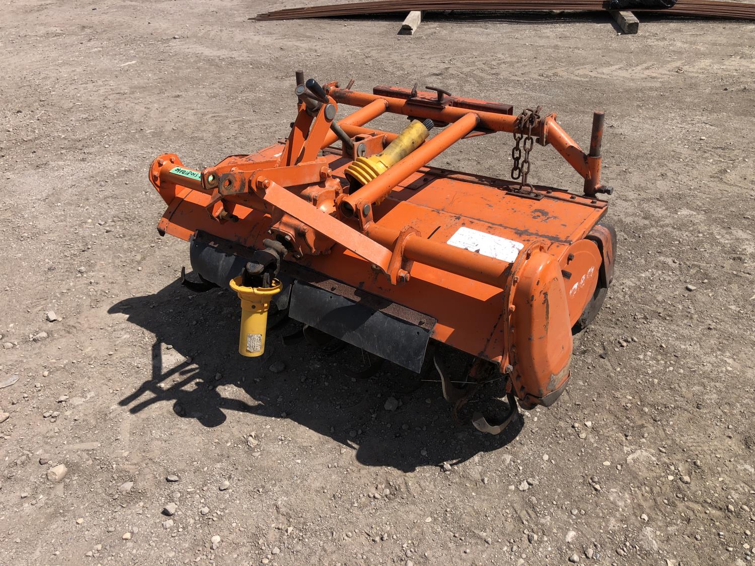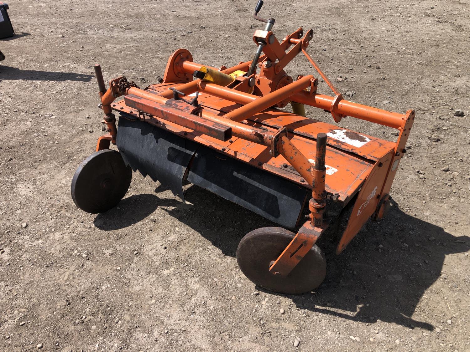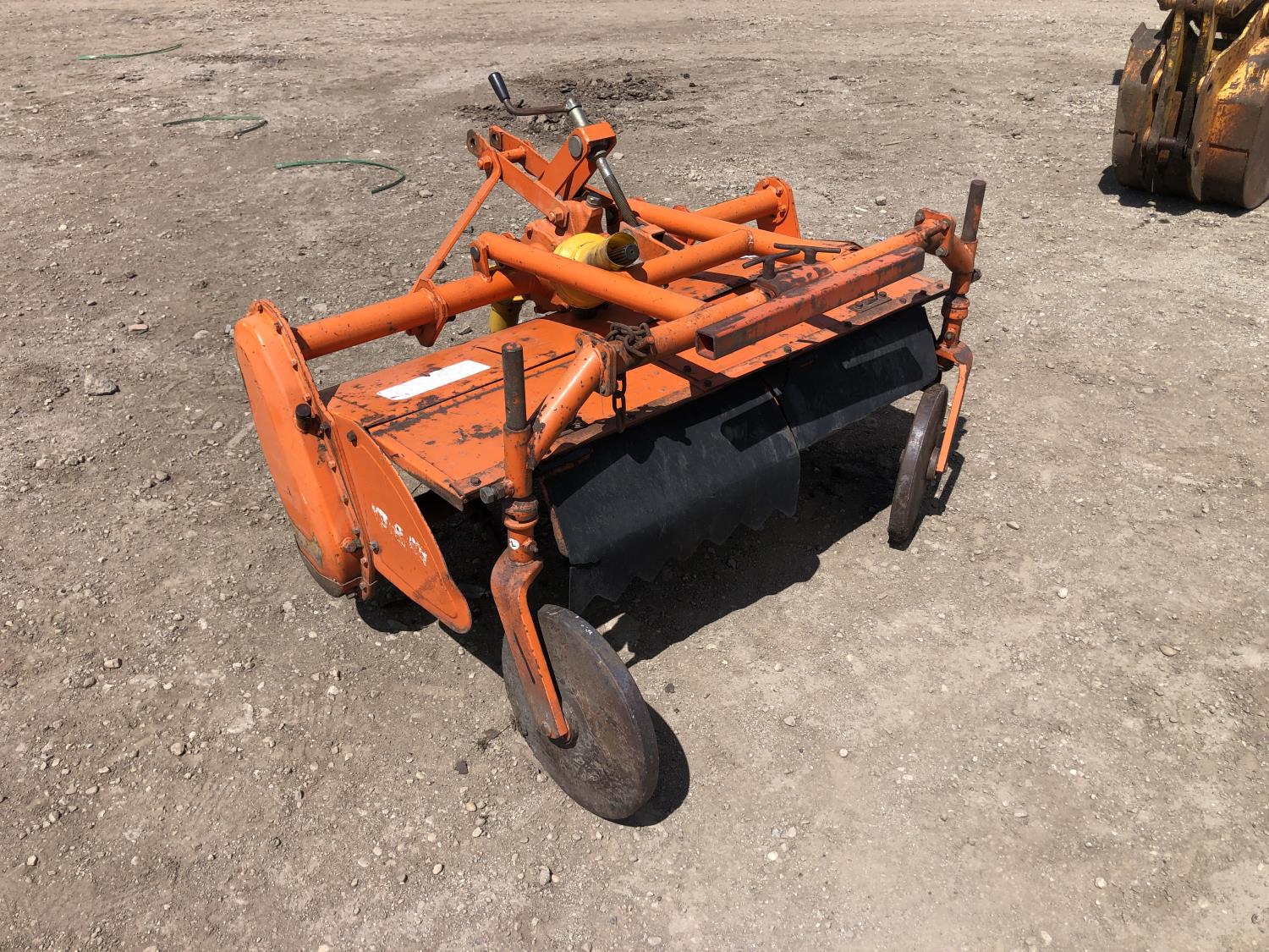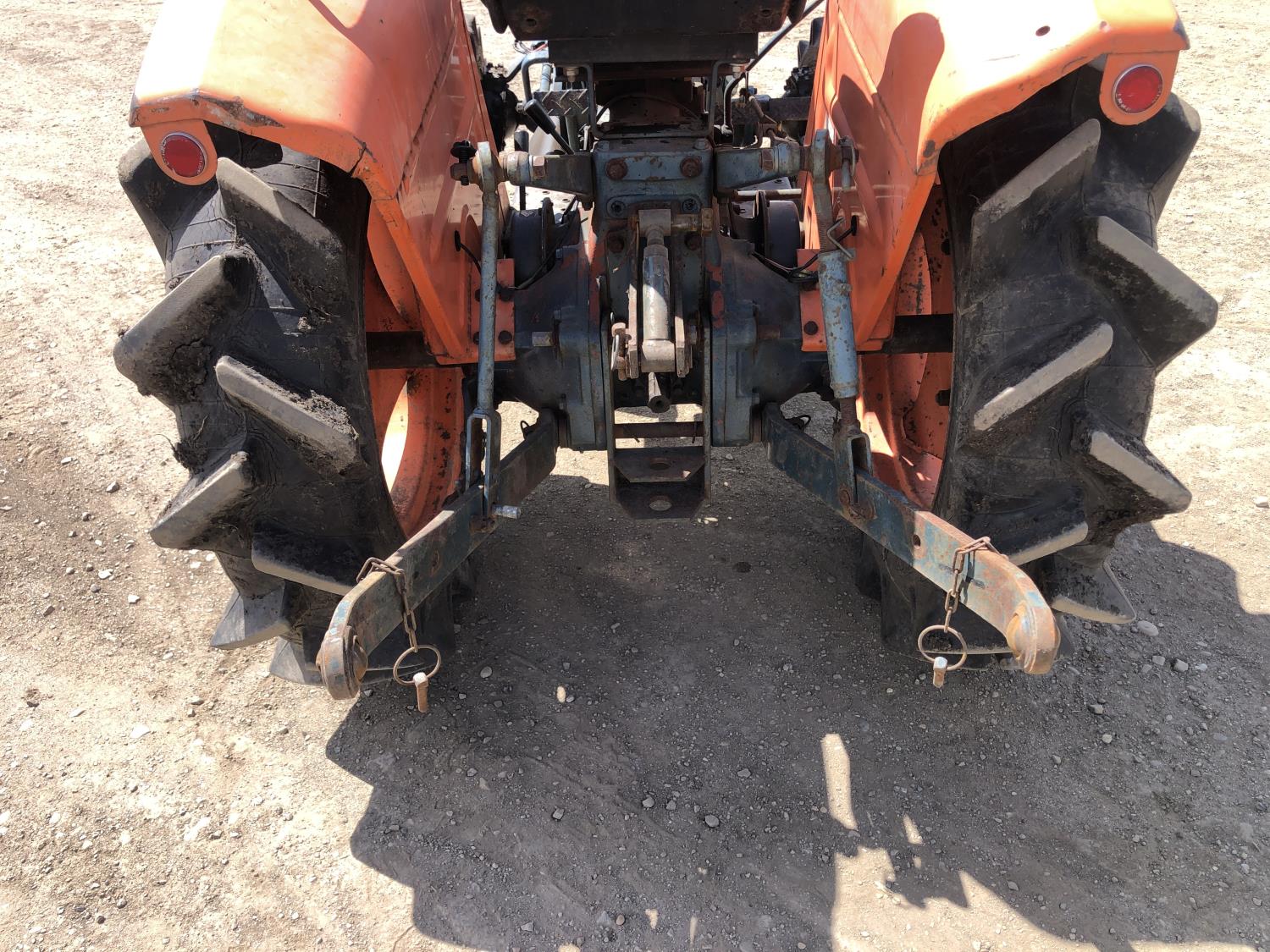 2 cylinder diesel engine, 6 speed manual transmission, 540 PTO, 3 point hitch, 6-14 front tires, 8-24 rear tires, 48" 3 Pt hitch rototiller with depth gauge wheels