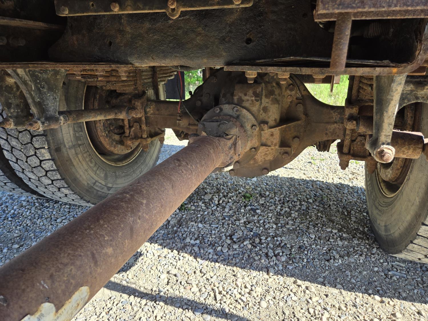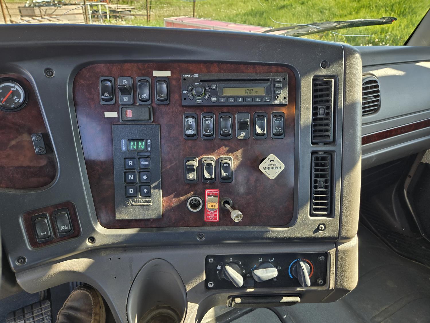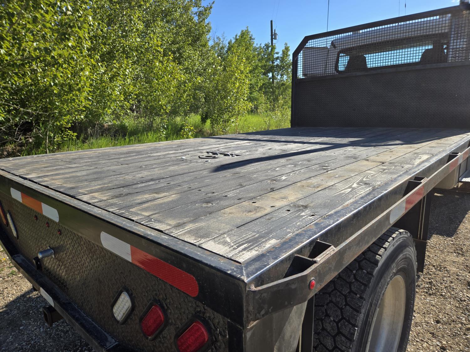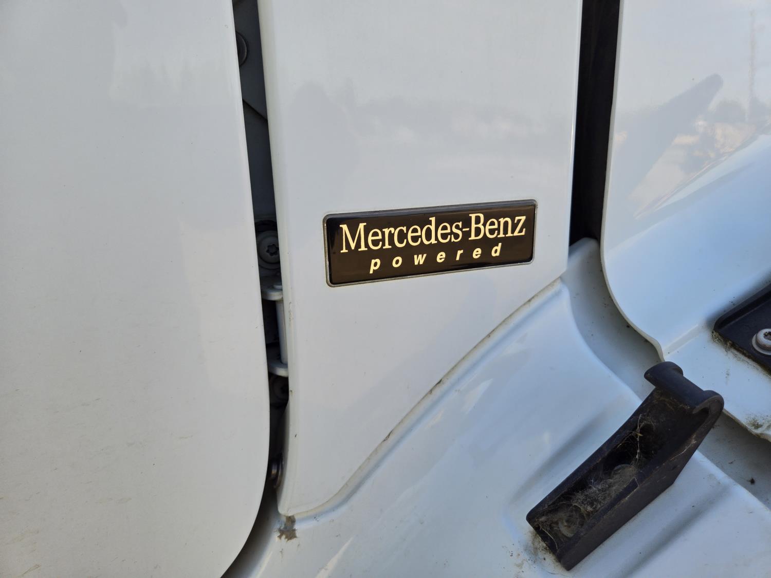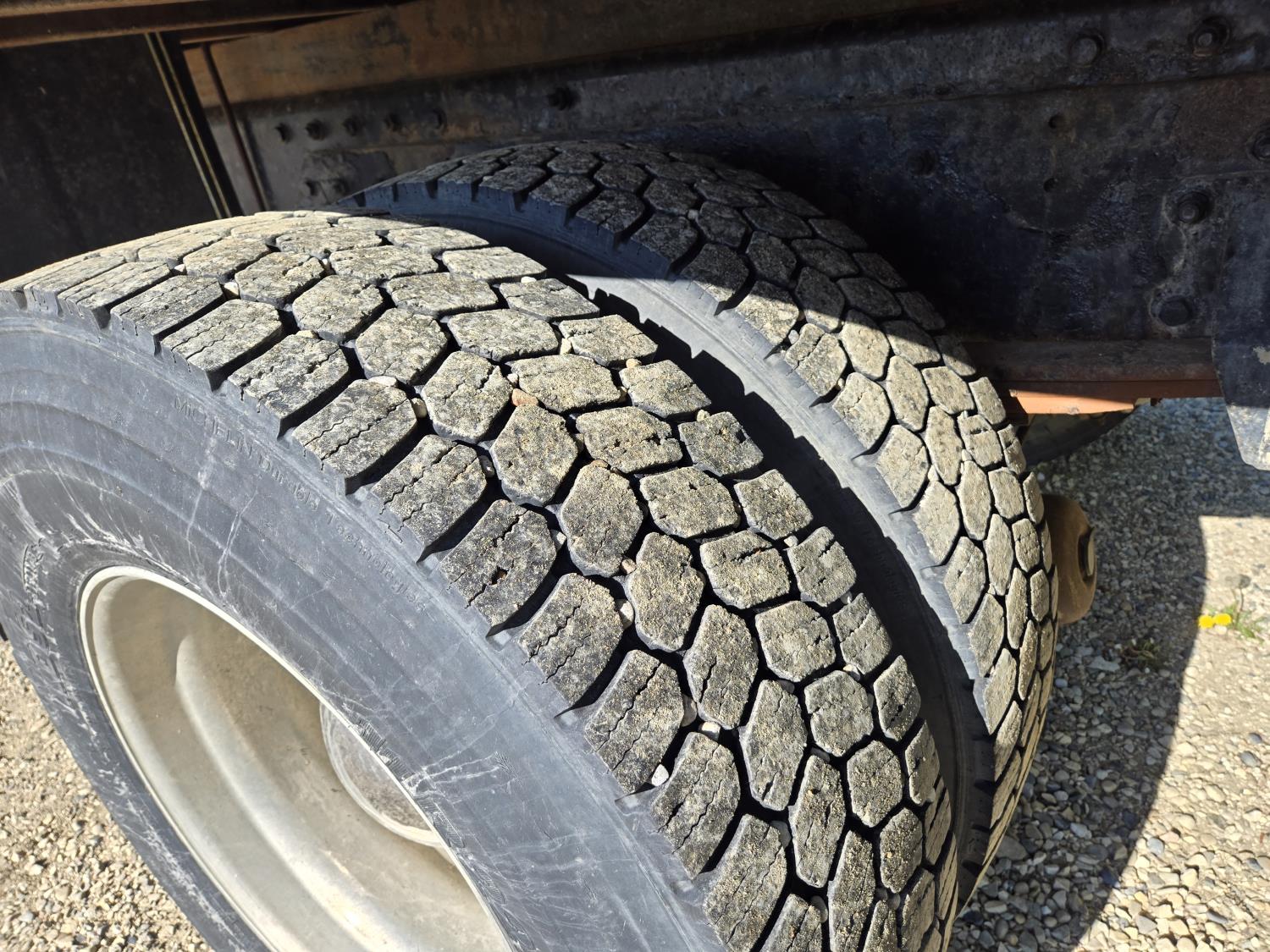 Mercedes 6 cylinder diesel engine, Allison automatic transmission, 4X4, PTO, A/C, radio, P/M, P/W, 13'8" deck, 102" wide, stake pockets, rub rail, spring suspension, 12,000 lb front axle, 21,000 lb rear axles, diff lock, 208 inch WB, all aluminum wheels, 11R22.5 tires