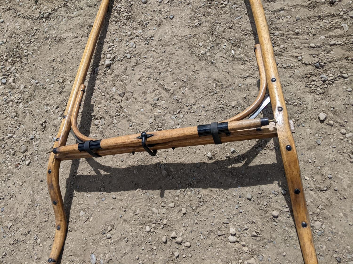 Poles and seats are interchangeable between this buggy and sleigh in this sale. These units were built in Oregon.