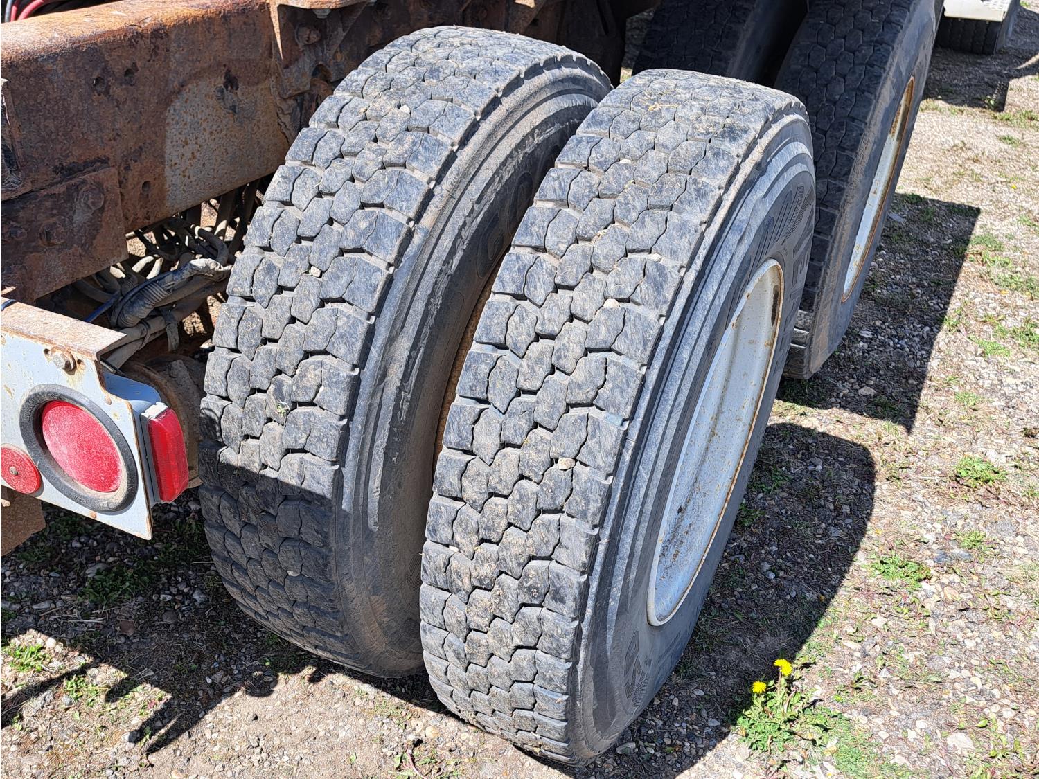 Caterpillar C15 TWIN TURBO 15 6 cylinder diesel engine, engine brake, Eaton Fuller 18 speed manual transmission, A/C, cruise control, air ride driver seat, radio, hydraulic wet kit, beacons, air ride cab, 20,000 lb front axle, 46,000 lb rear axles, diff lock, 208 inch WB, 425/65R22.5 front tires, 11R22.5 rear tires